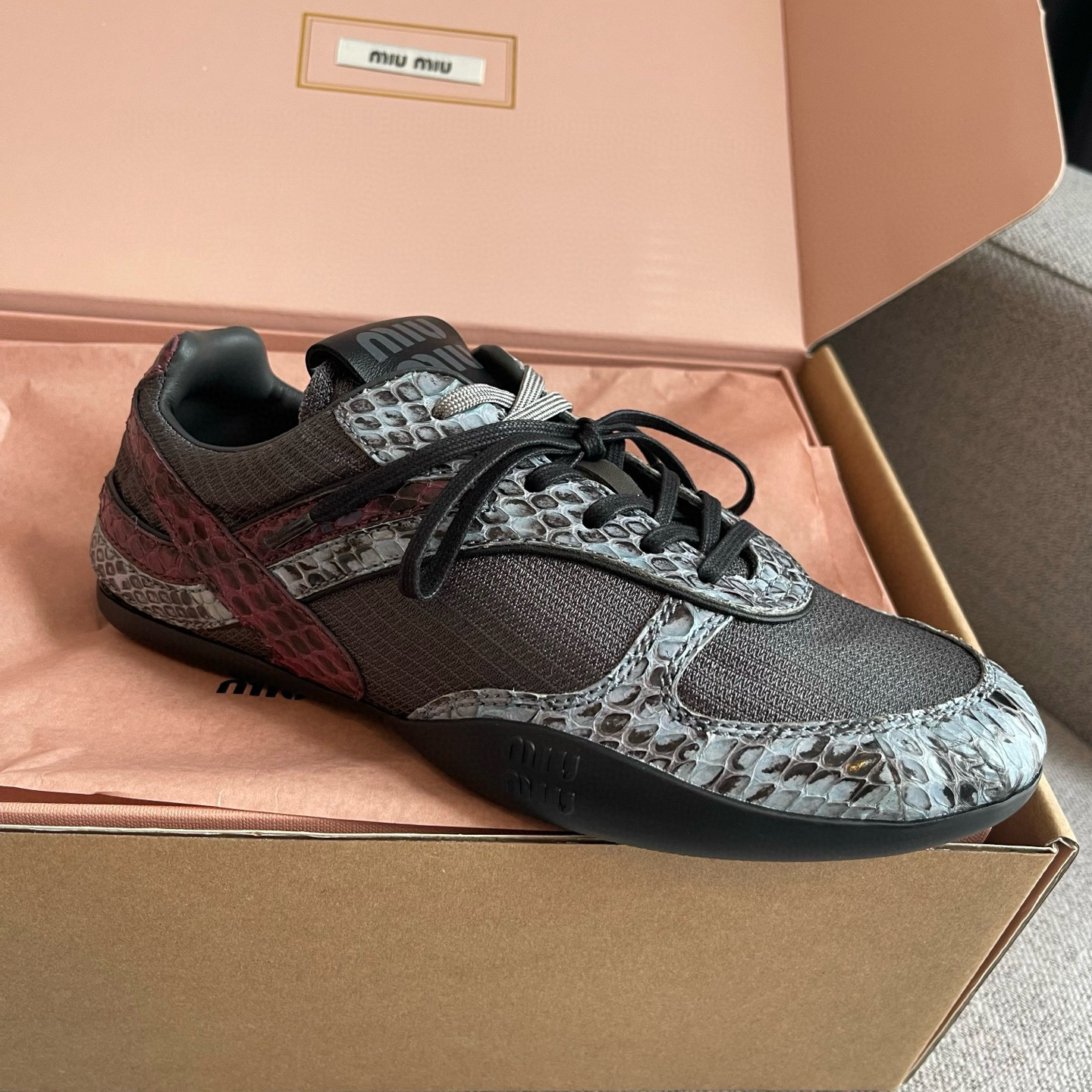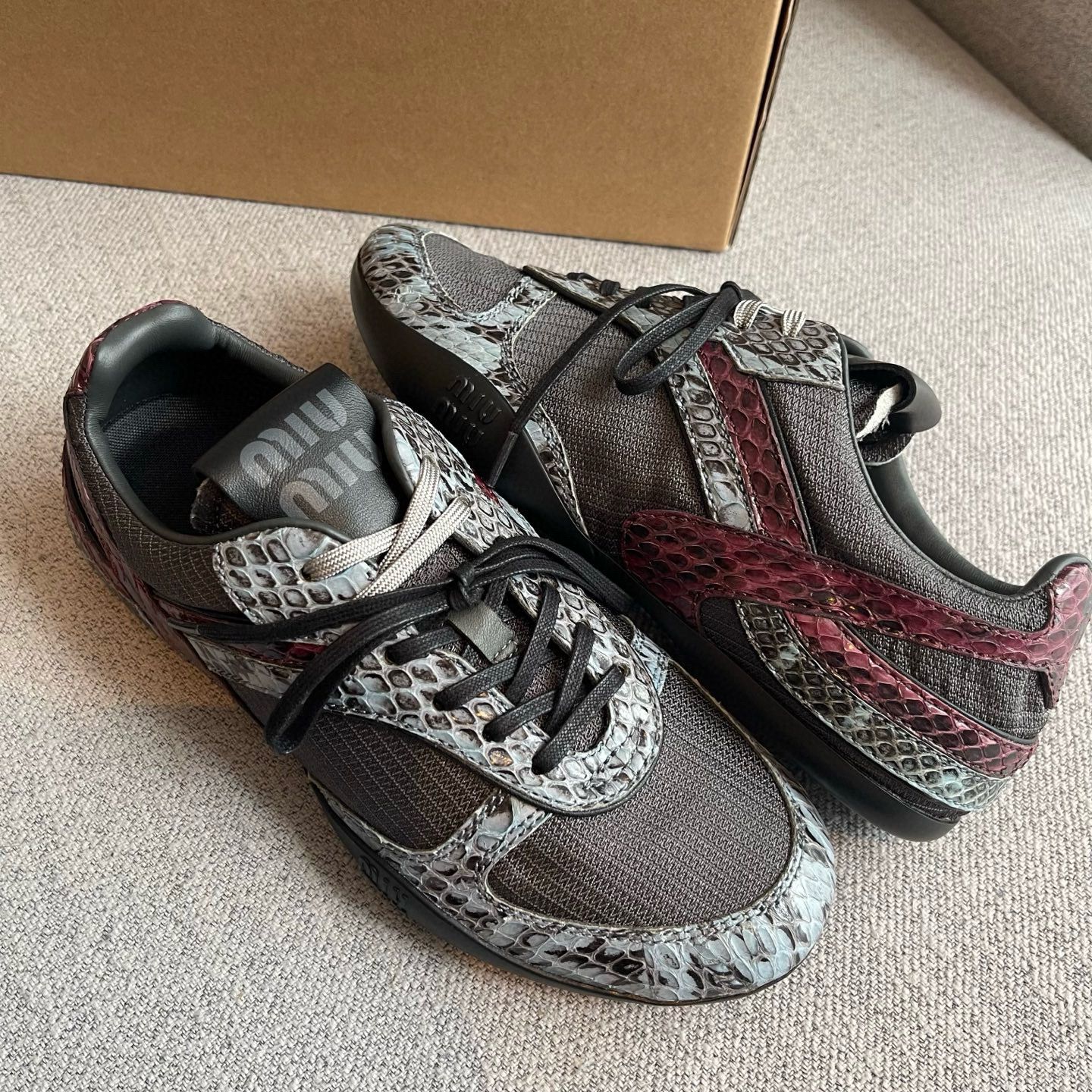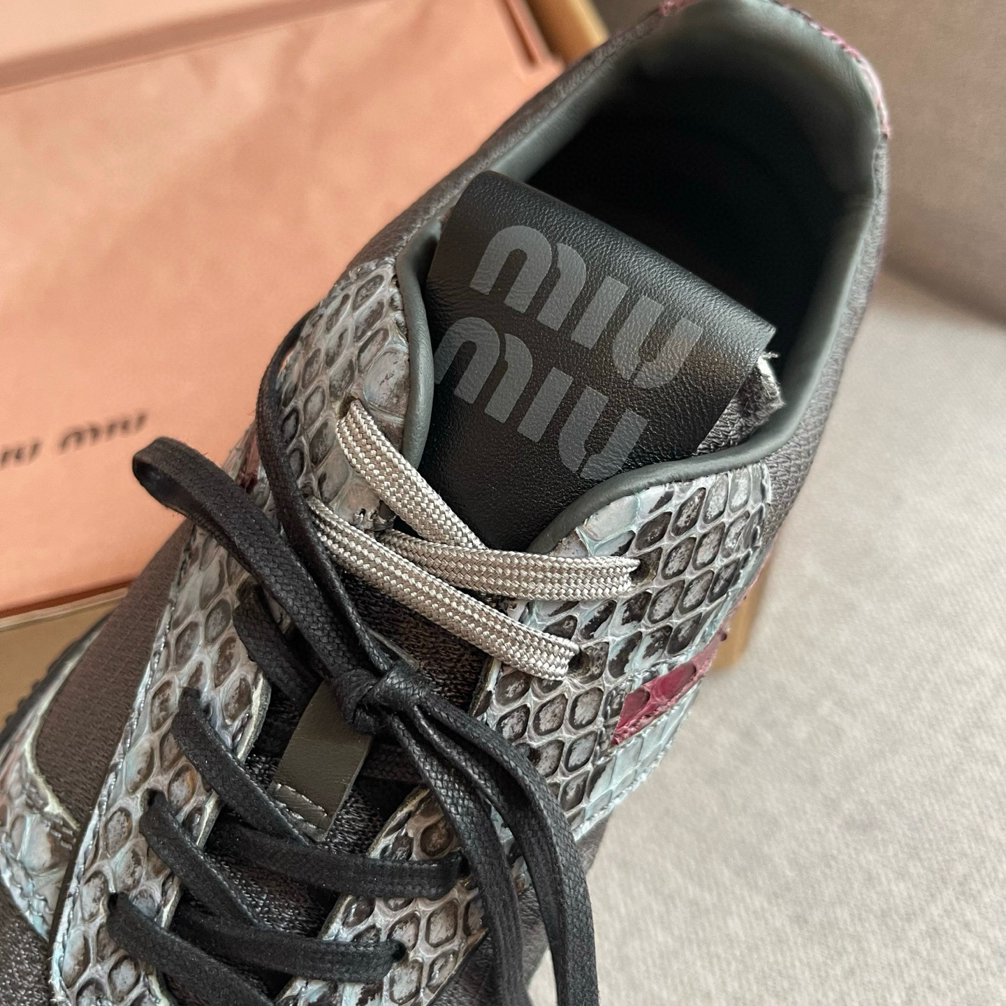 NIGO MiuMiu Women's Spring/Fall Fashion Casual Round Toe Lace Up Flat Low Top Fabric and Leather Casual Sneakers Shoes #nigo79336