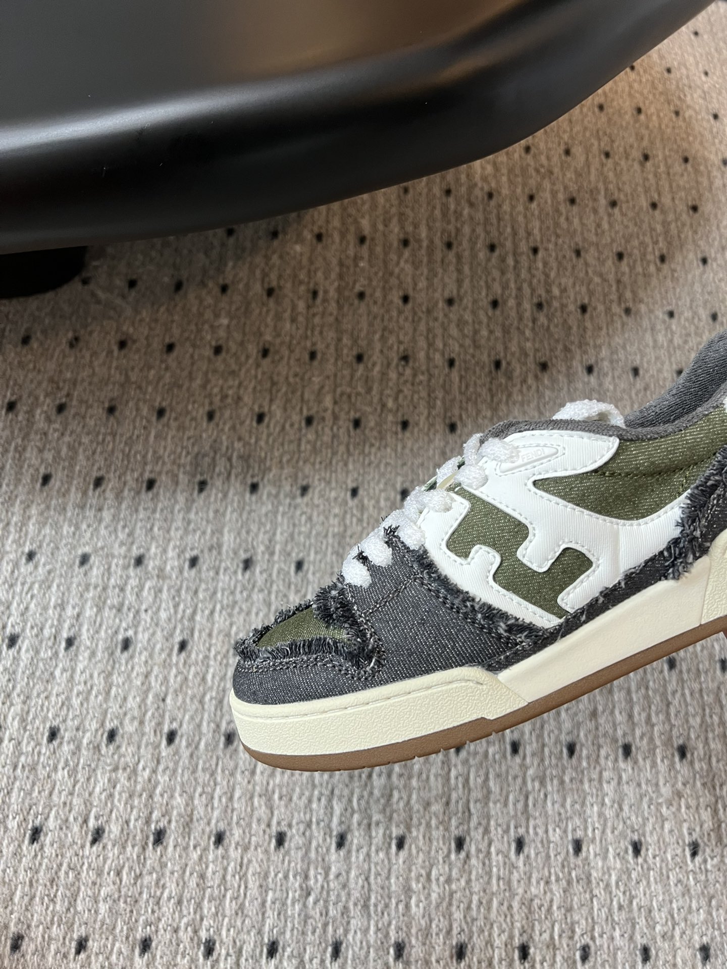 NIGO Women's Clash Patchwork Calf Leather Low Top Denim Lace Up Board Shoes #nigo99491