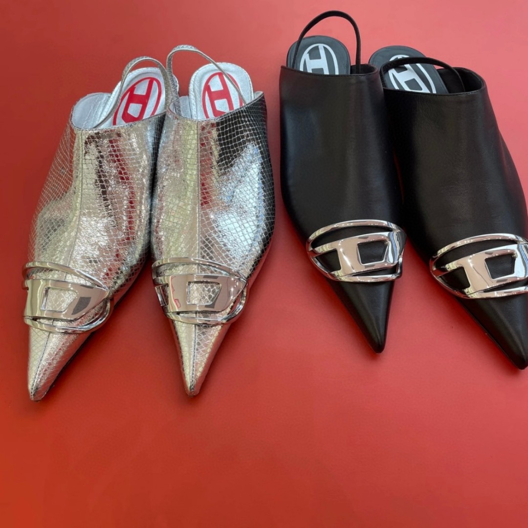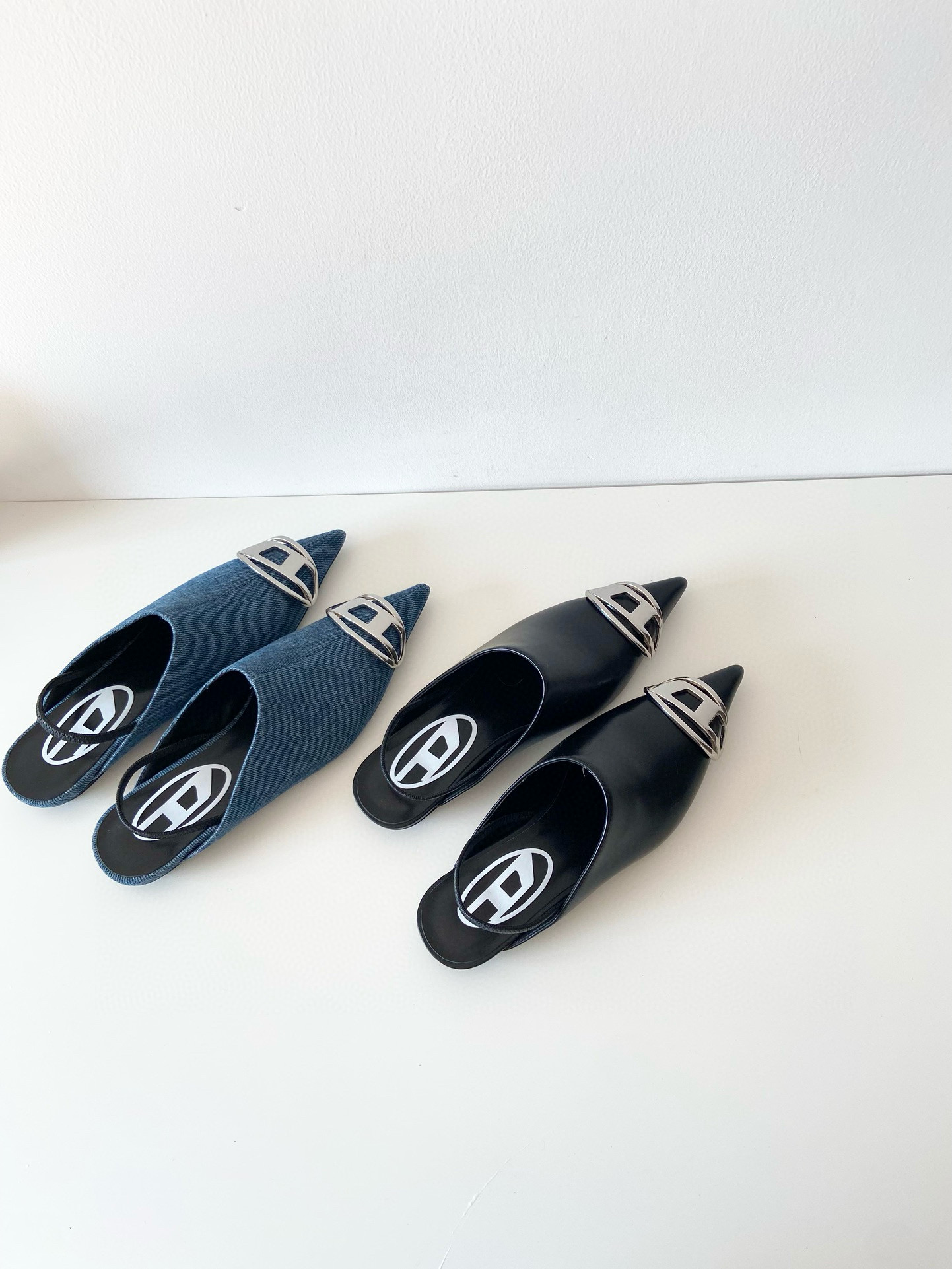 NIGO Dlesel Women's Summer Metal Logo Leather Denim Pointed Toe Flat Shoes #nigo98395