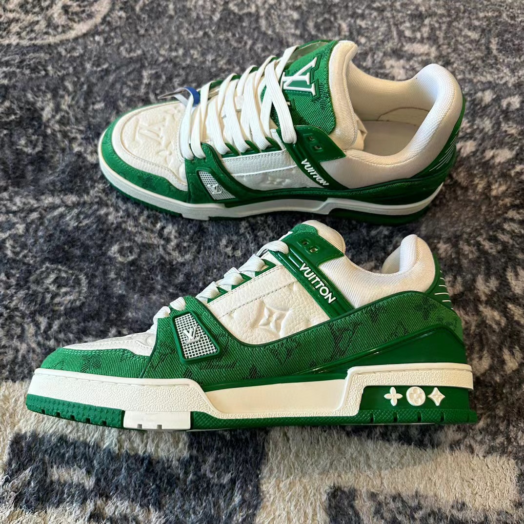 NIGO Louis Vuitton Men's Green White Dark Logo Low Top Casual Lace Up Board Shoes Sneakers #nigo98451