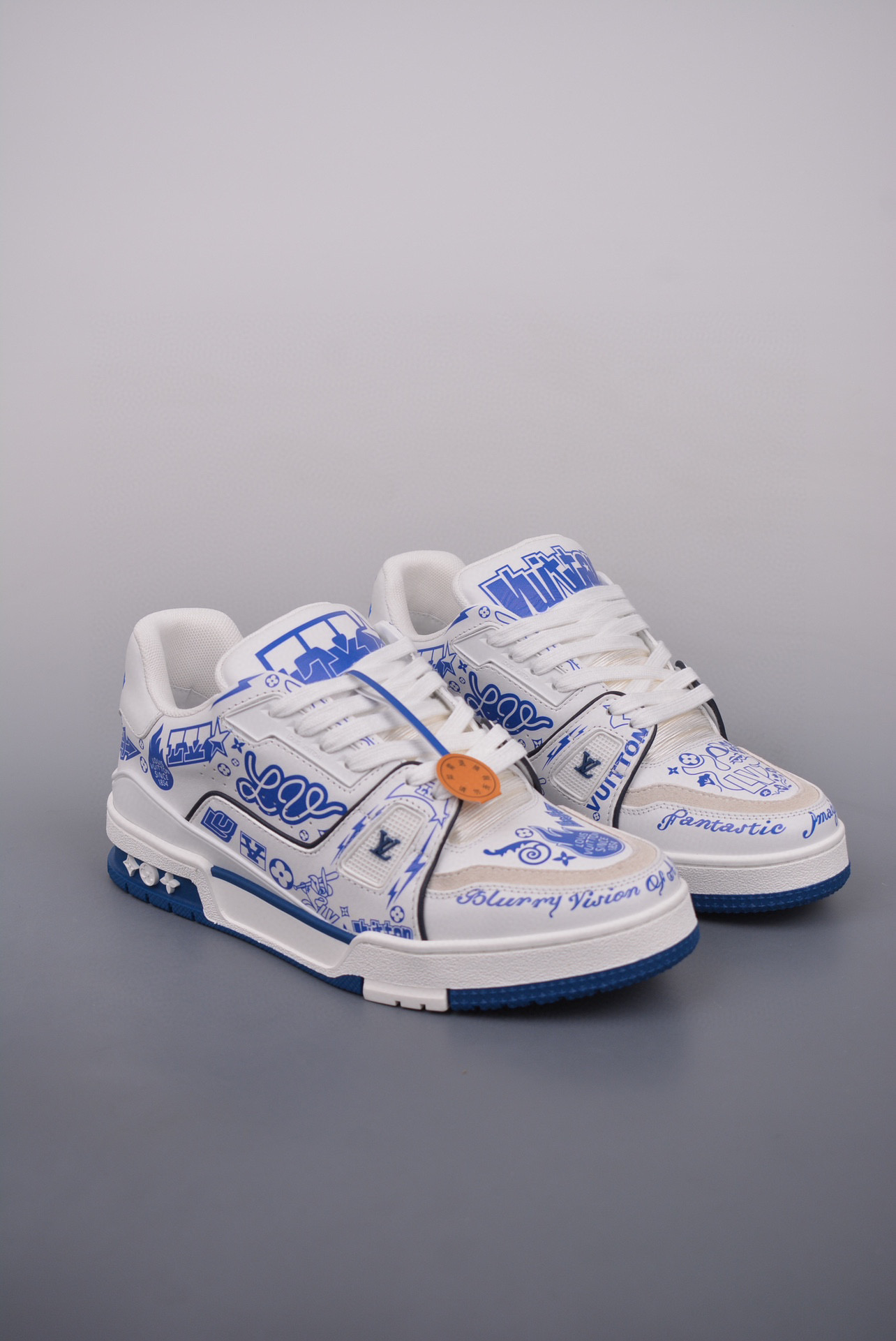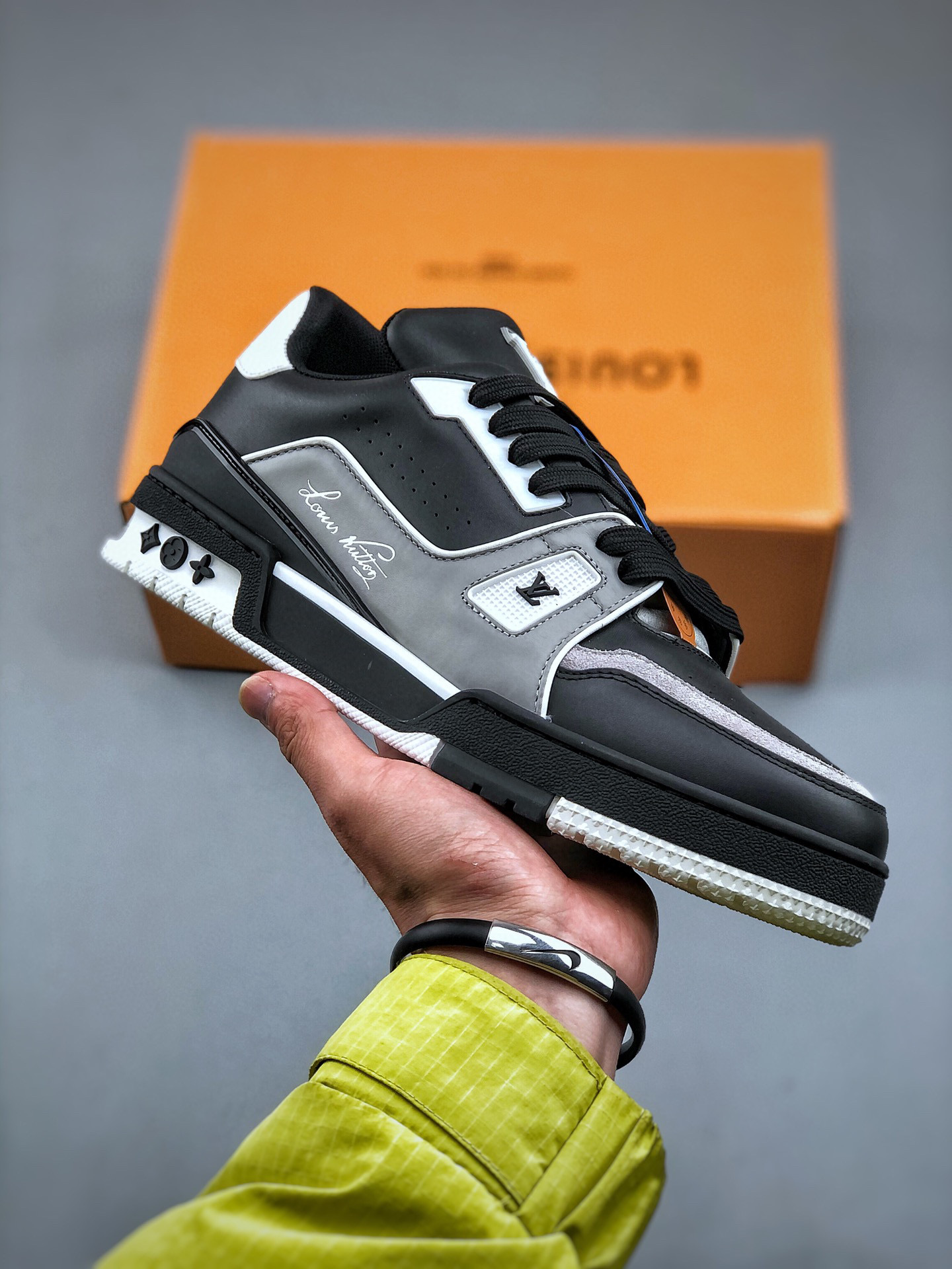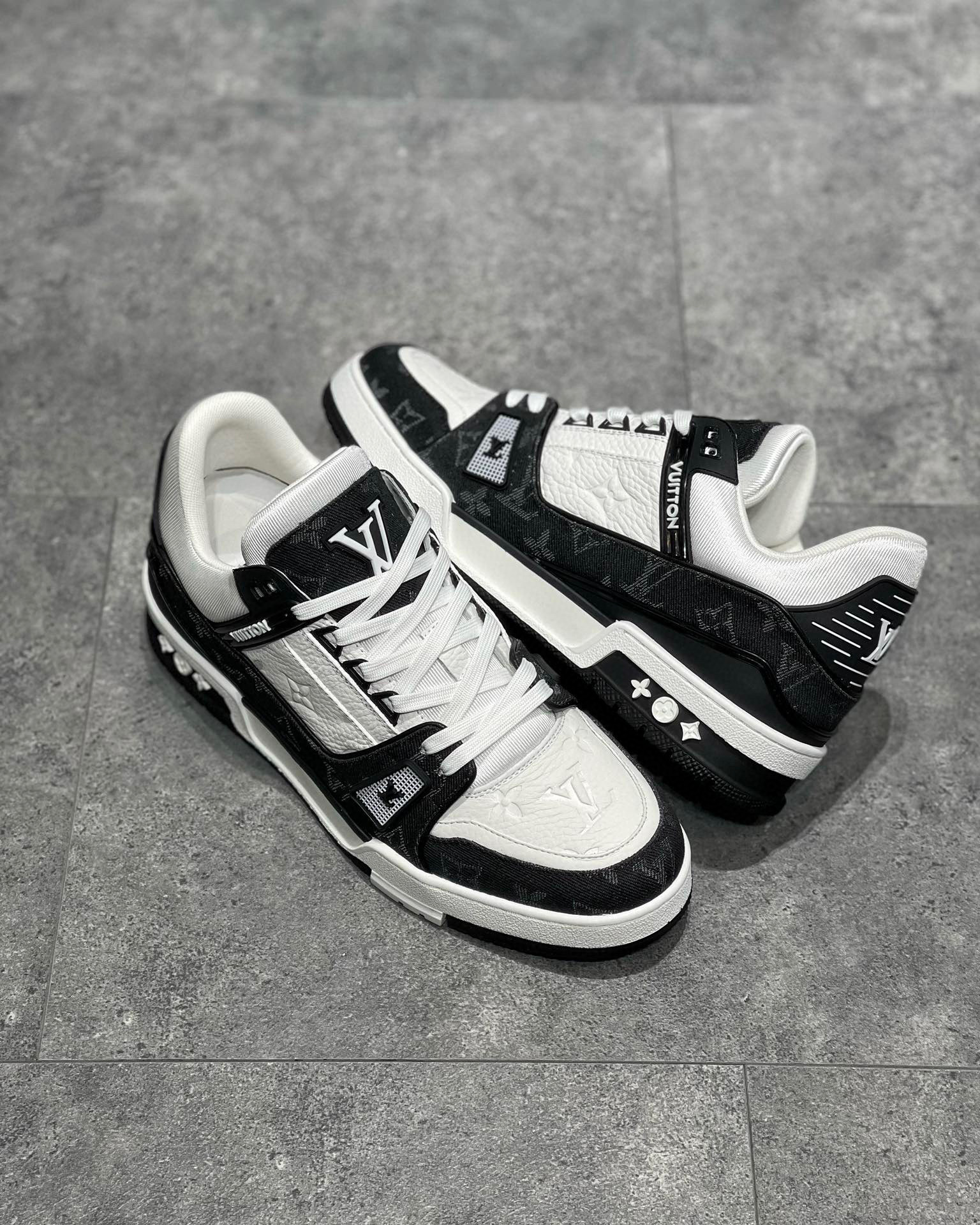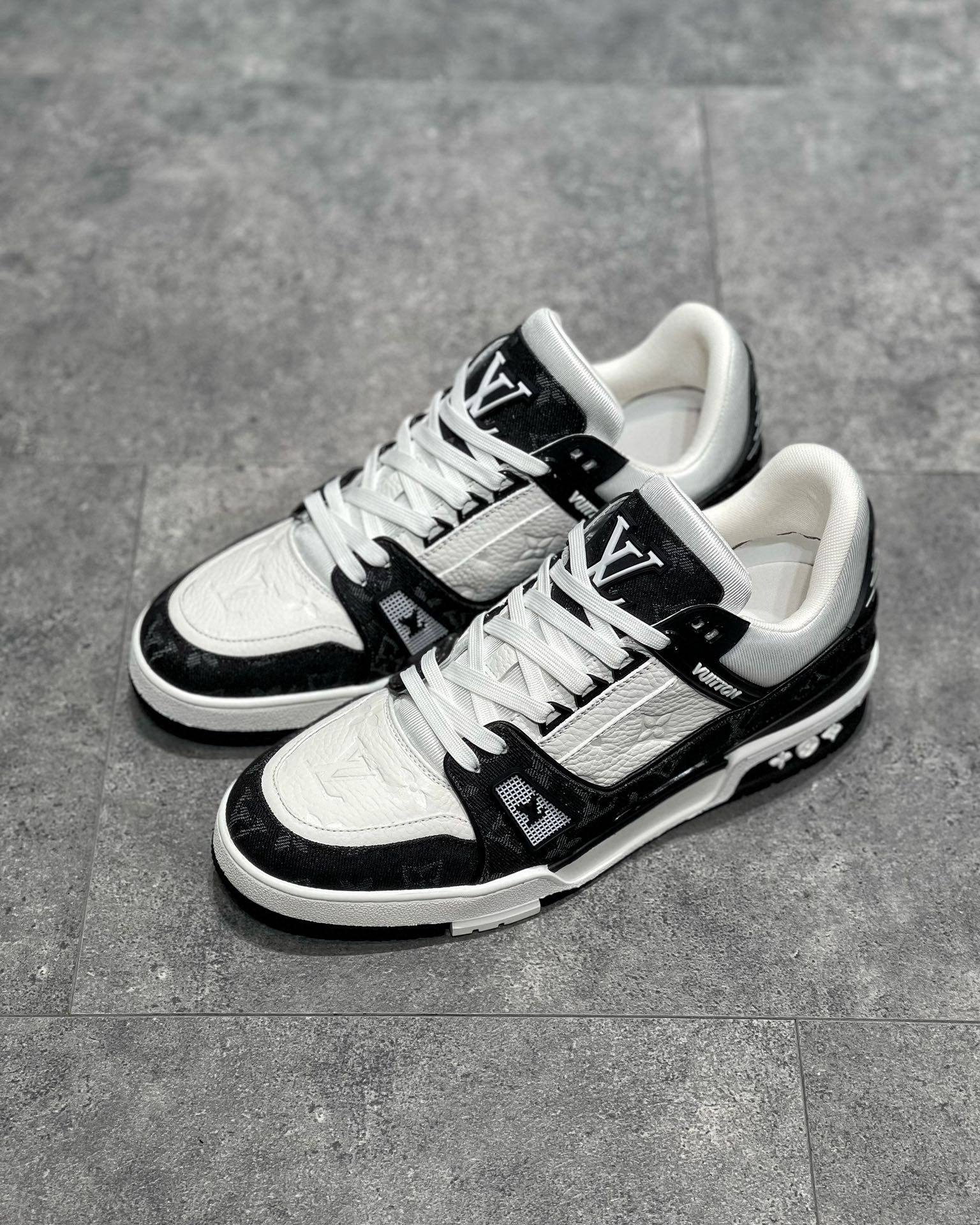 NIGO Louis Vuitton Men's LV Trainer Sneaker Monogram Black White Low Top Soft Calfskin Denim Sneakers Shoes #nigo97546