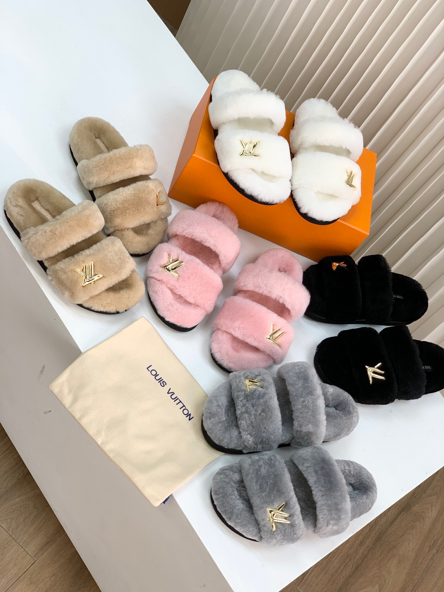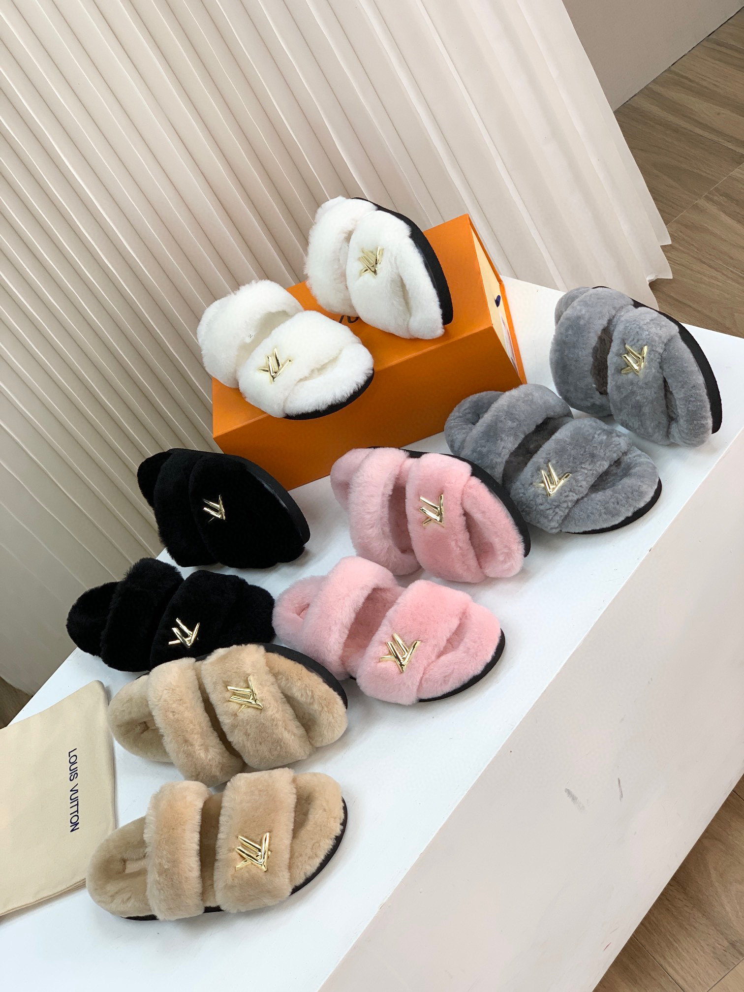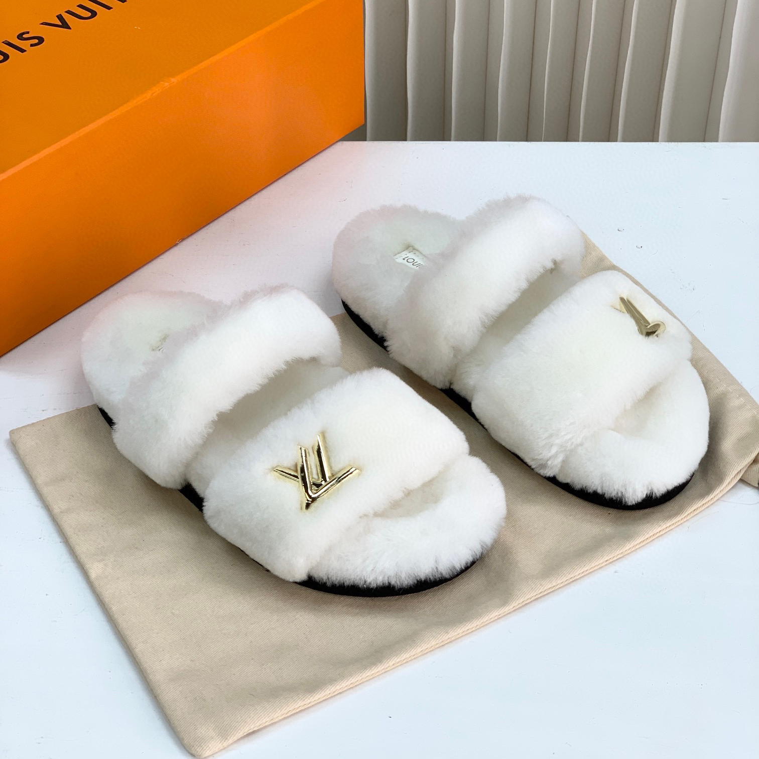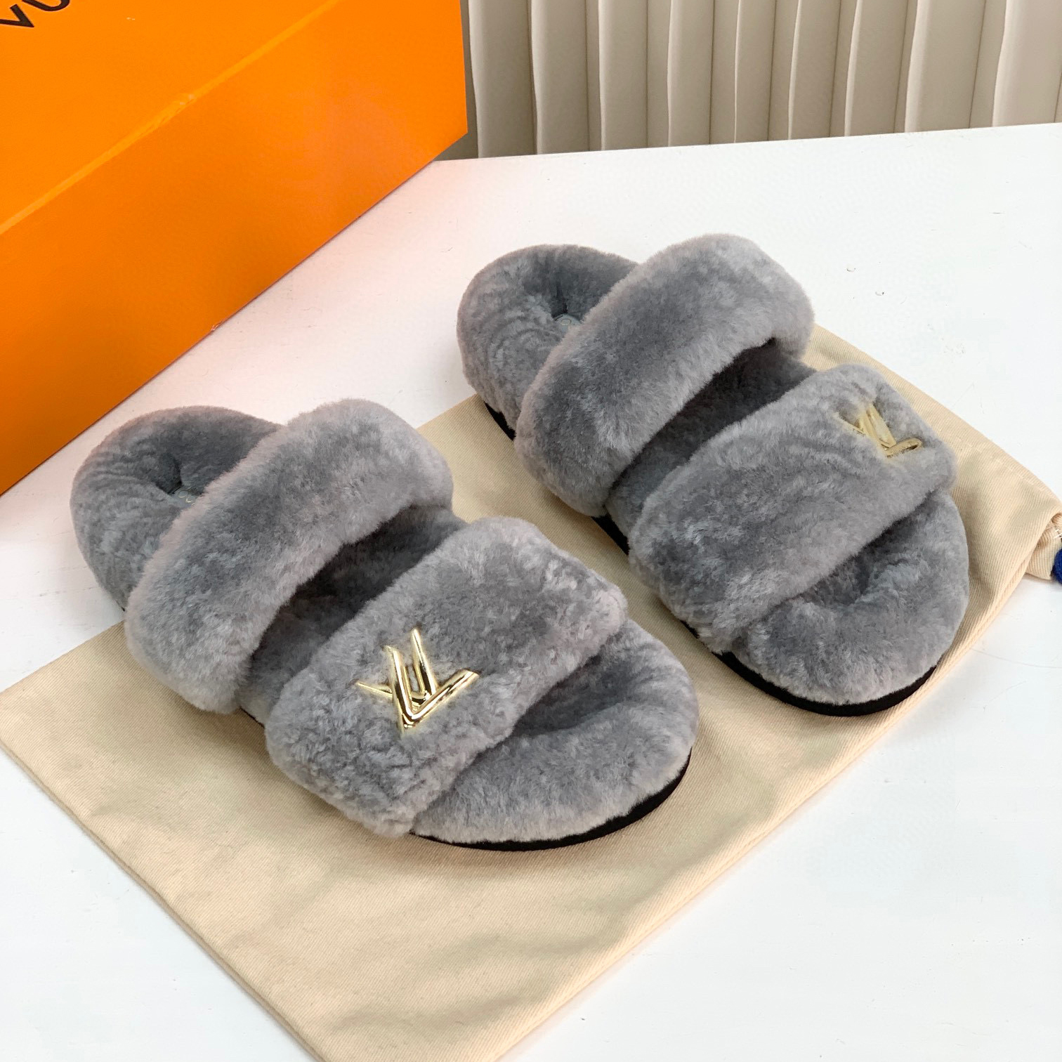 NIGO Louis Vuitton LV Sunset Comfort Flat Mule Women's Lamb Fur Integrated Fur Slippers Shoes #nigo96939