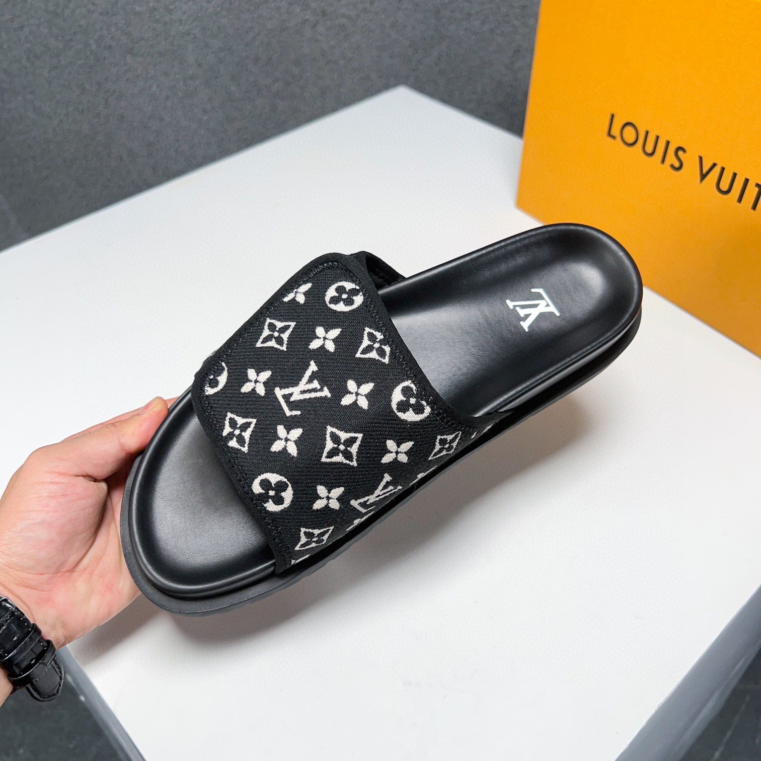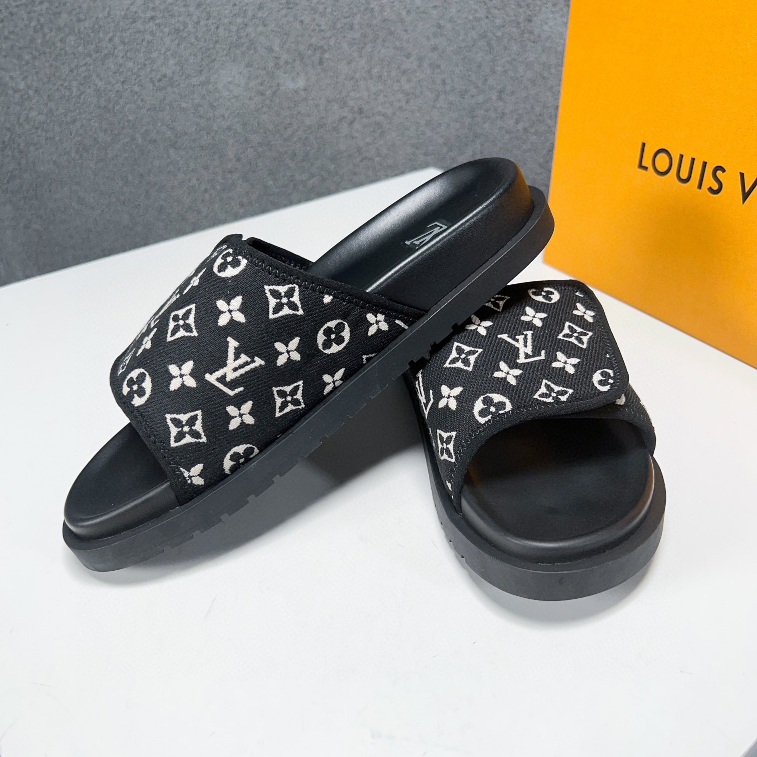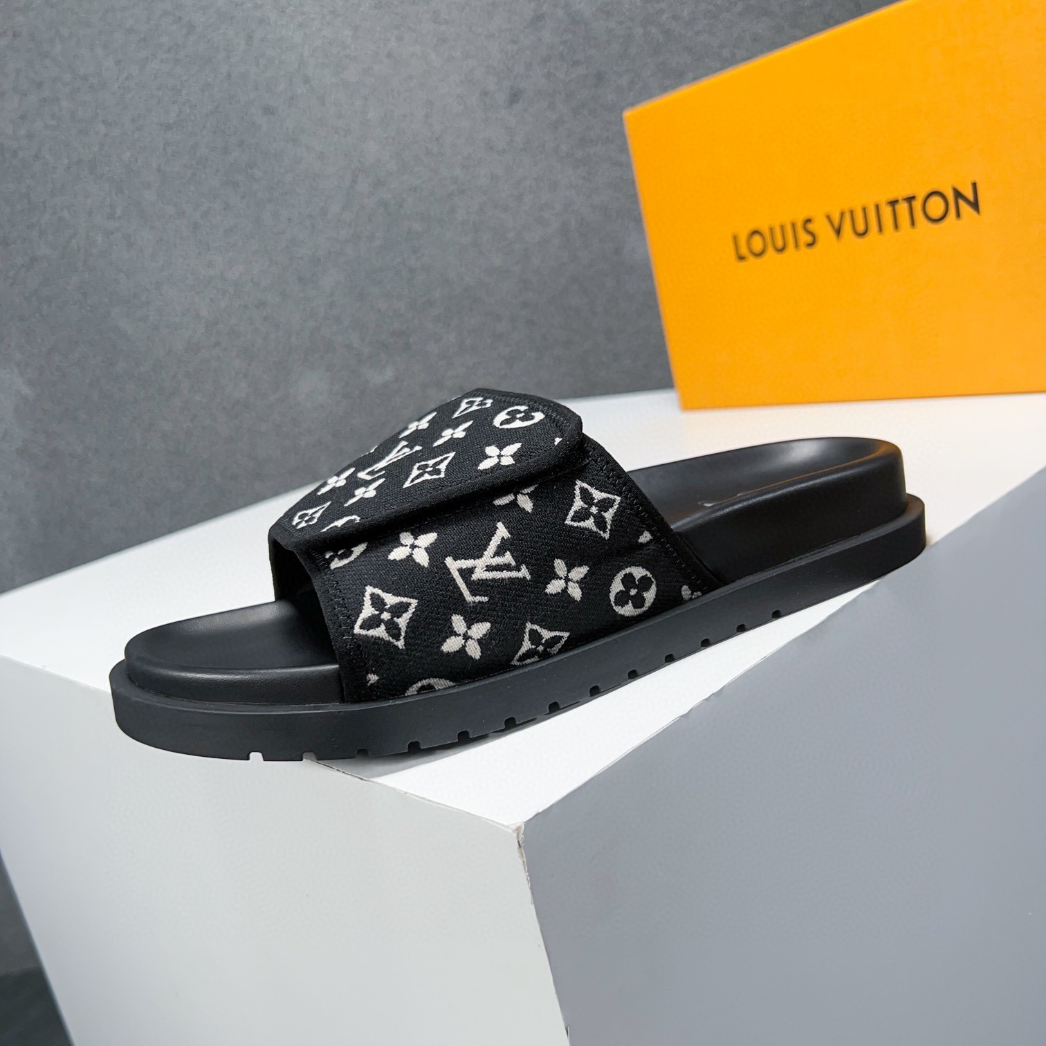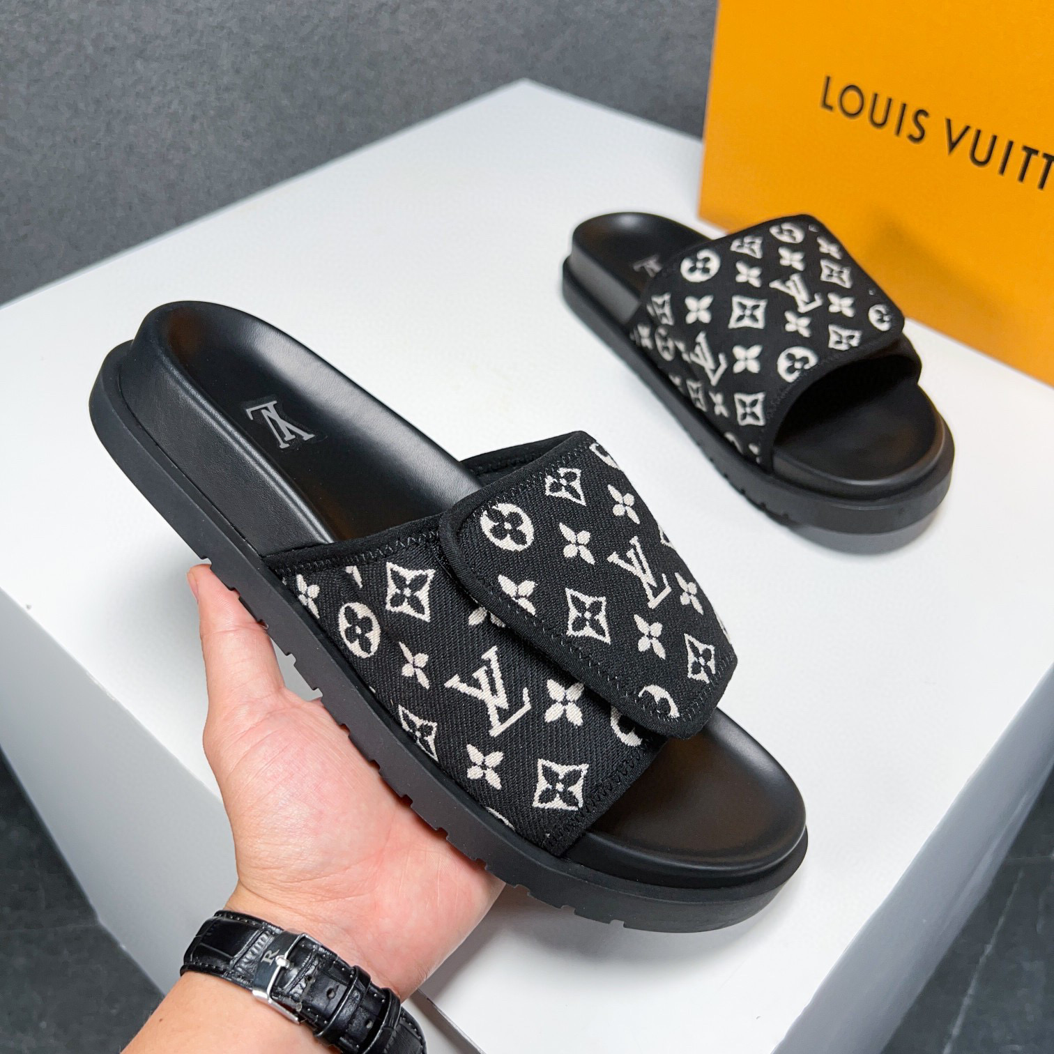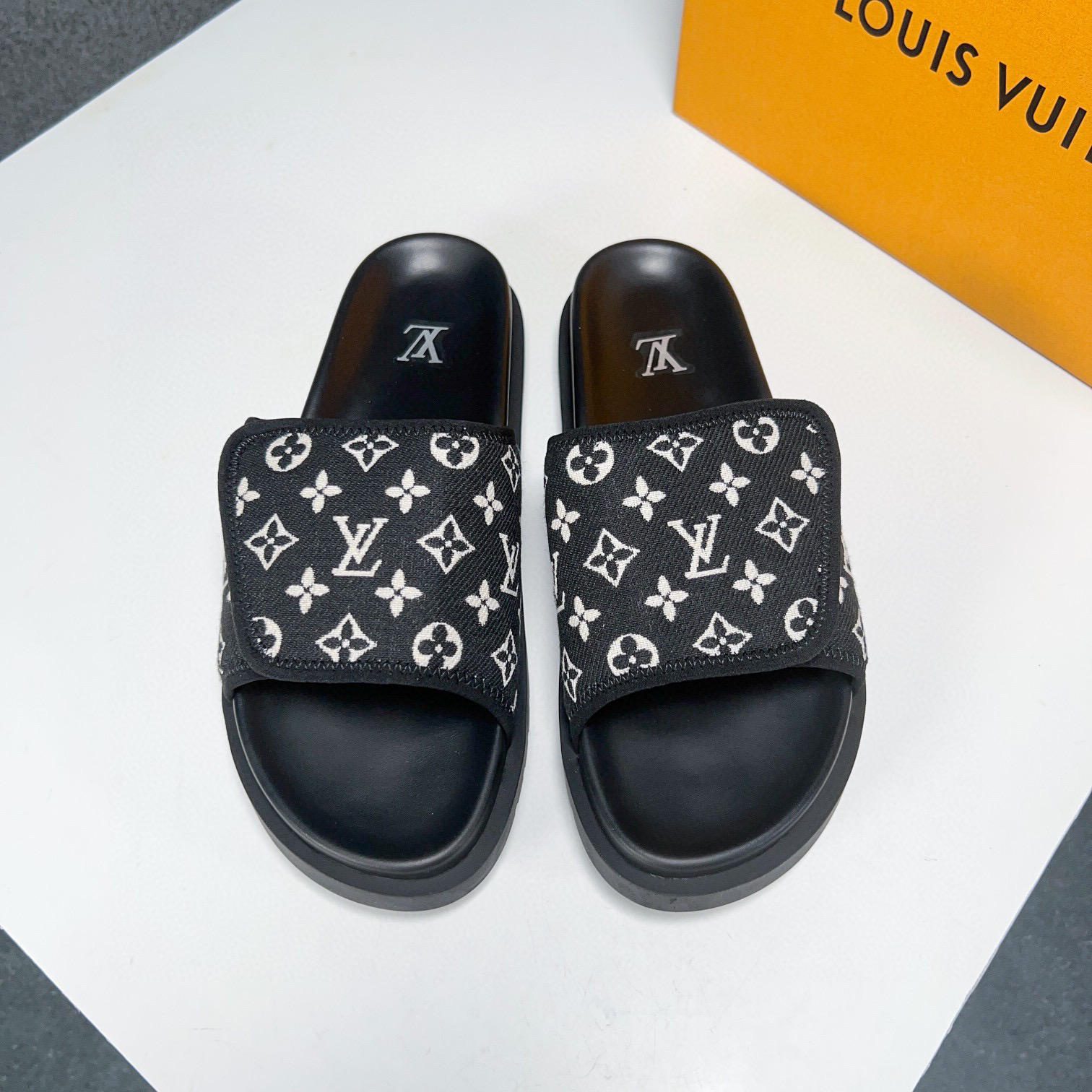 Louis Vuitton NIGO Black Adhesive Flat Bottomed Slippers Shoes #nigo21117
