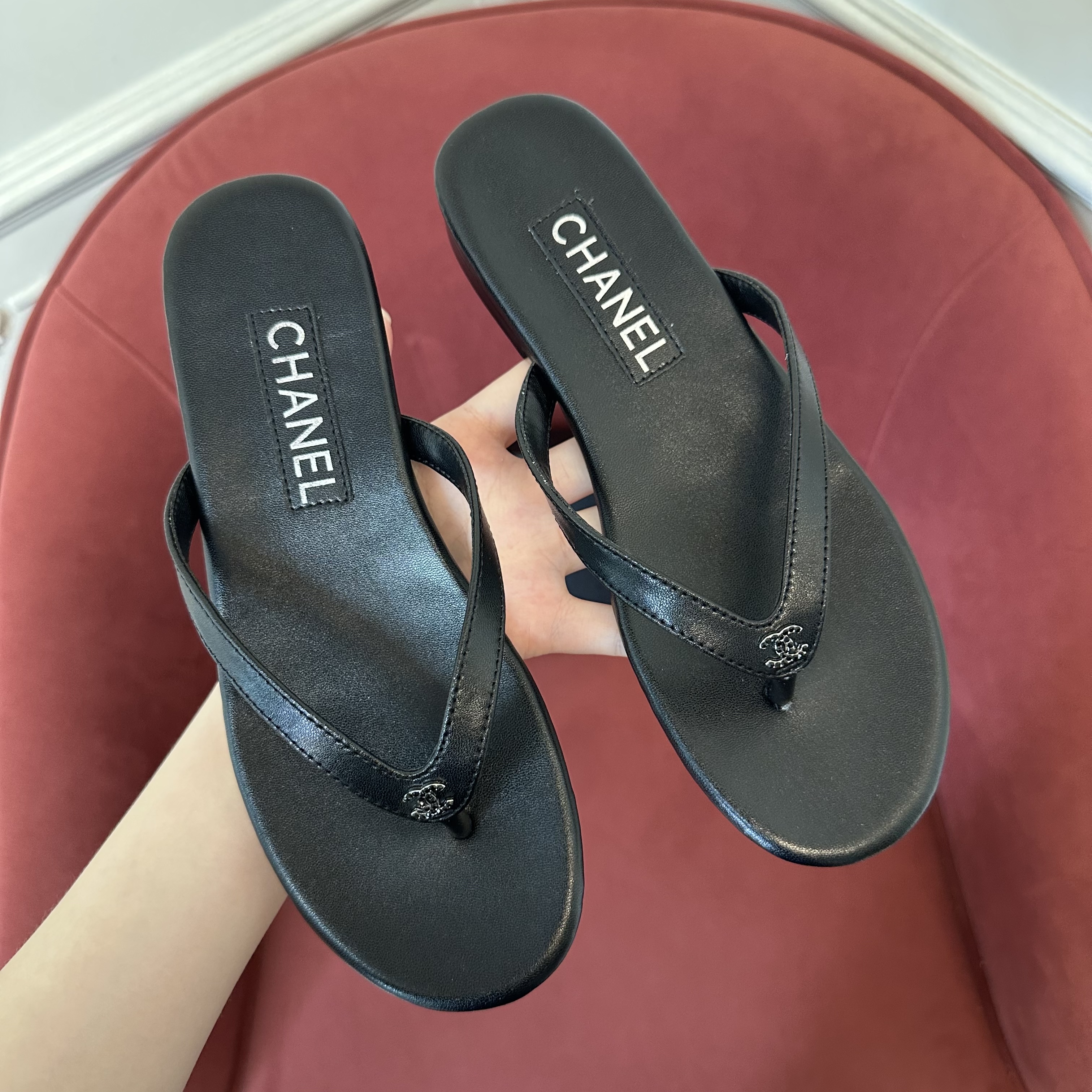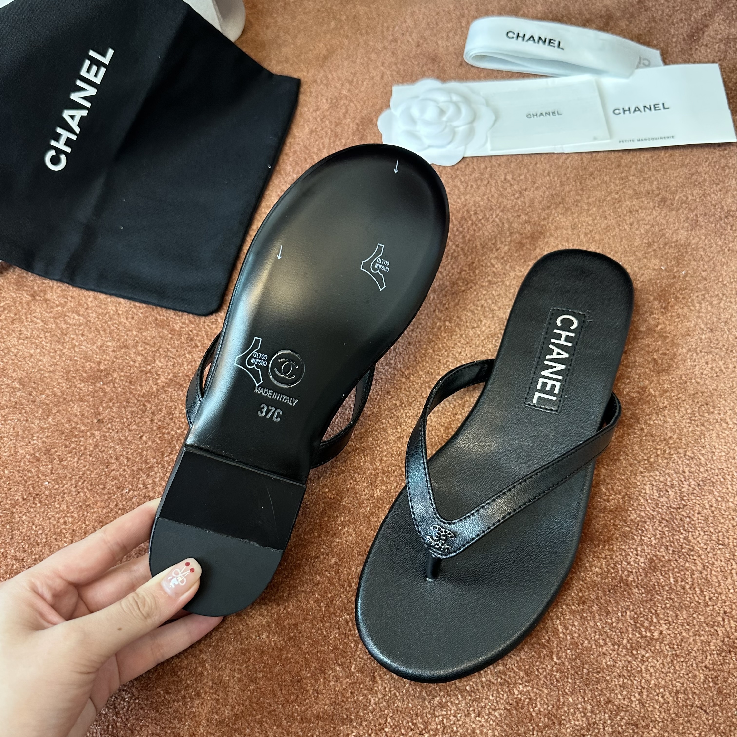NIGO Chanel Women's Summer Fashion Casual Simple Round Toe Open Toe Leather Thong Sandals Shoes #nigo78433