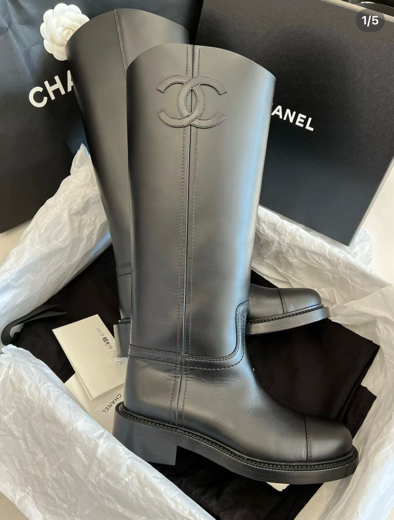 NIGO Chanel Women's Autumn/winter Classic Fashion Solid Color Leather Round Toe Long Boots High Boots Shoes #nigo78373