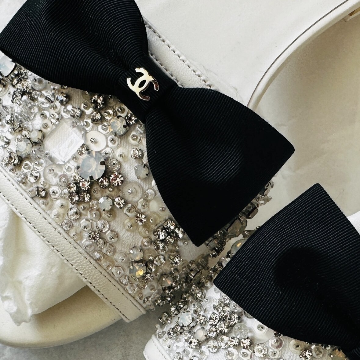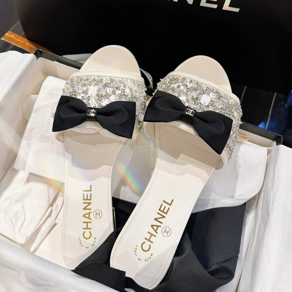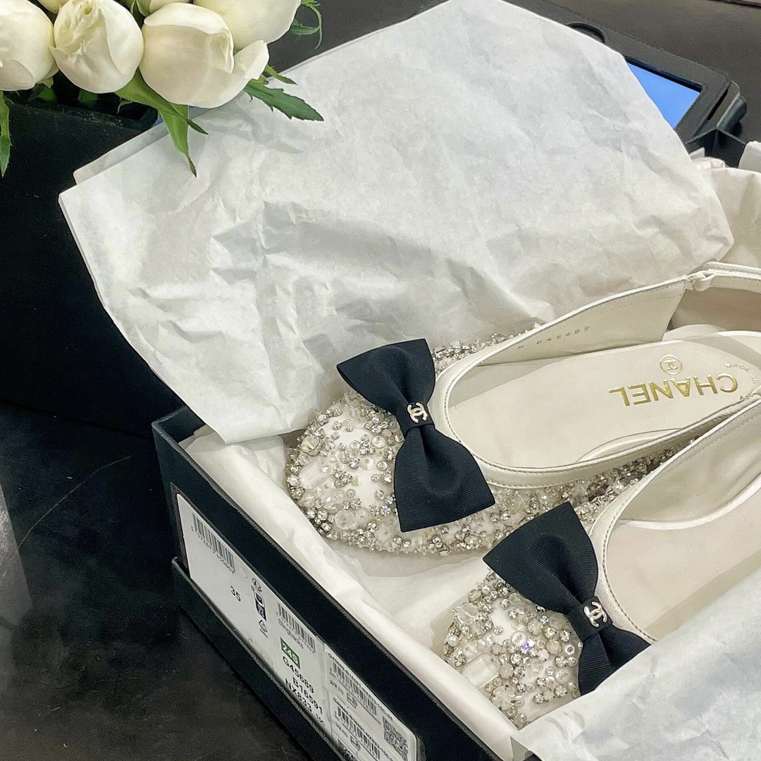 NIGO Chanel Women's Spring/Summer Fashion Casual Toe Exposed Flat Heeled Bow Logo Diamond Mary Jane Shoes #nigo78229