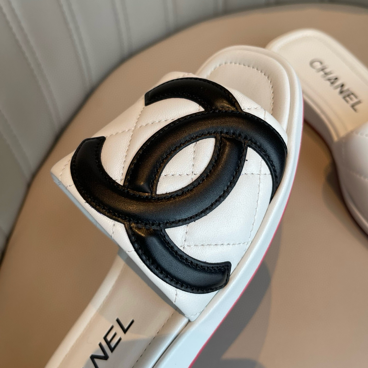 NIGO Chanel Women's Summer Double C Print Solid Color Leather Sandals Slippers Shoes #nigo77691