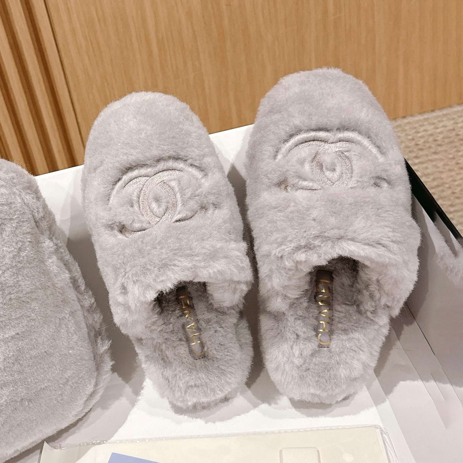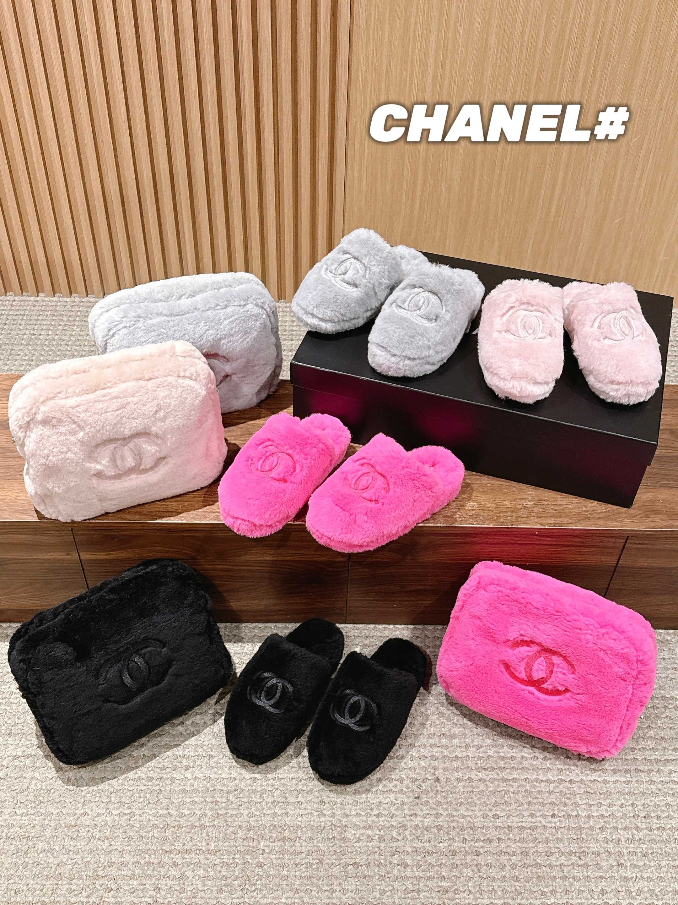 NIGO Chanel Winter Fashion Casual Round-Toe Thick-Sole Plush Home Slippers with Storage Bag Shoes #nigo79278