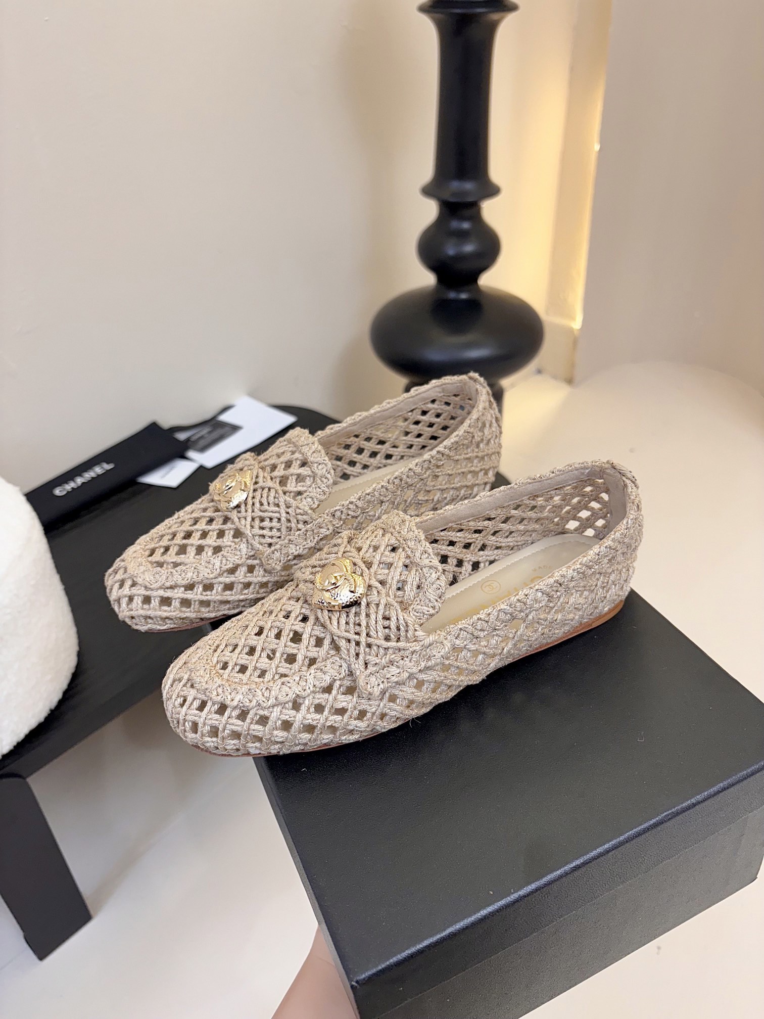 NIGO Chanel Women's Spring and Summer Solid Color Hemp Rope Weaving Casual Flat Lefebvre Shoes #nigo76528