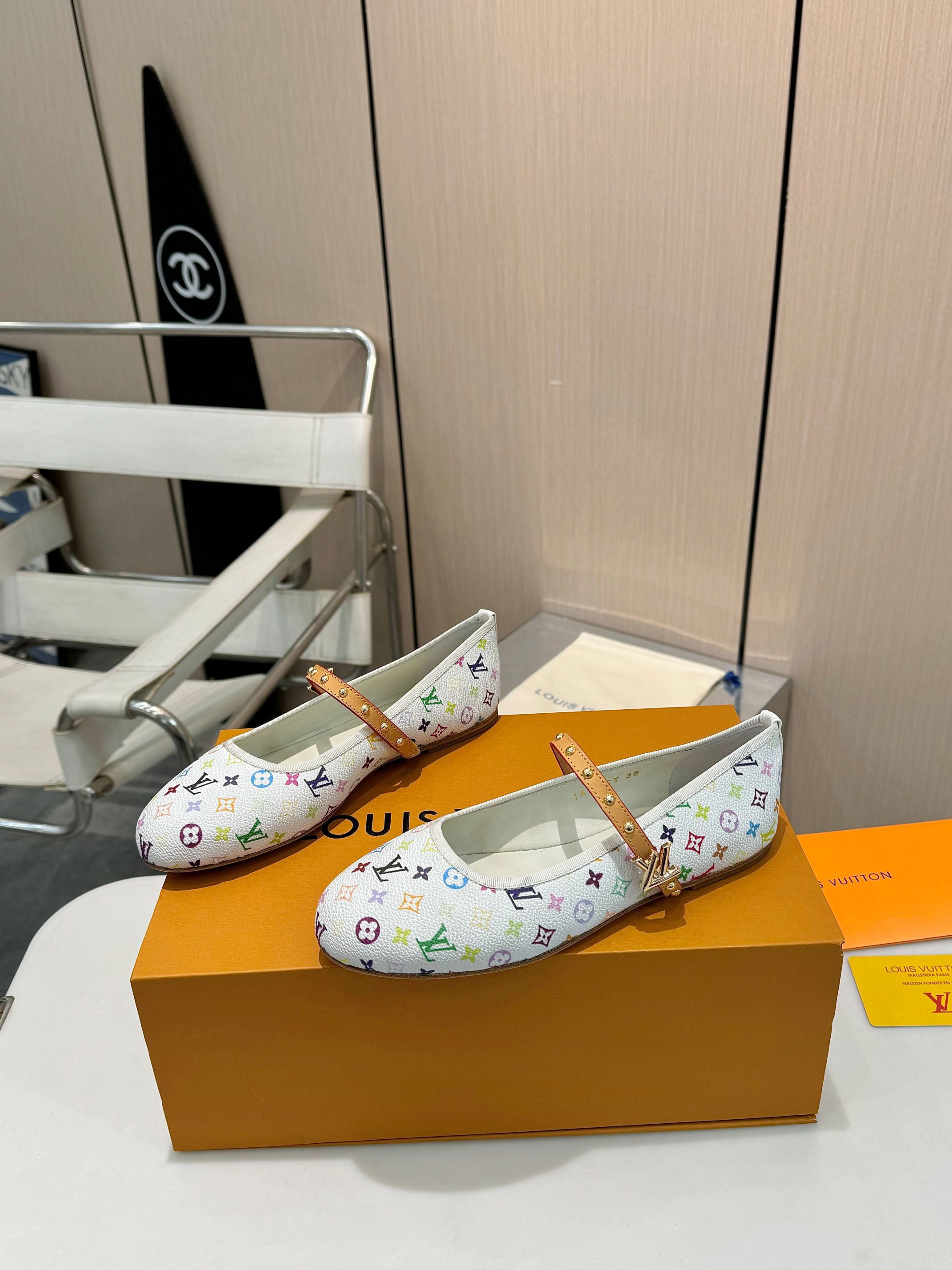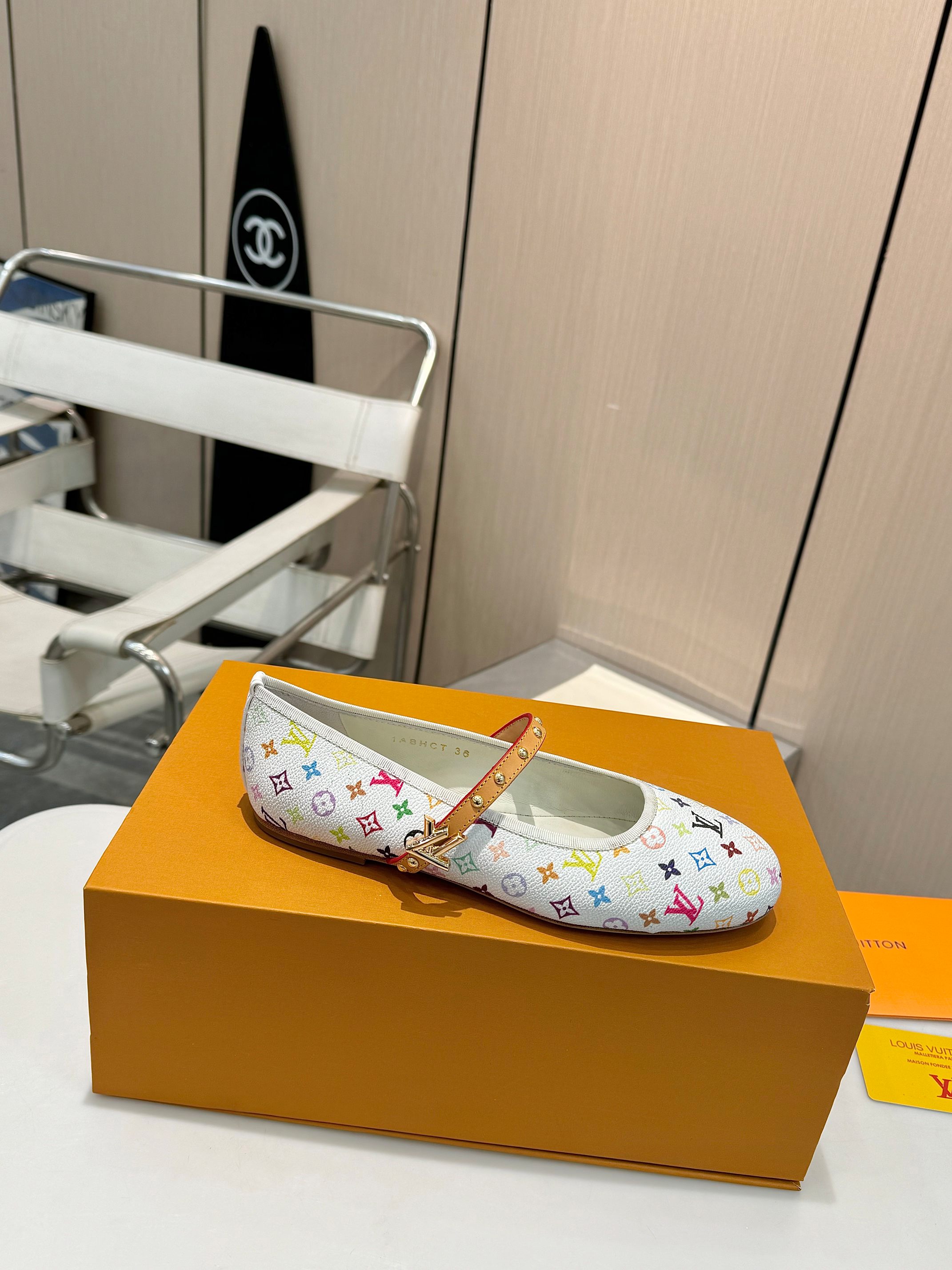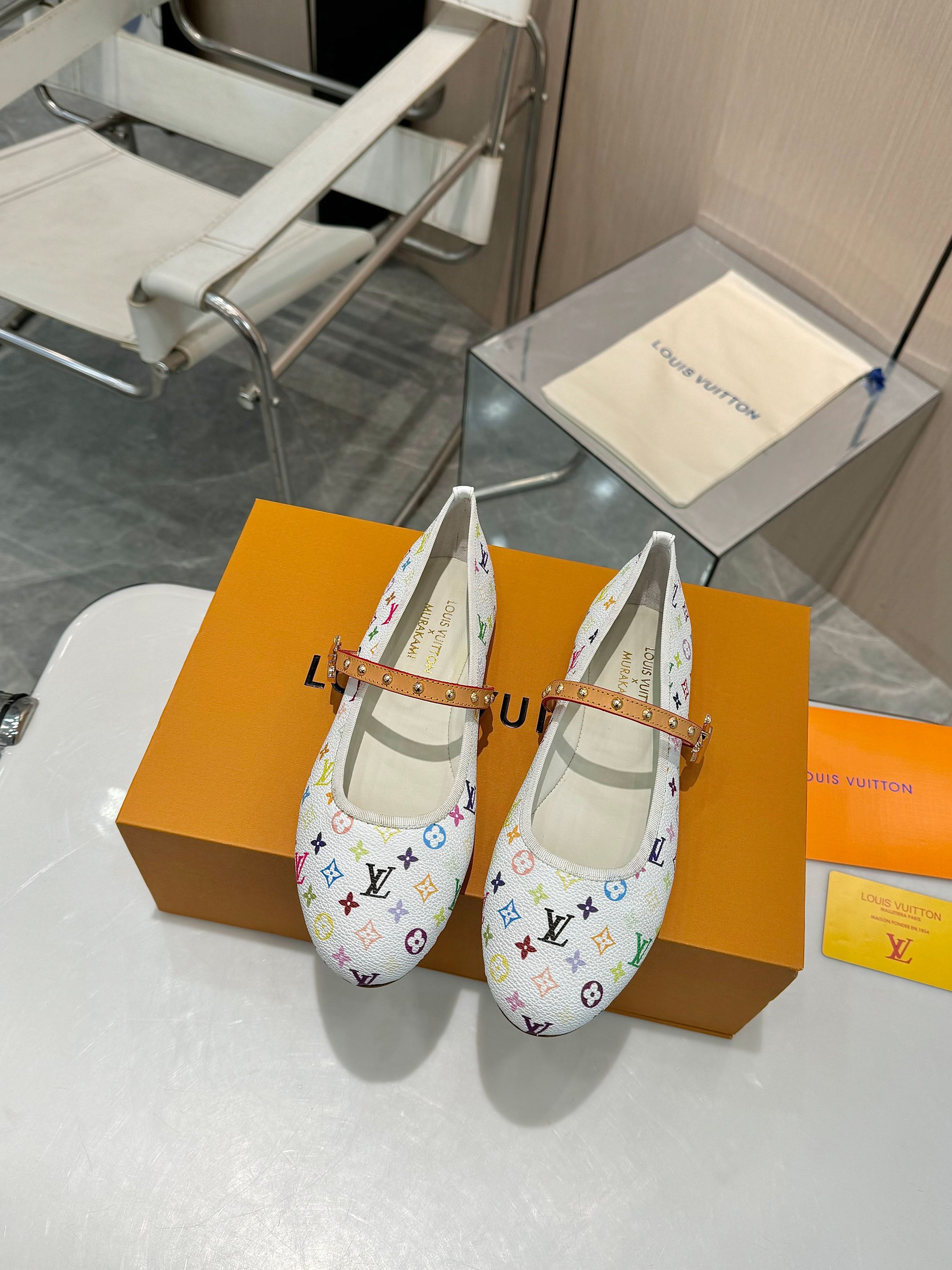 NIGO Louis Vuitton Women's Colorful Letter Print Round Toe Flat Leather Flat Heeled Ballet Shoes #nigo75514