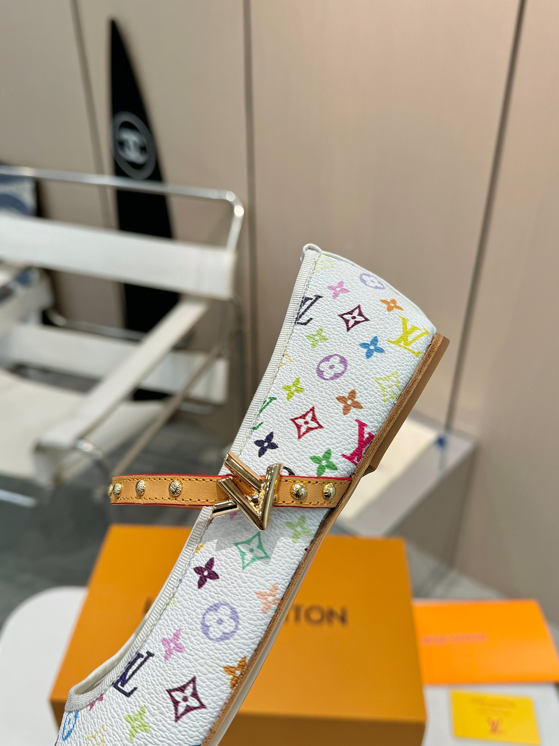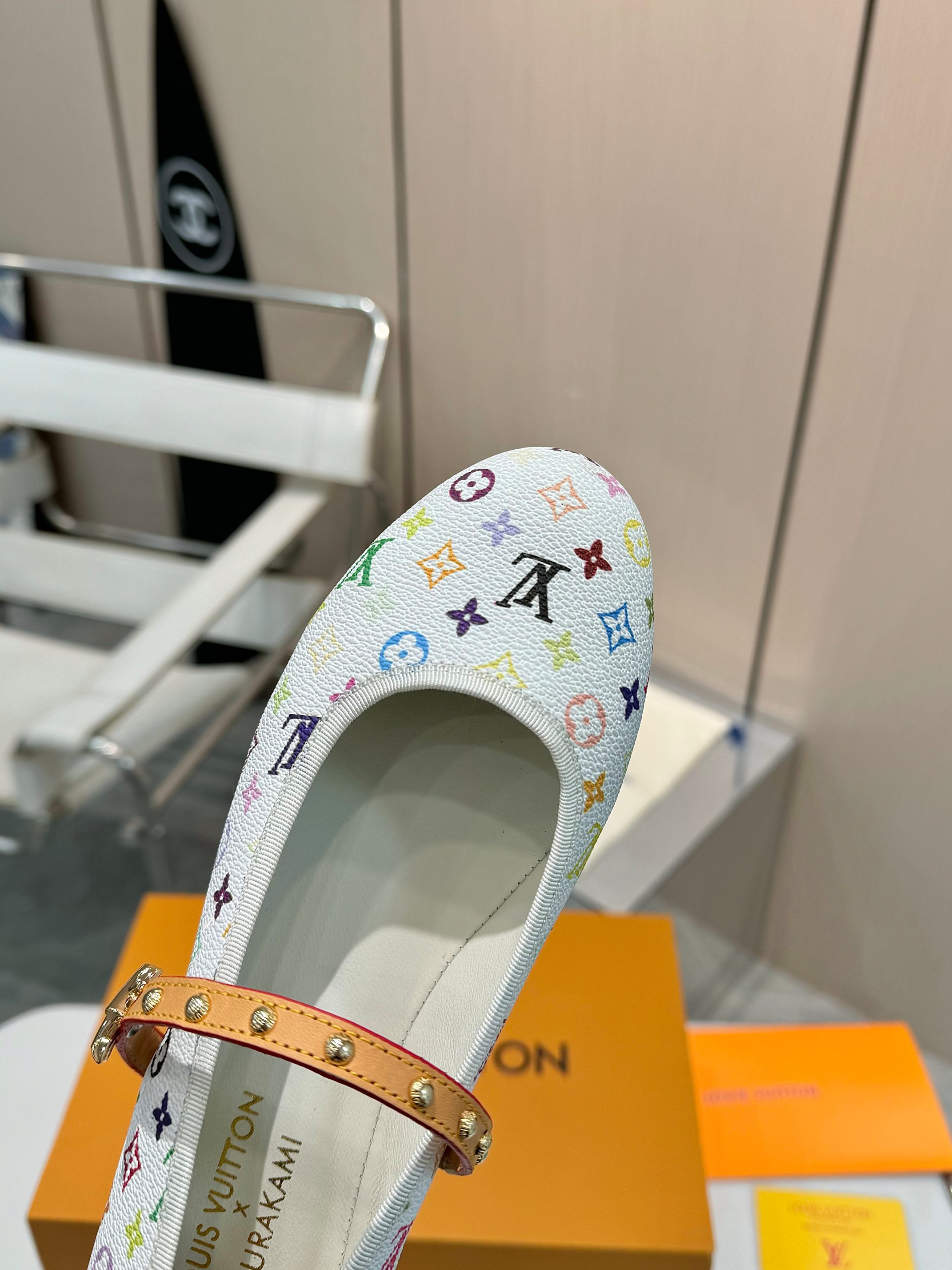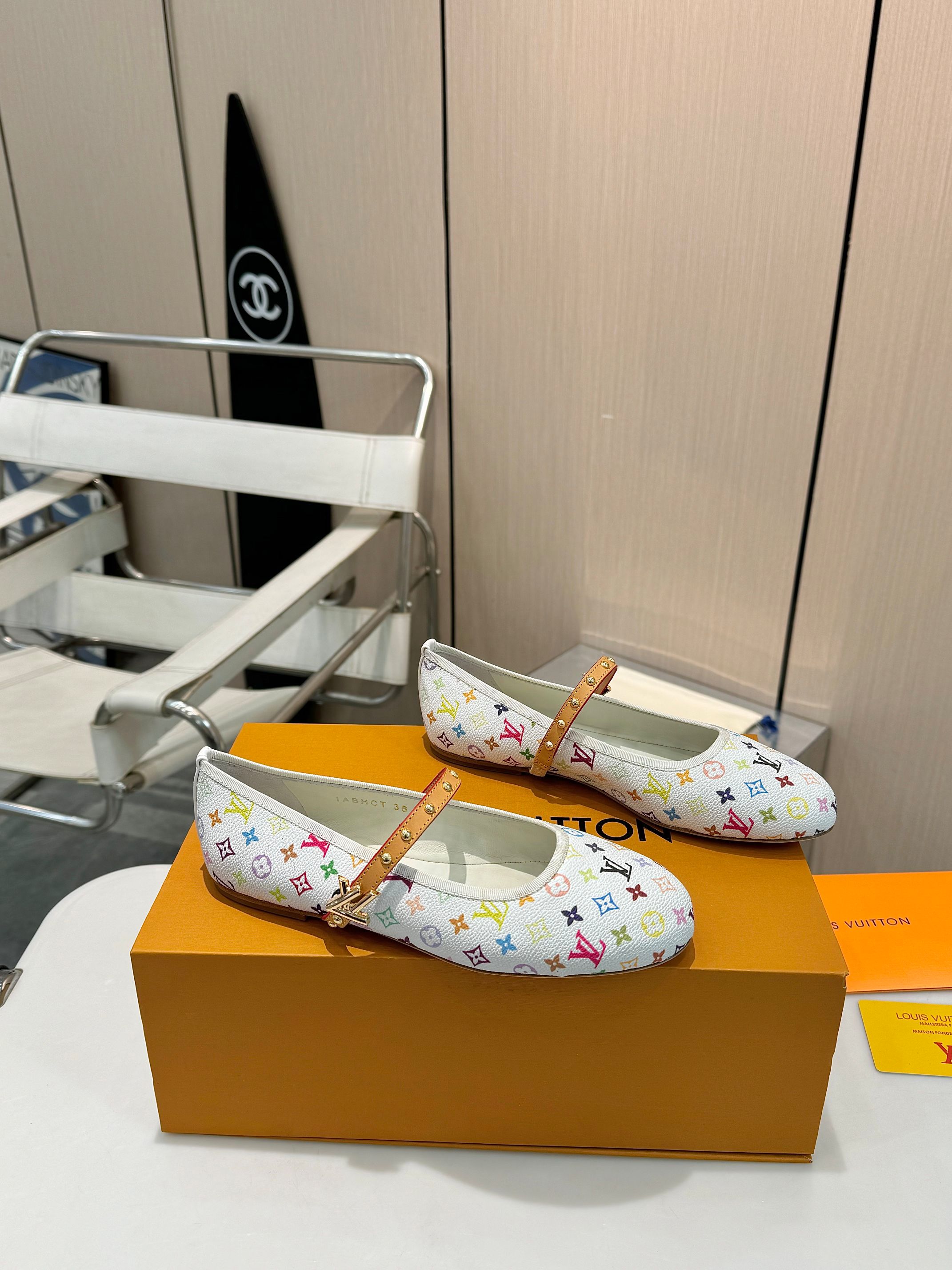 NIGO Louis Vuitton Women's Colorful Letter Print Round Toe Flat Leather Flat Heeled Ballet Shoes #nigo75514