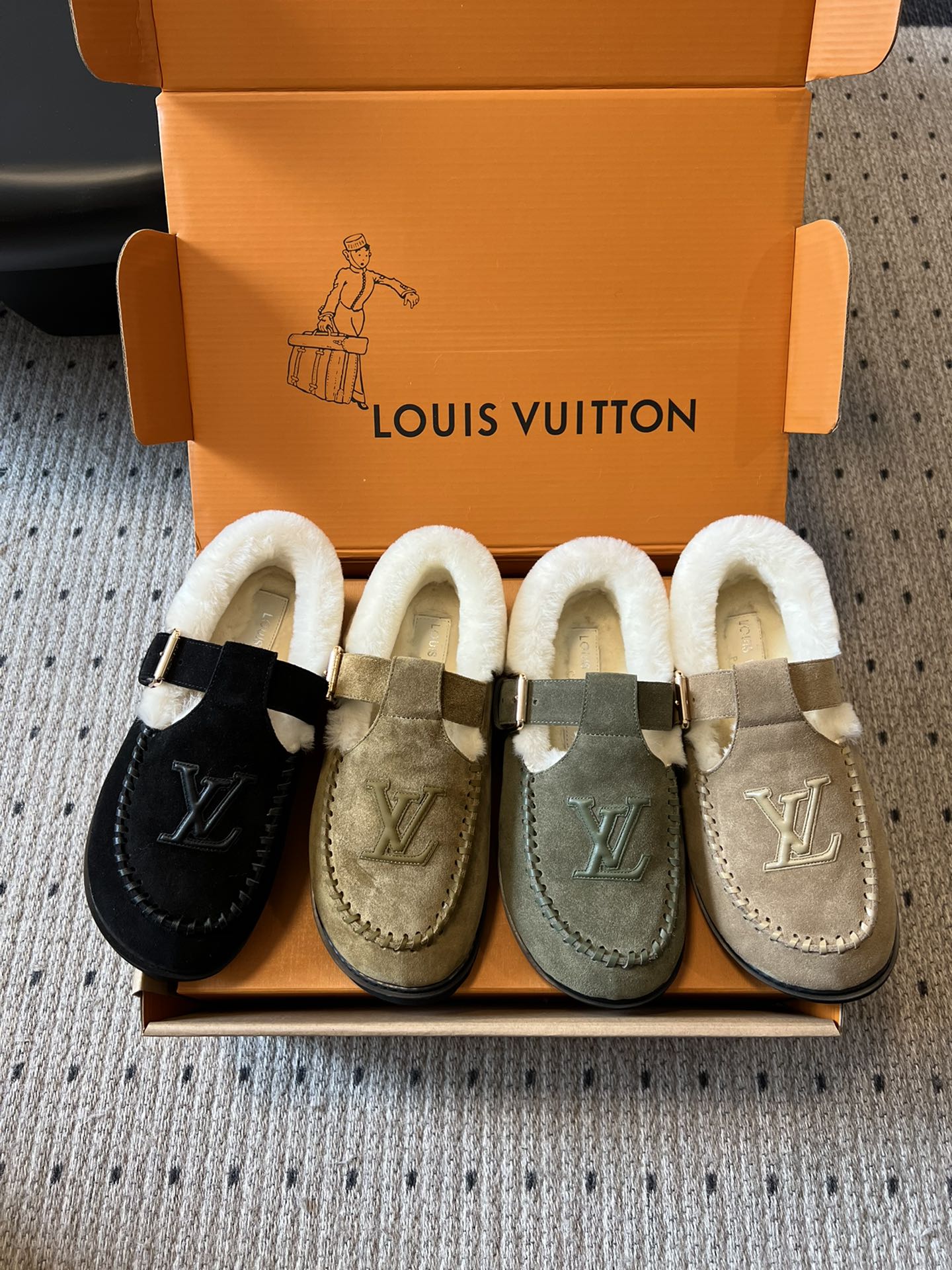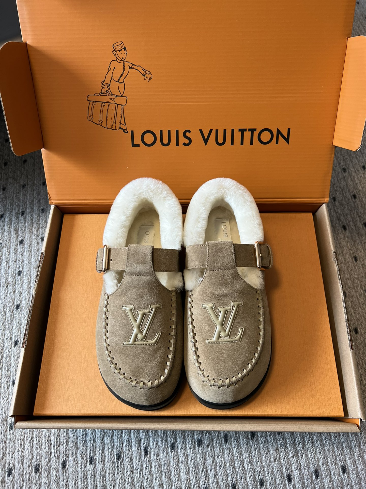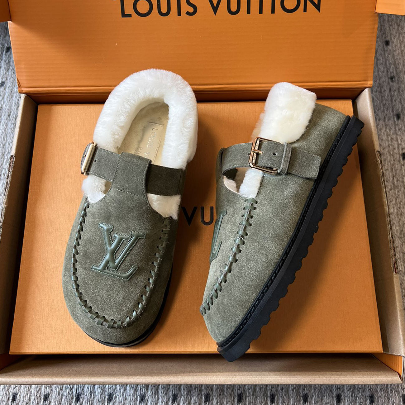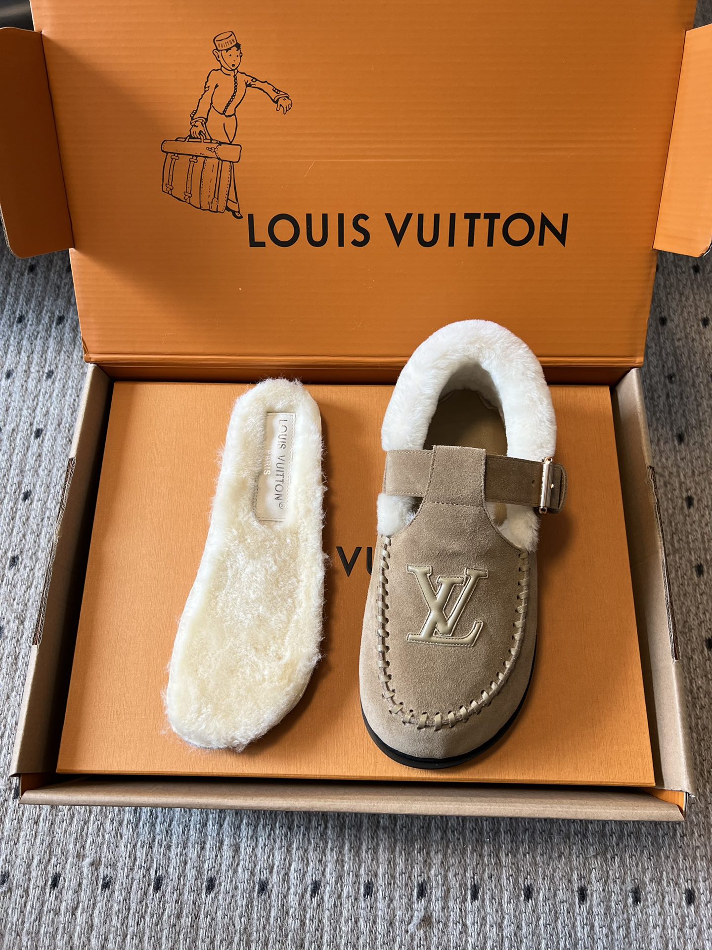 NIGO Louis Vuitton Women's Autumn and Winter Solid Color Cow Leather Wool Round Toe Flat Bottom Shoes #nigo73925