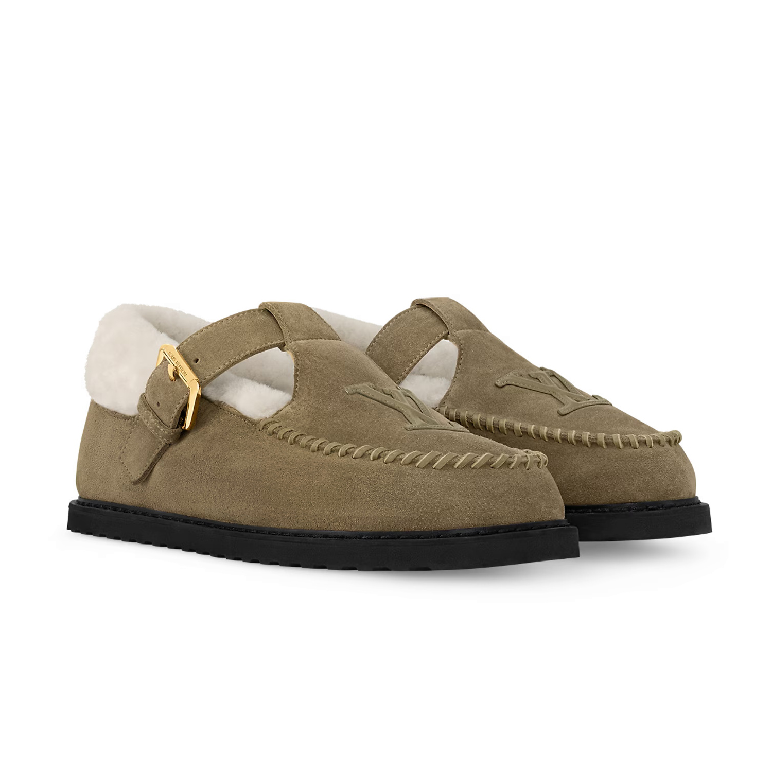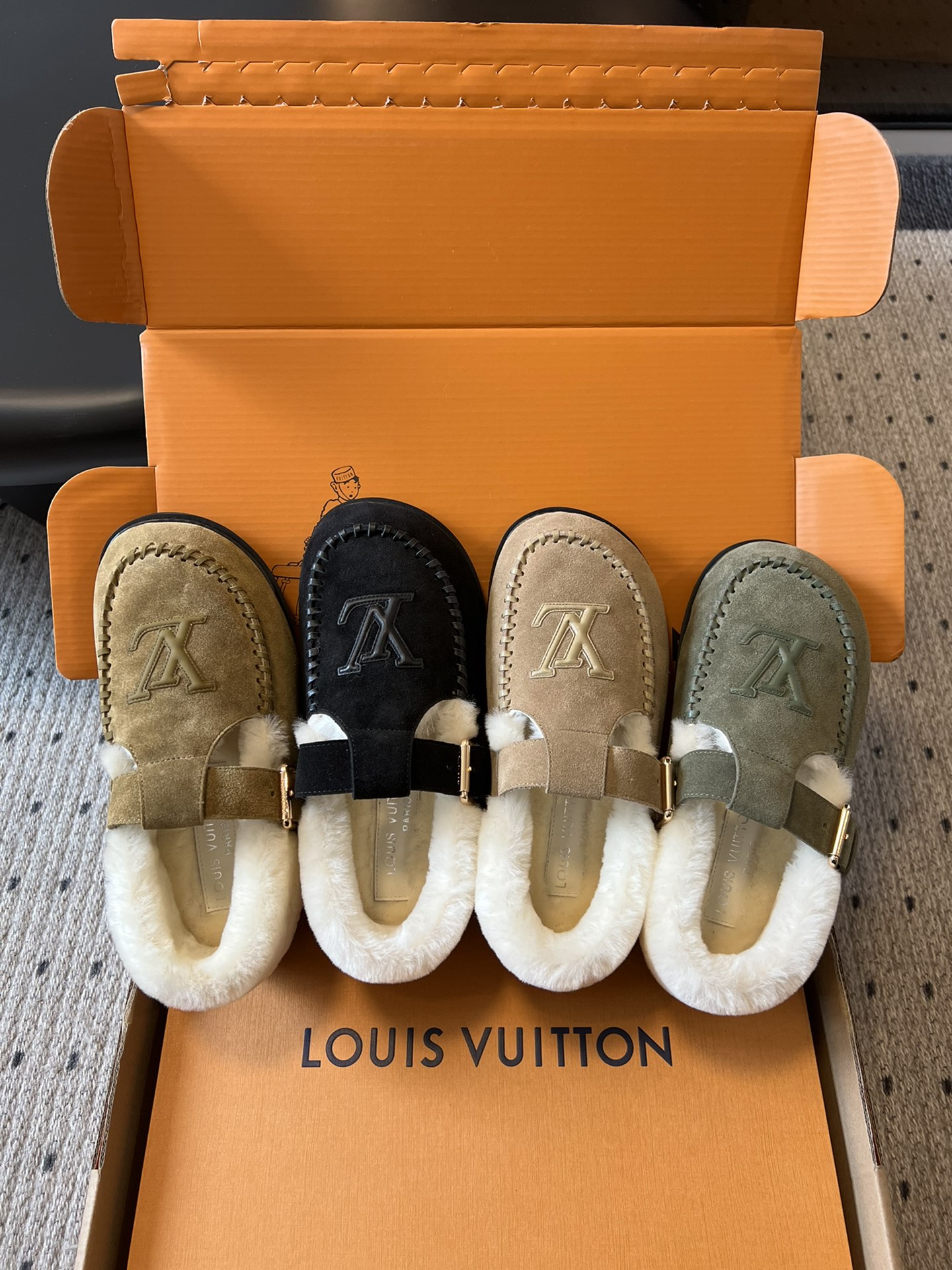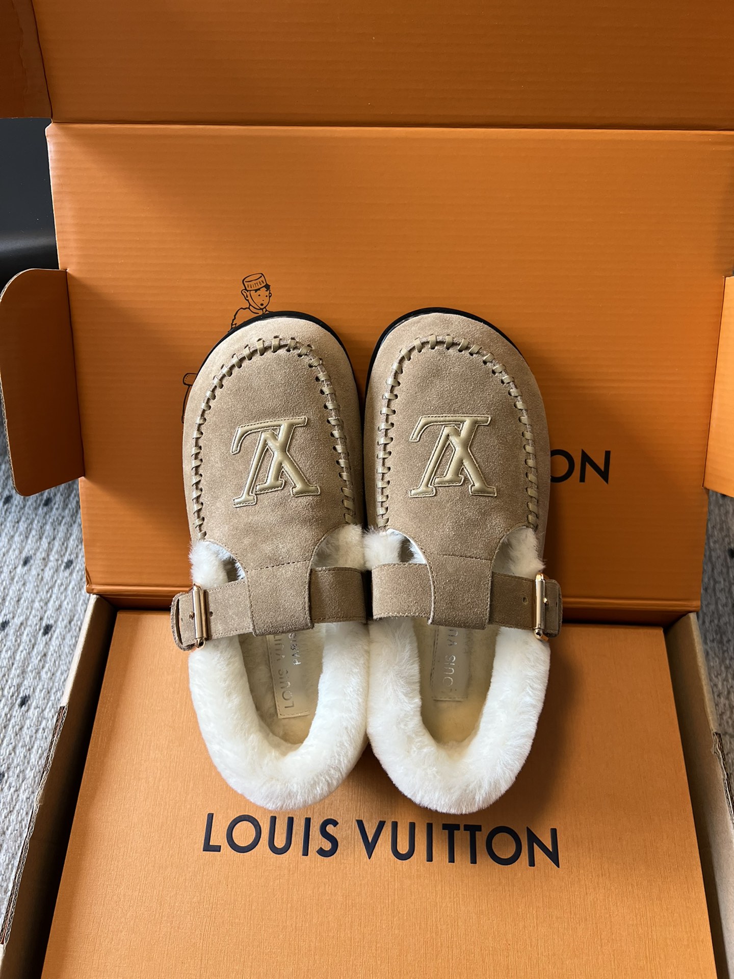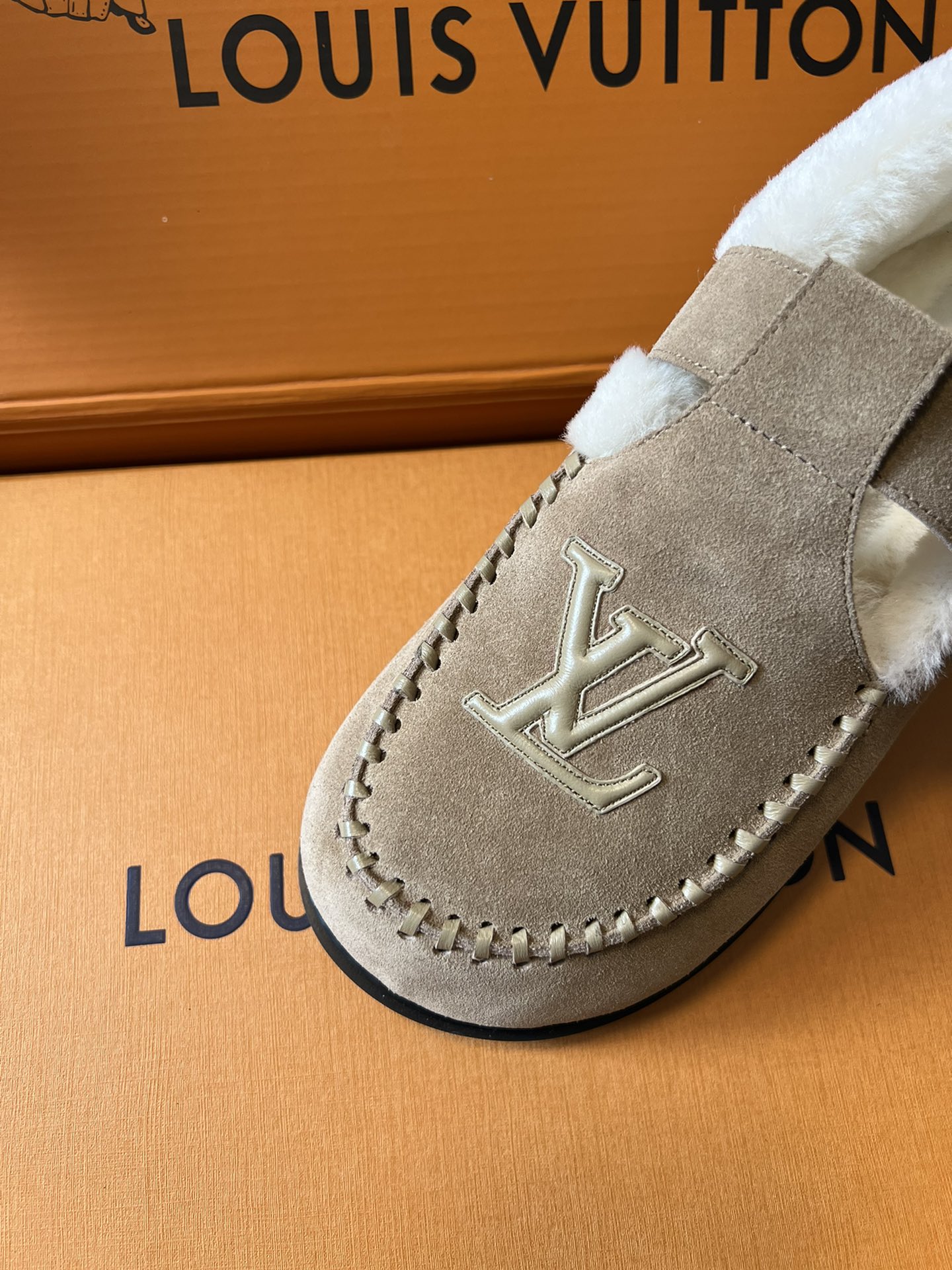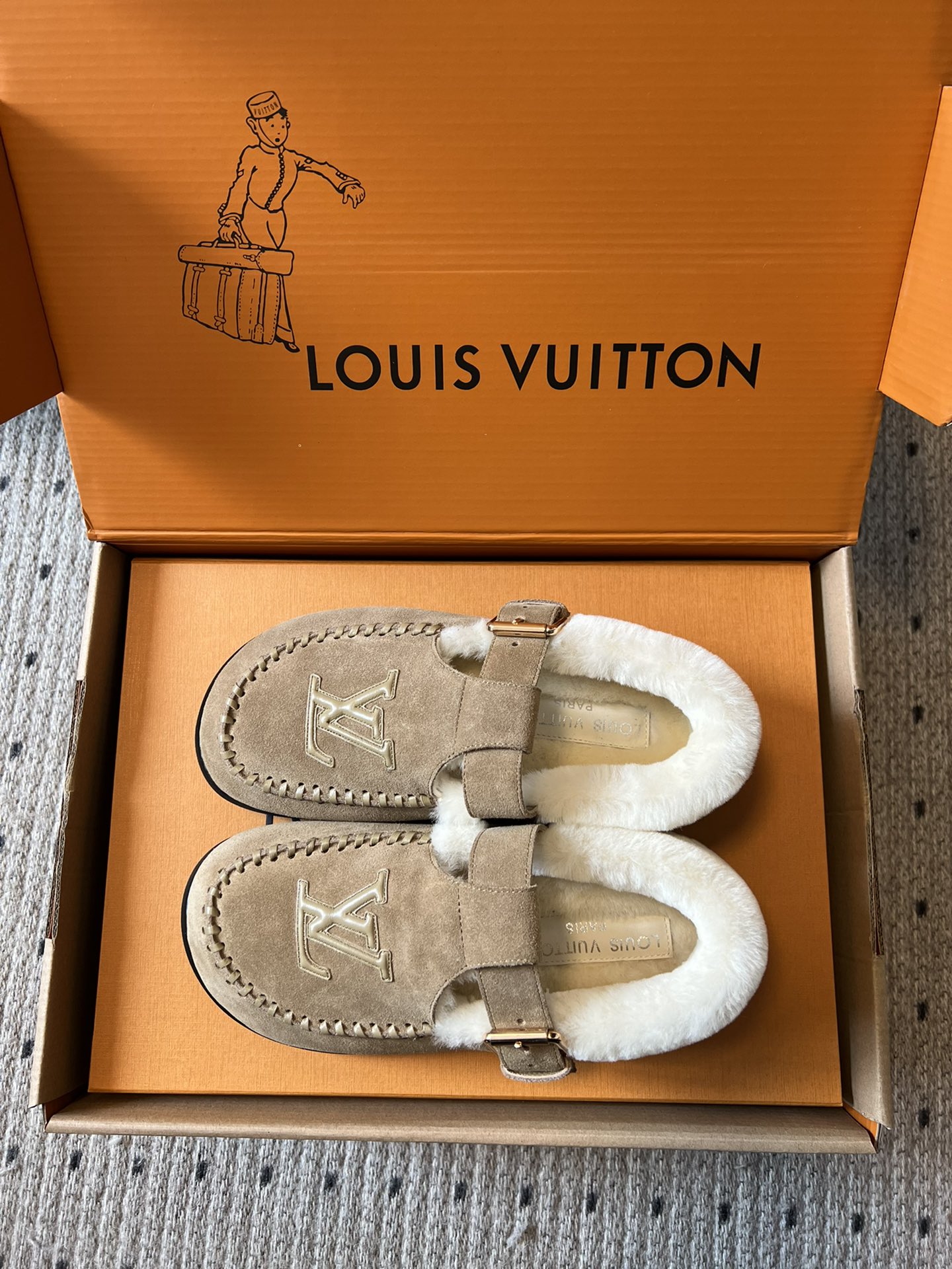 NIGO Louis Vuitton Women's Autumn and Winter Solid Color Cow Leather Wool Round Toe Flat Bottom Shoes #nigo73925
