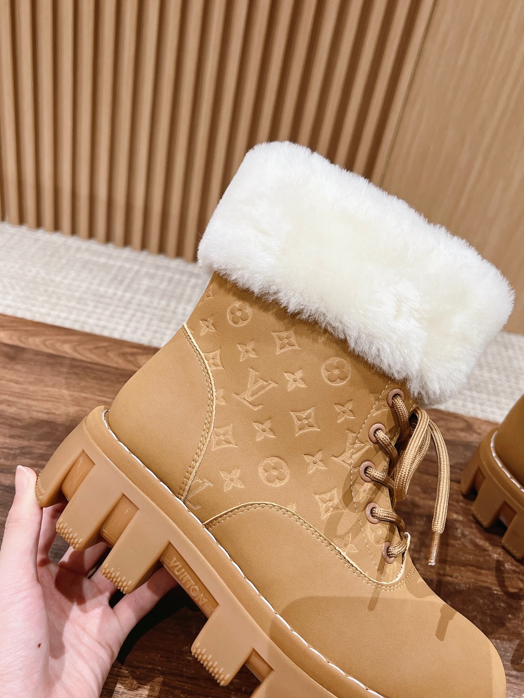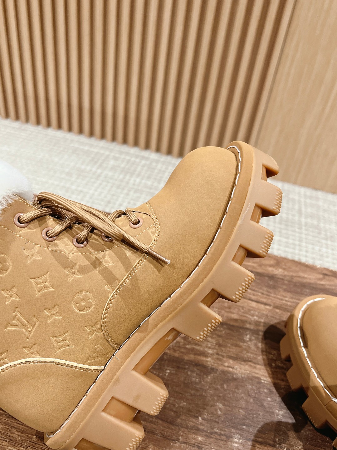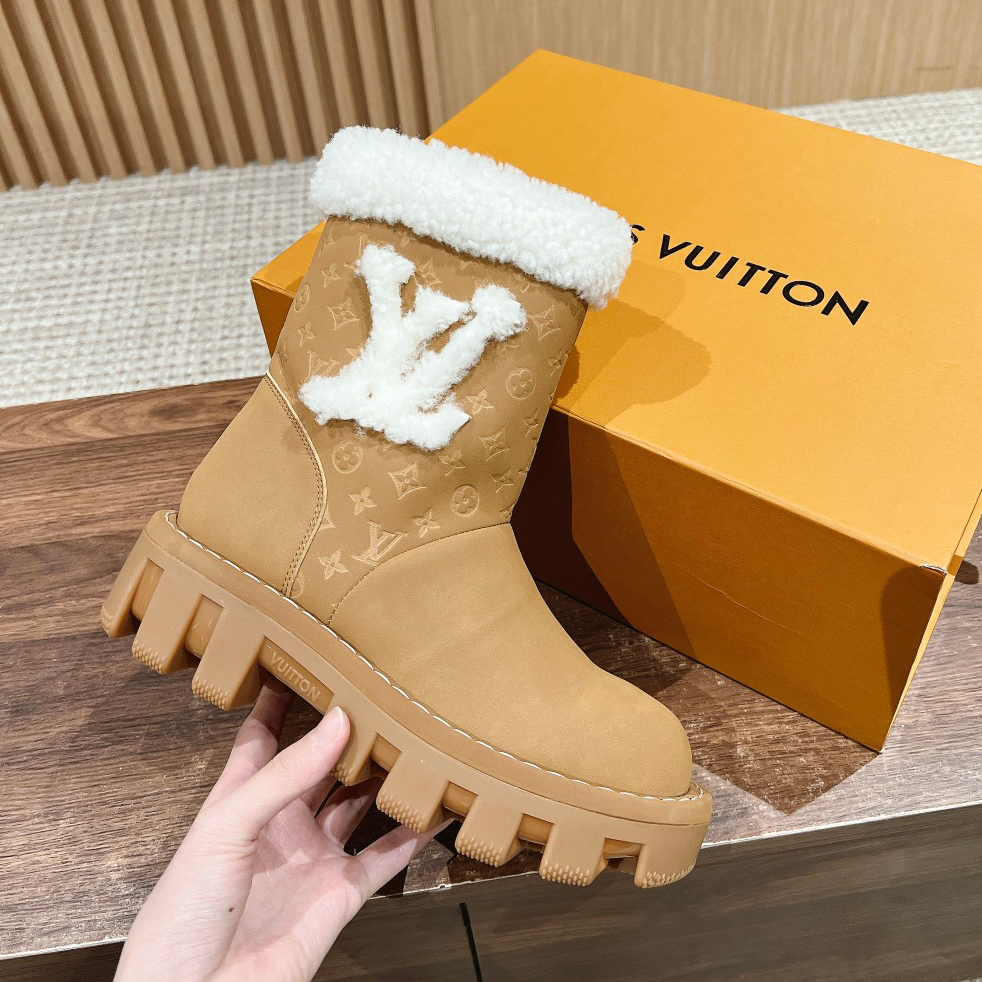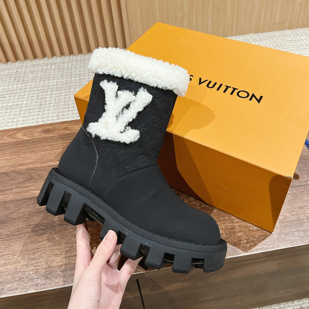 NIGO Louis Vuitton Women's Autumn and Winter Solid Color Suede Wool Lace-Up Short Boots Shoes #nigo73923