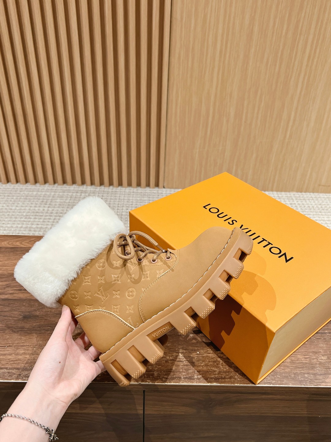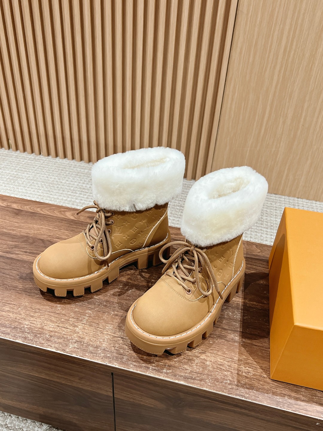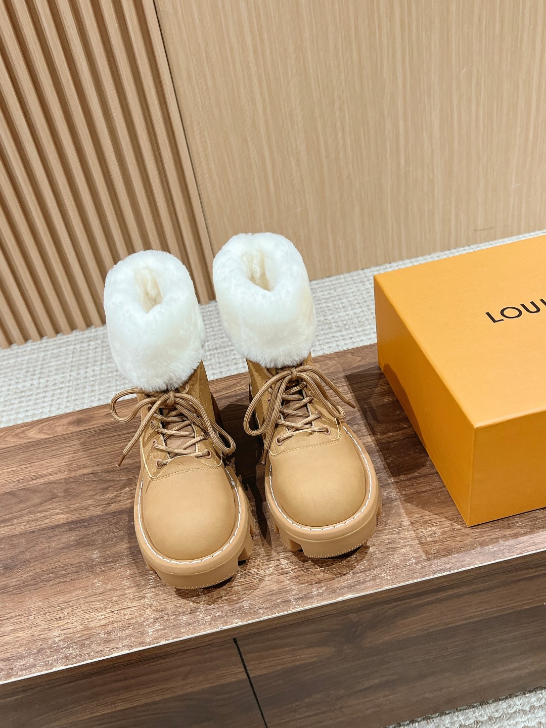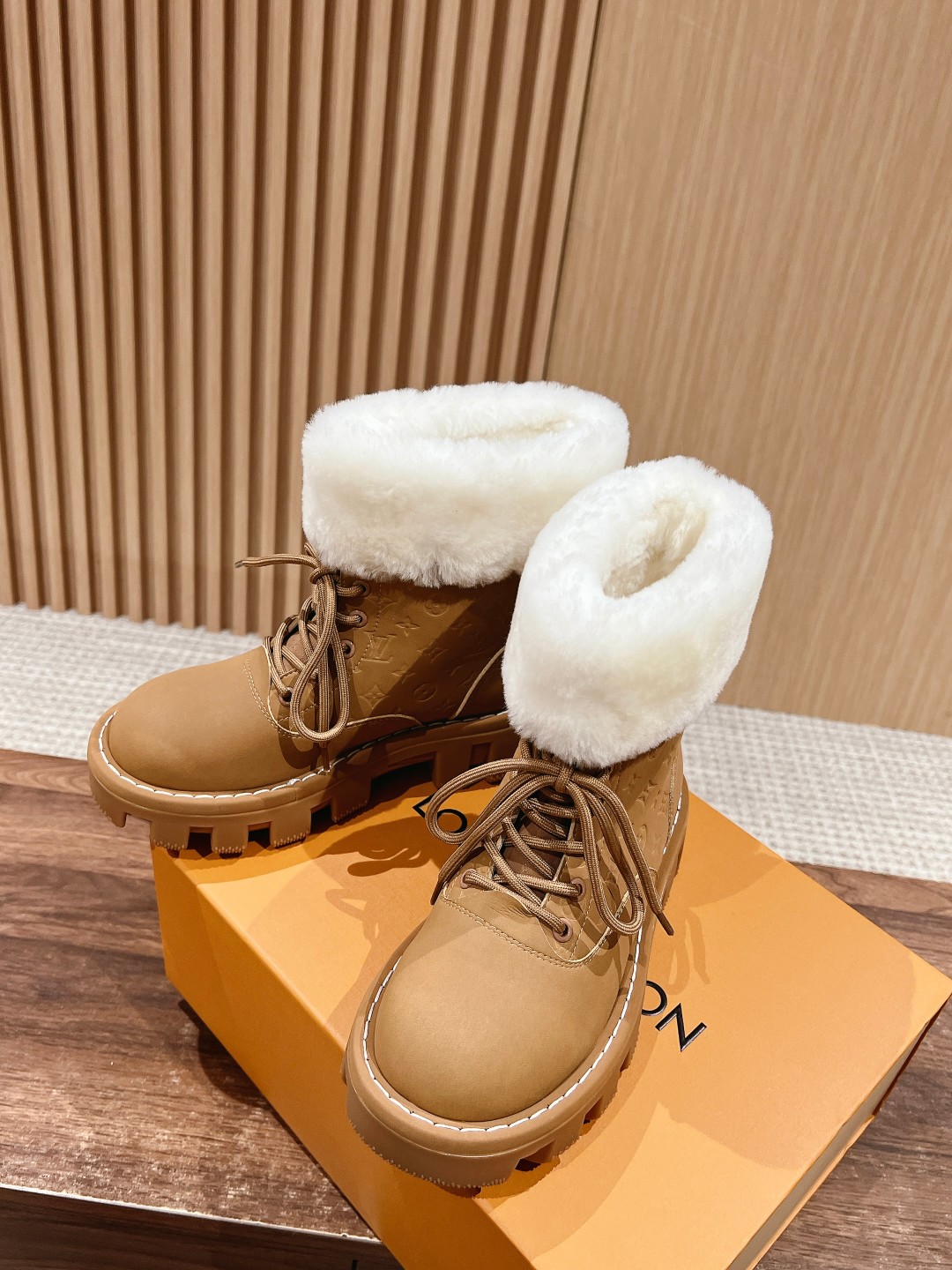 NIGO Louis Vuitton Women's Autumn and Winter Solid Color Suede Wool Lace-Up Short Boots Shoes #nigo73923