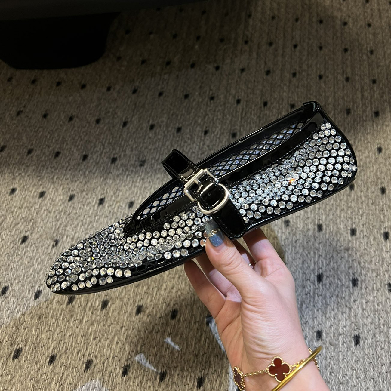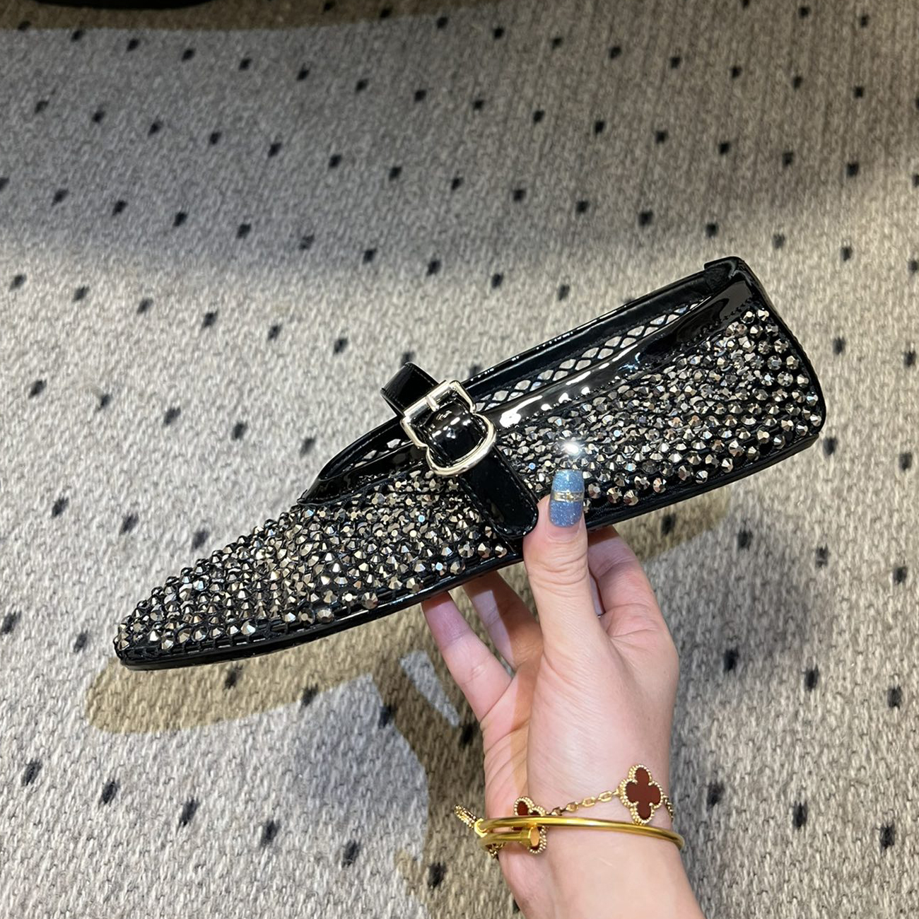 NIGO Women's Spring And Summer Solid Color Rhinestone Fashion Casual Leather Ballet Shoes #nigo73259