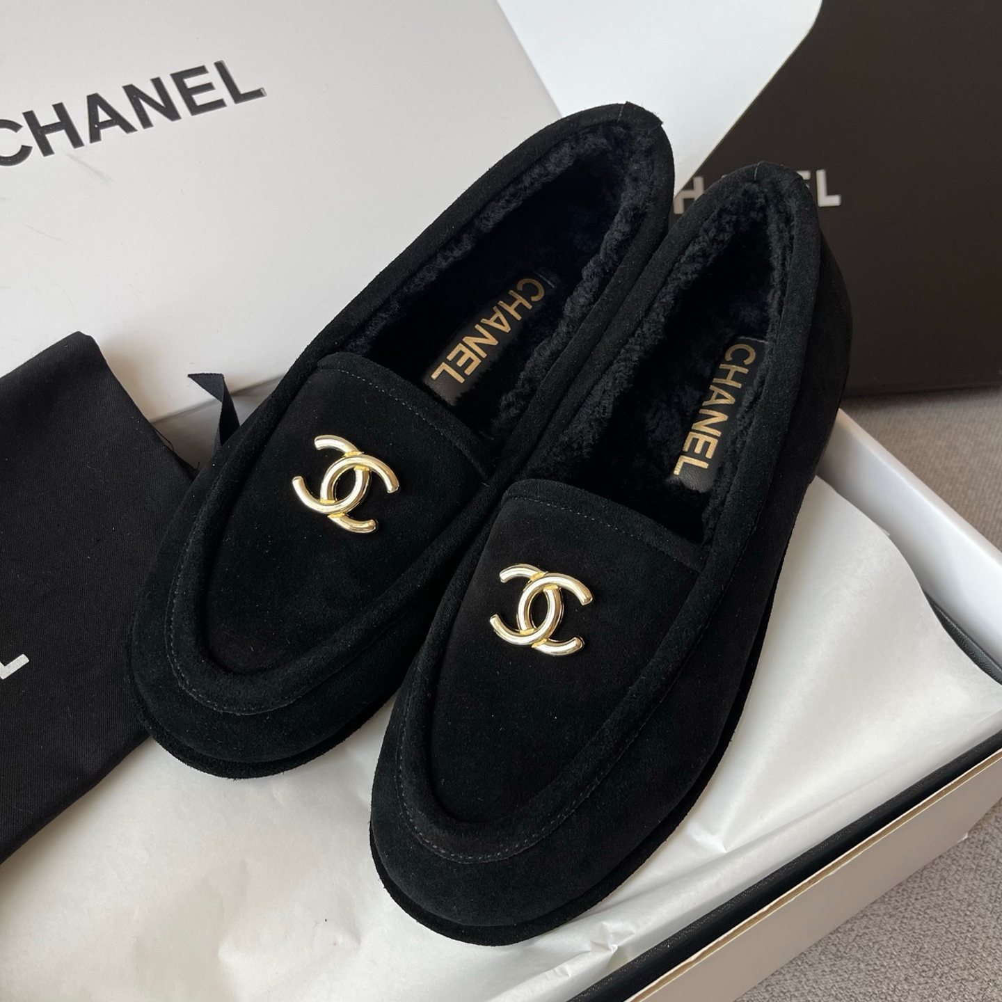 NIGO Chanel Women's Fall/Winter Logo Suede Solid-Color Round-Toe Low-Top Loafers Casual Flats Shoes #nigo81589