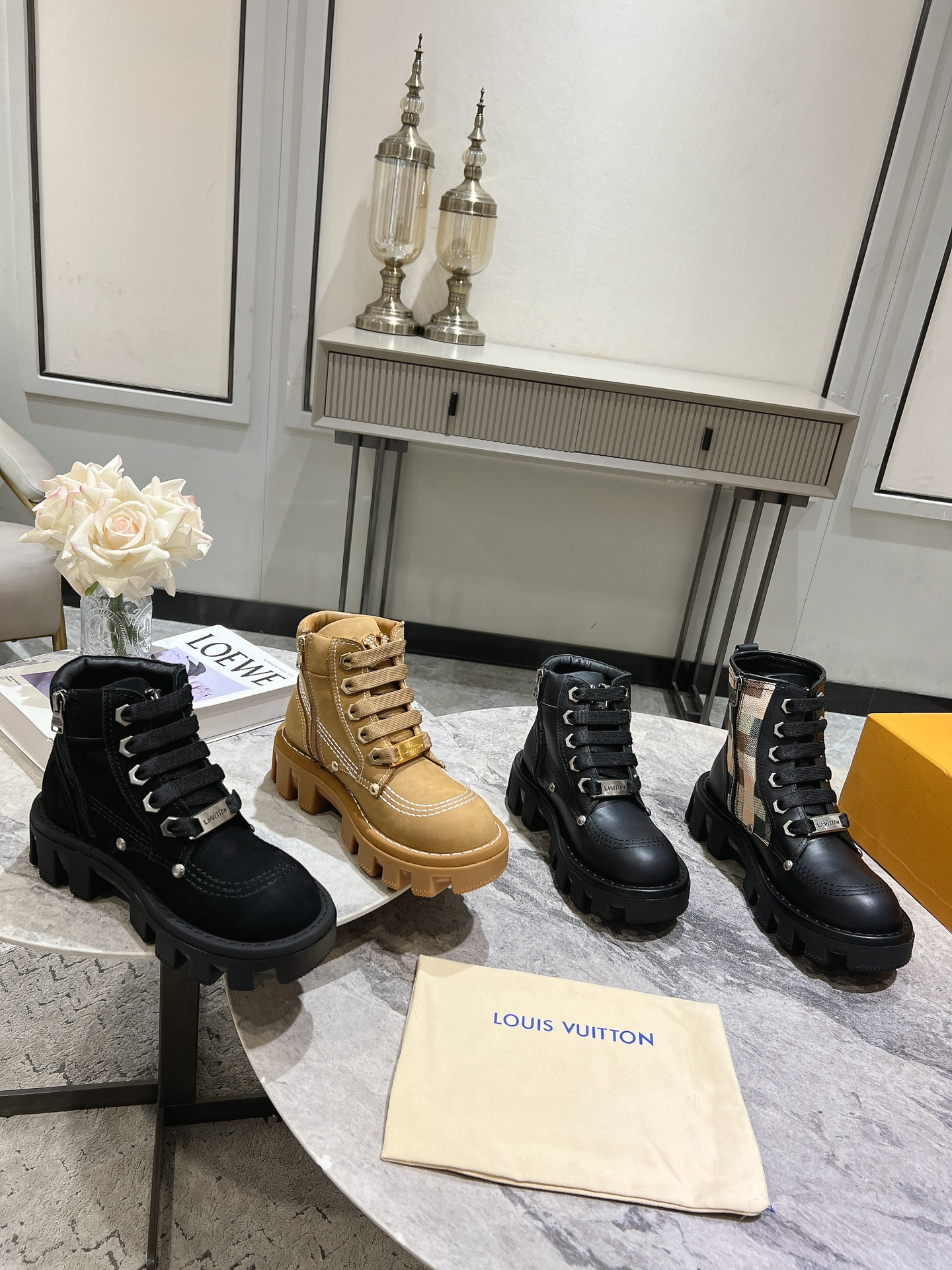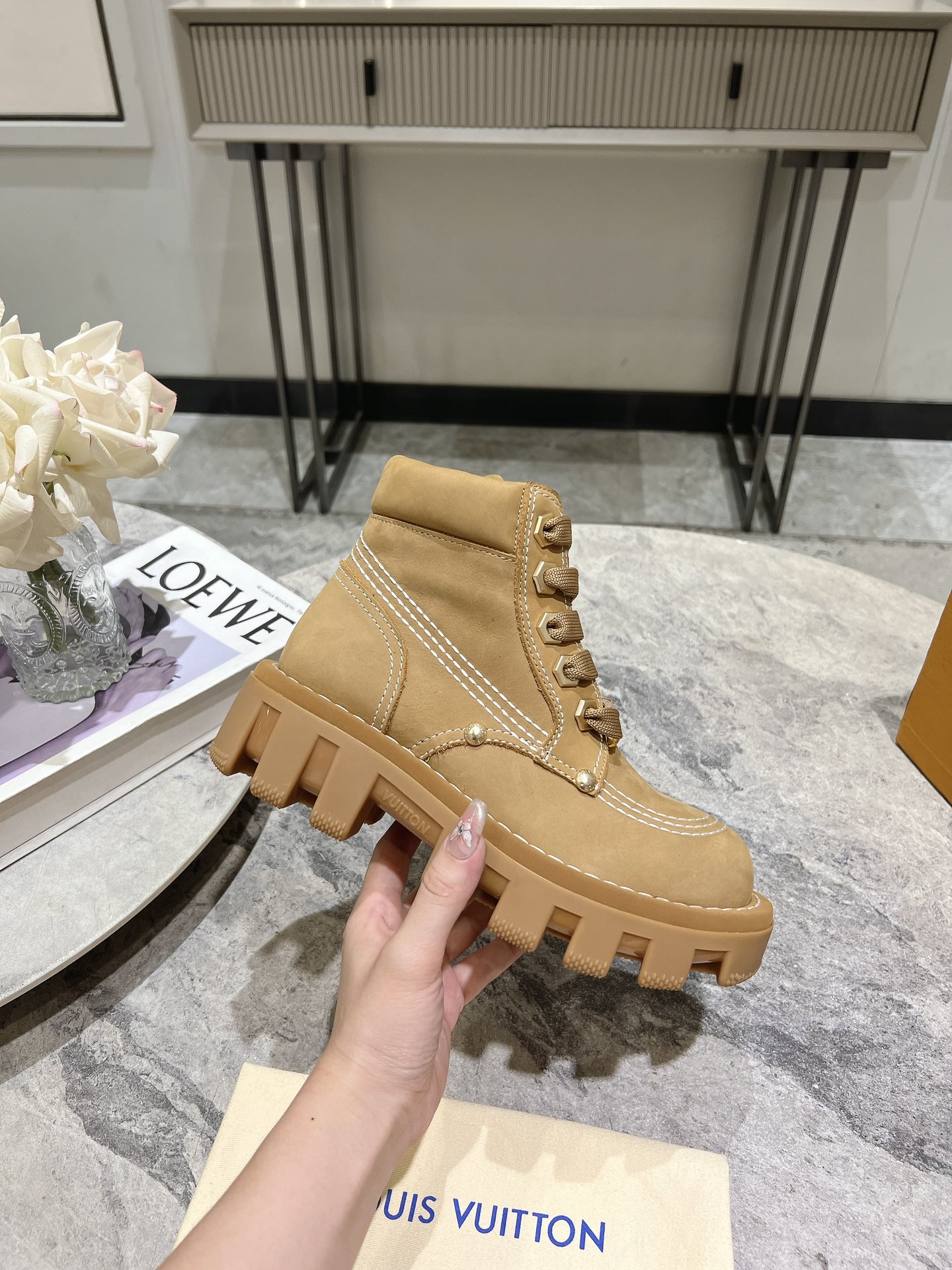 NIGO Louis Vuitton Men's and Women's Solid Color Suede Leather Lace Up Short Martin Boots Shoes #nigo72847