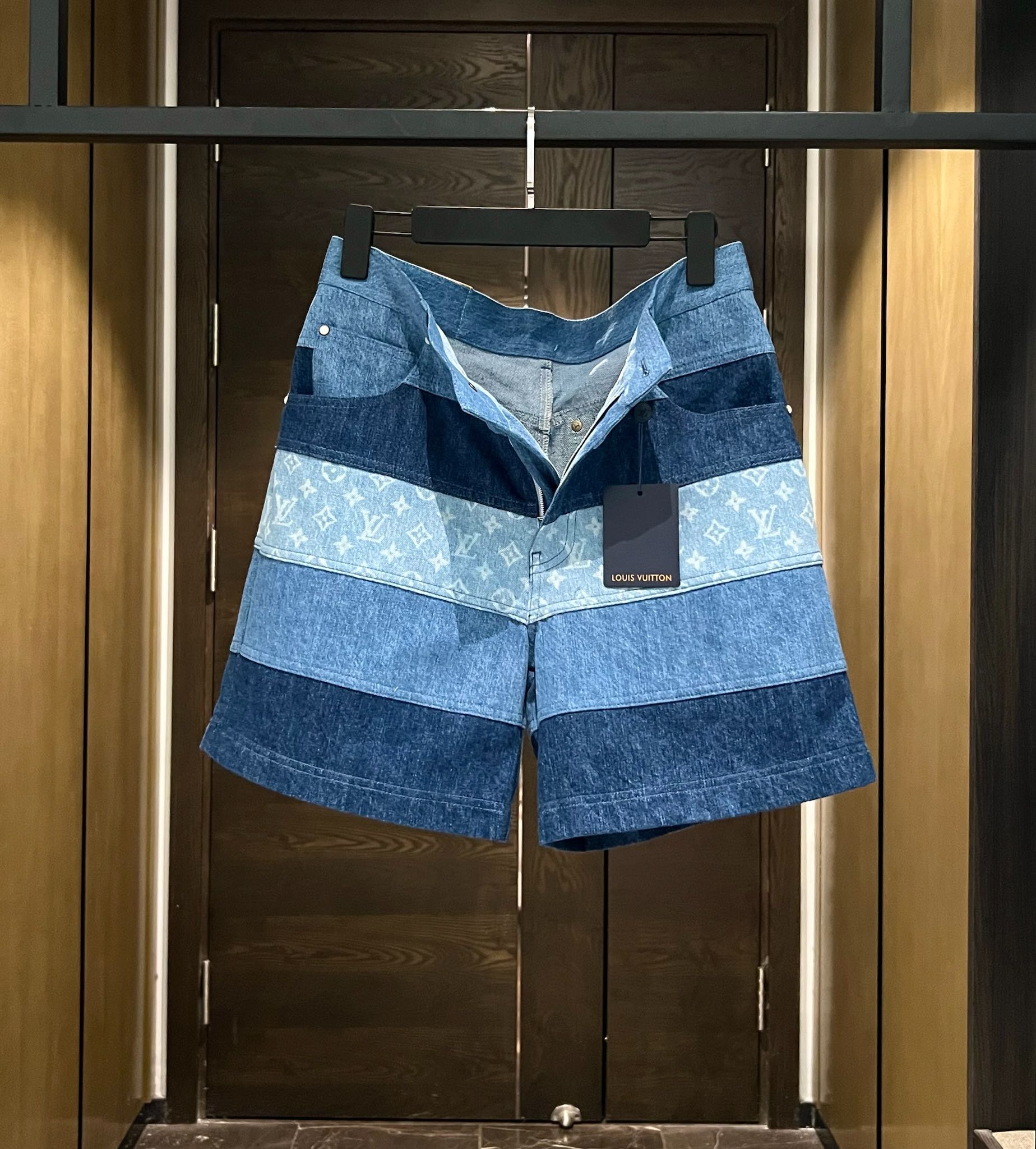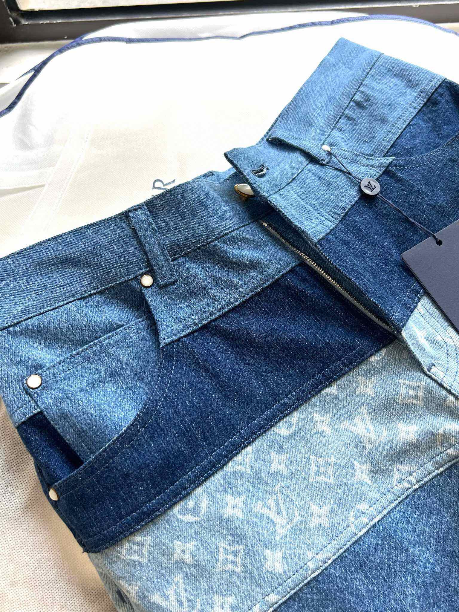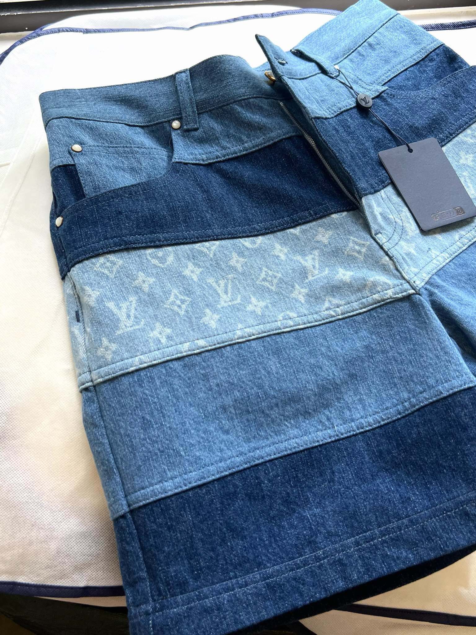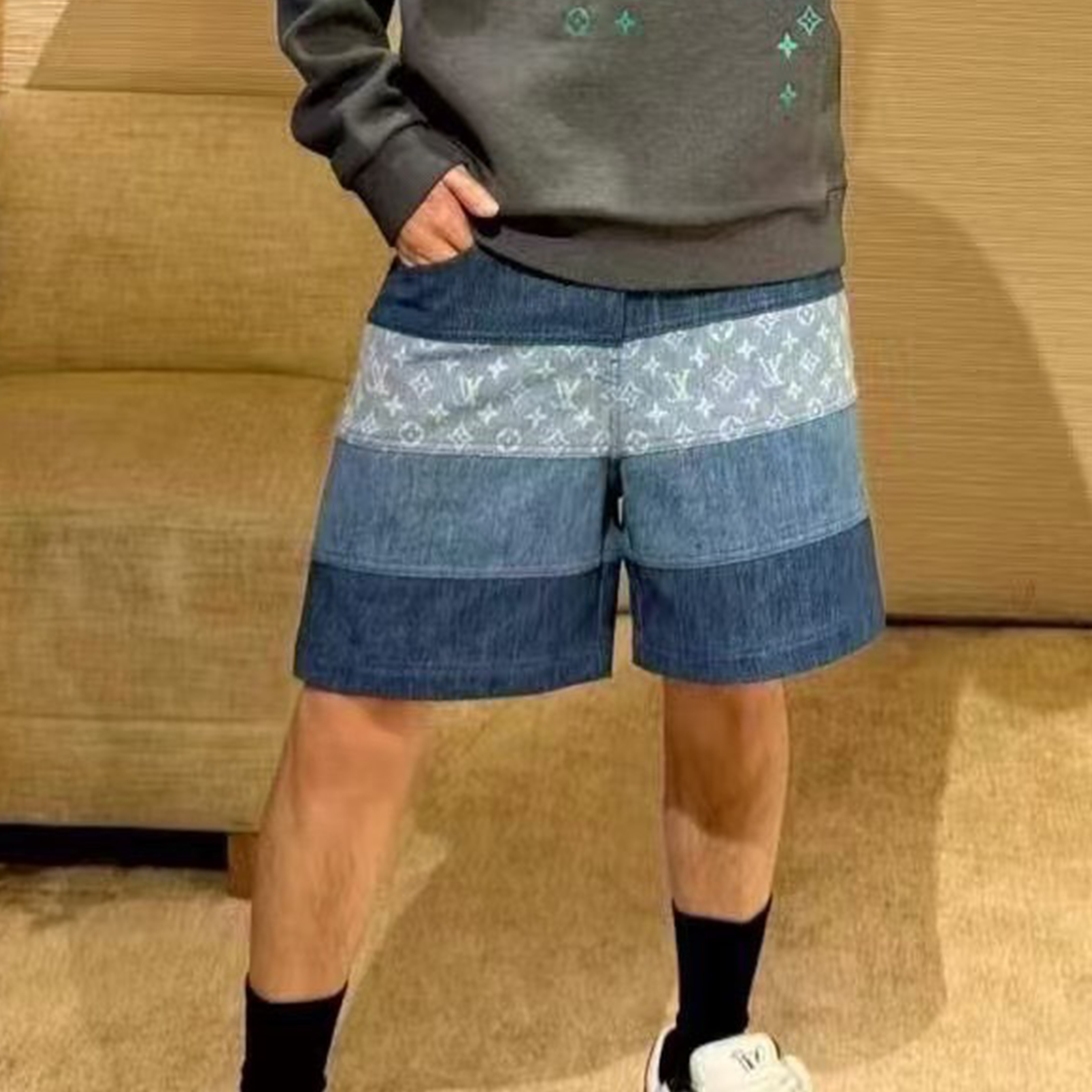 NIGO Louis Vuitton Men's Spring And Summer Fashion Retro Print Casual Pants Striped Stitching Denim Shorts #nigo72324
