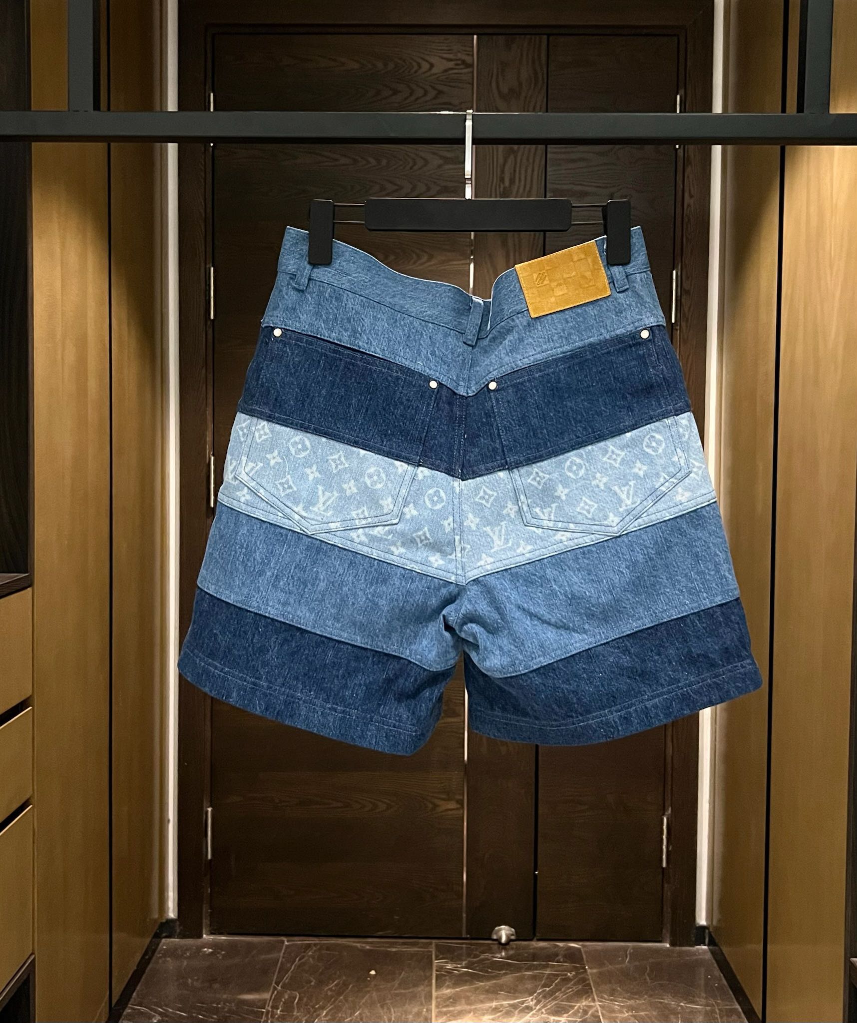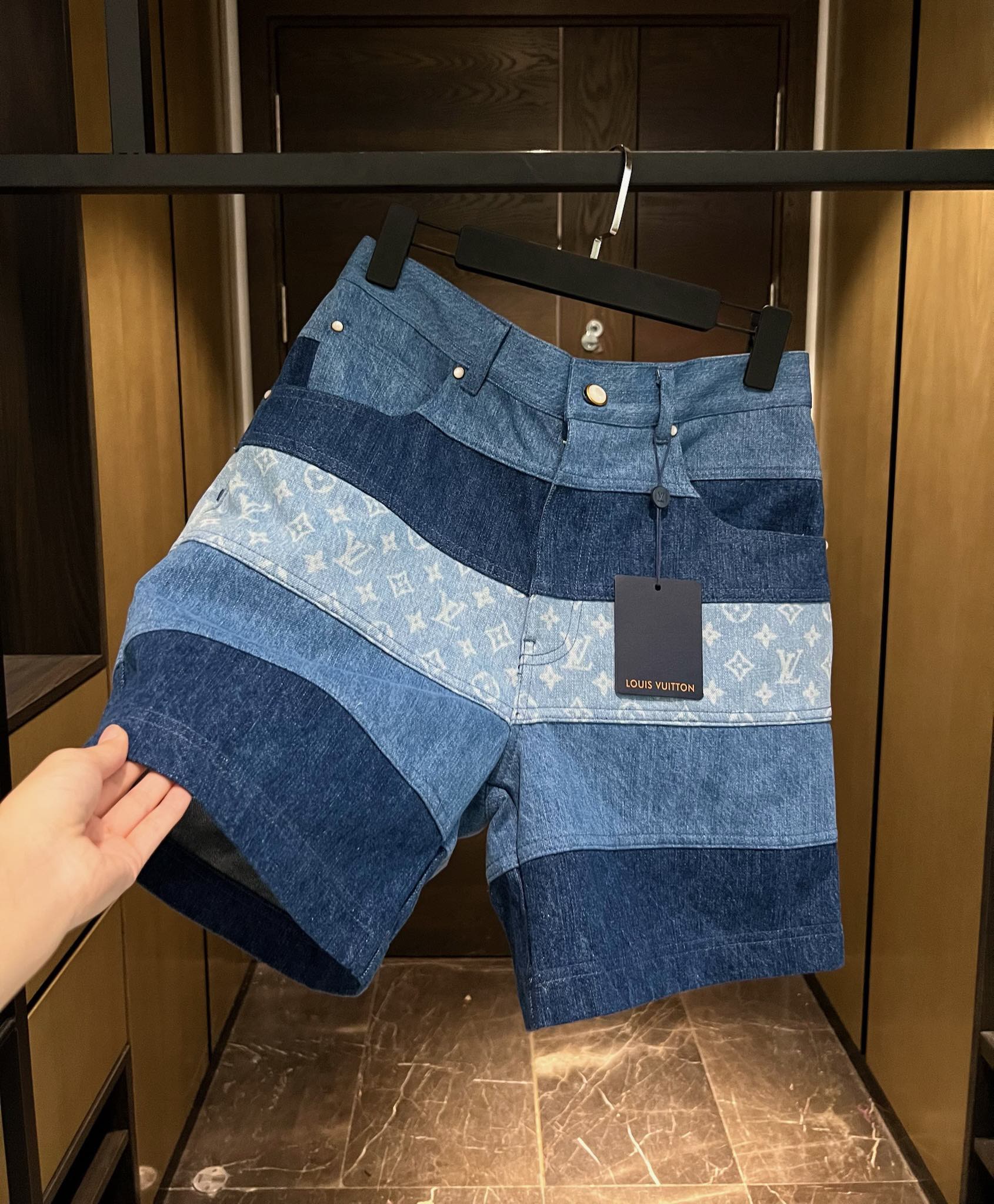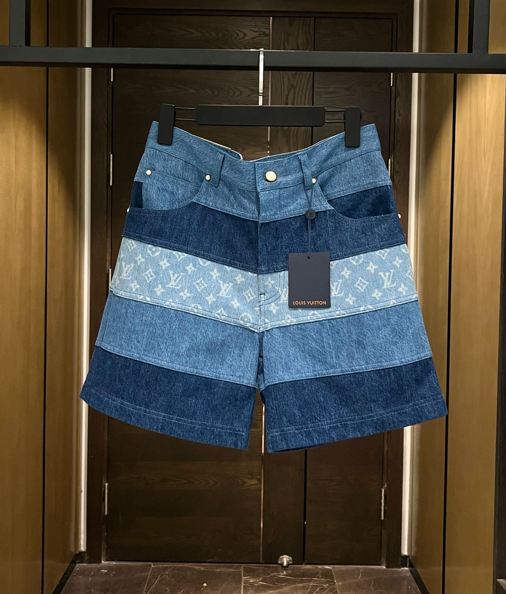 NIGO Louis Vuitton Men's Spring And Summer Fashion Retro Print Casual Pants Striped Stitching Denim Shorts #nigo72324