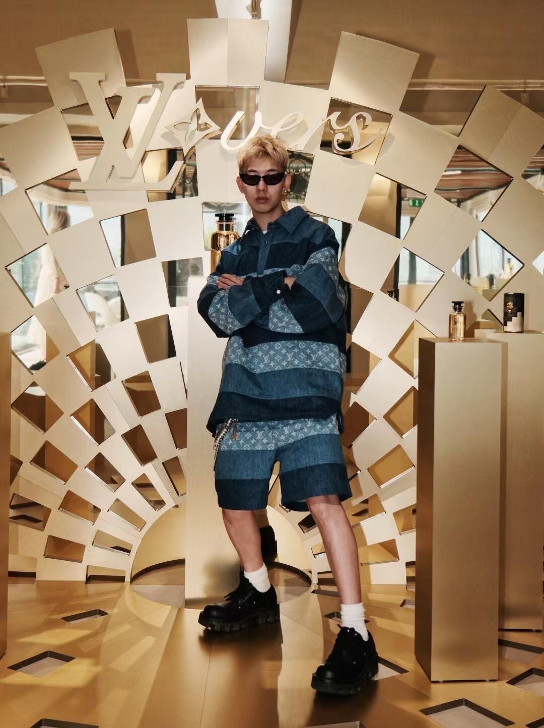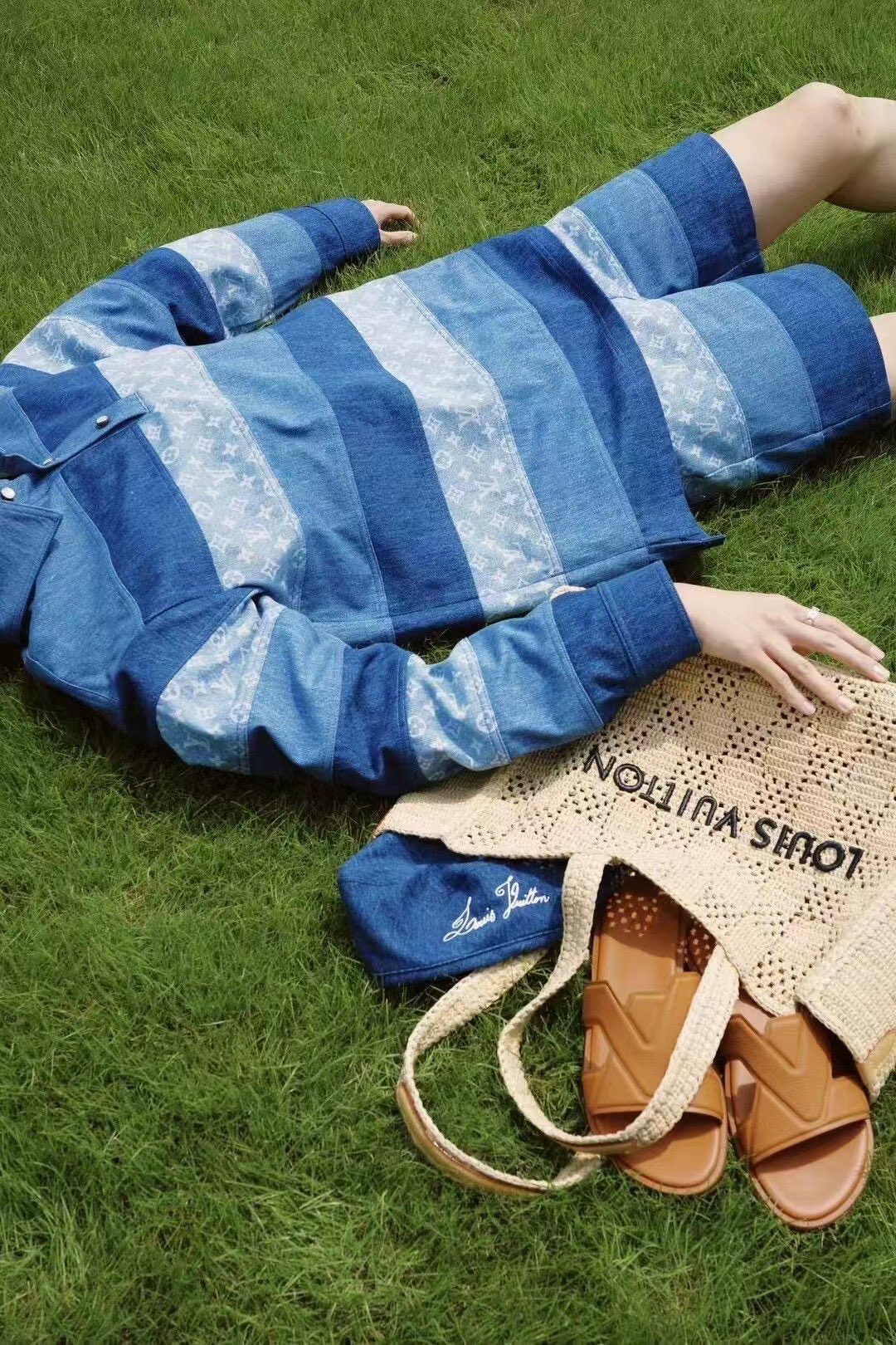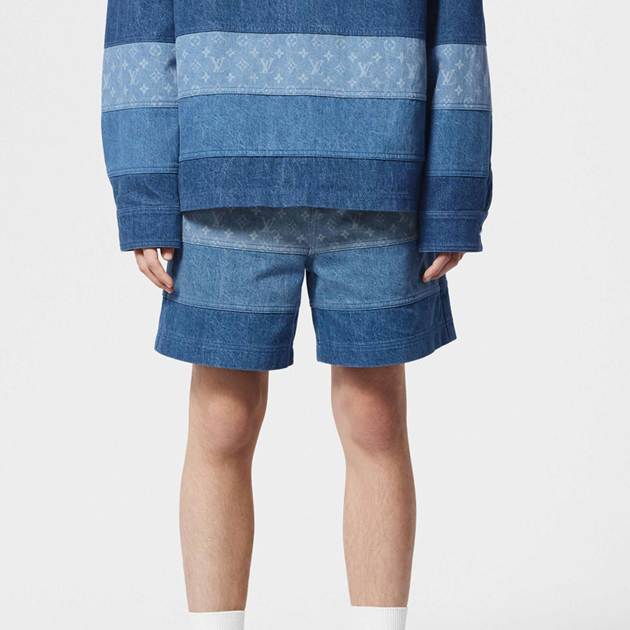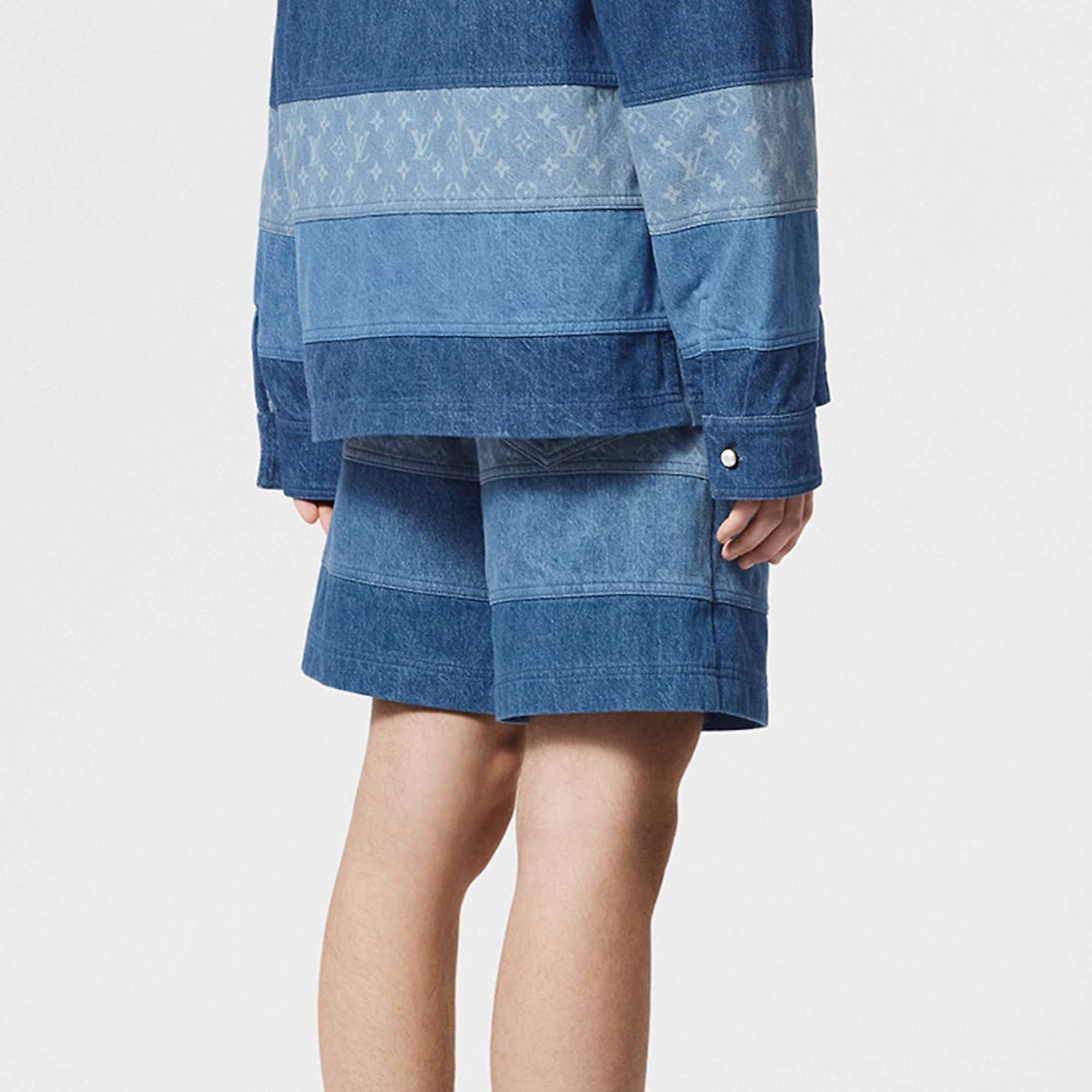 NIGO Louis Vuitton Men's Spring And Summer Fashion Retro Print Casual Pants Striped Stitching Denim Shorts #nigo72324
