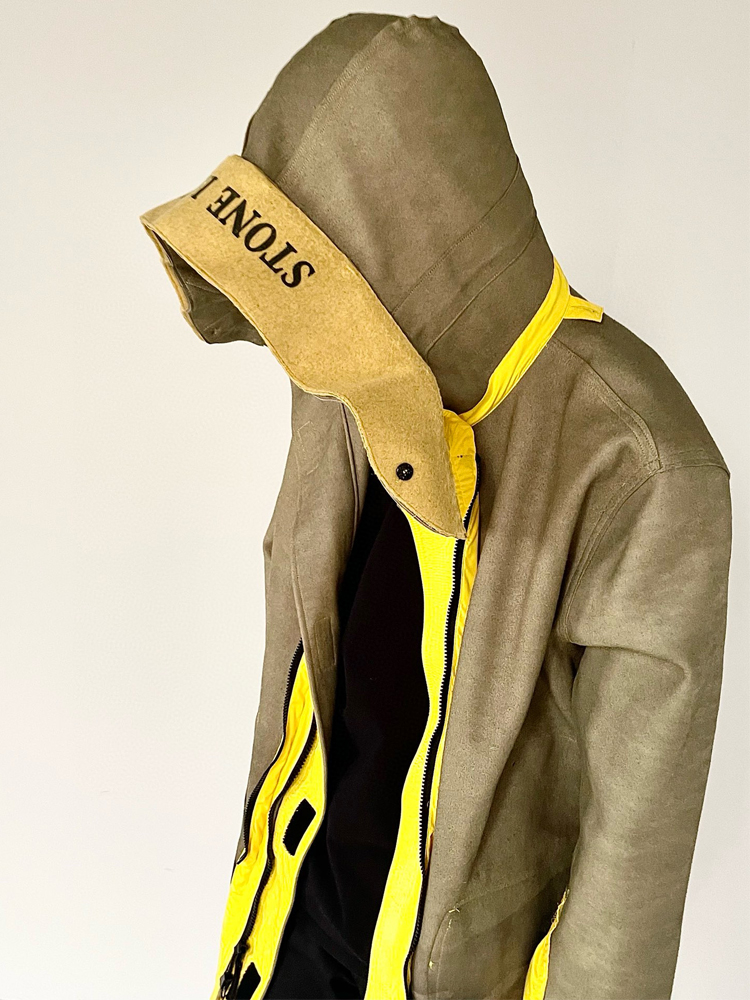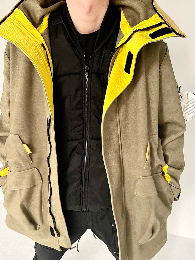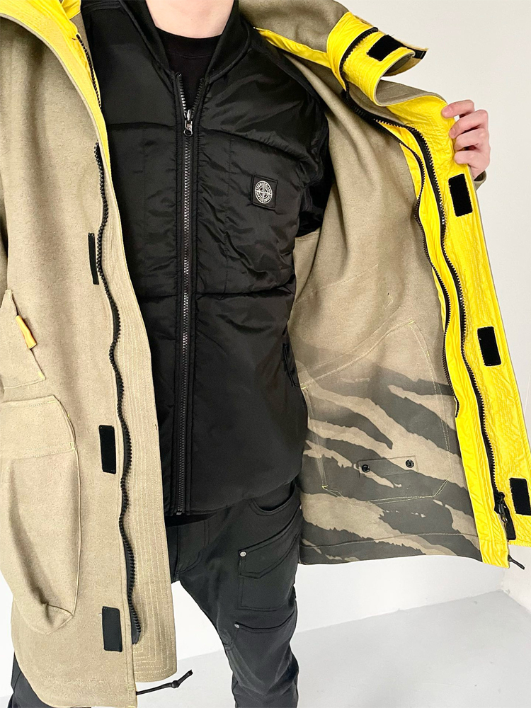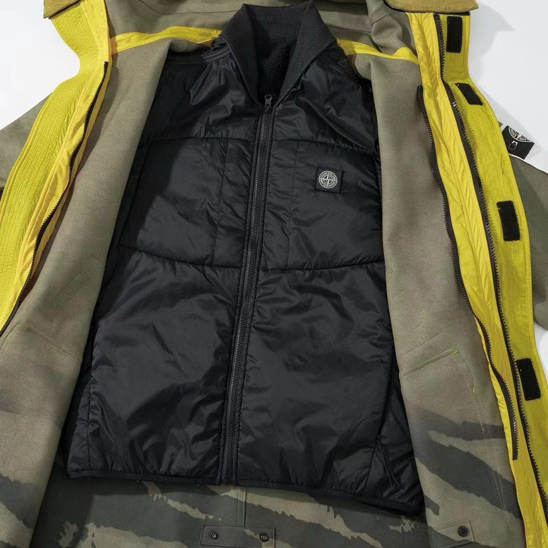 NIGO Stone Island Men's Fall And Winter Winter Thickened Suede Printed Hooded Coat Front And Back Wear Jacket With Liner #nigo72395
