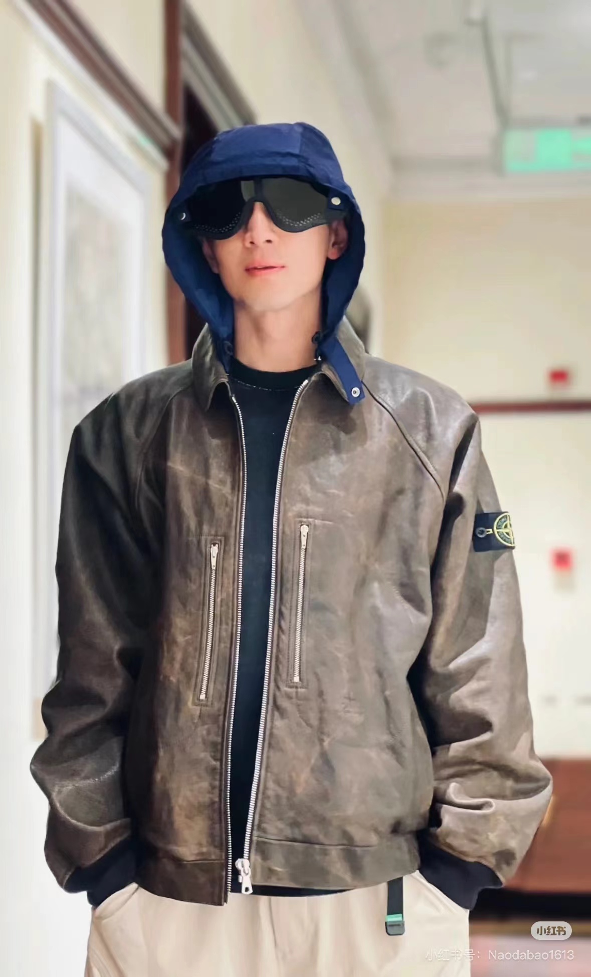 NIGO Stone Island X Supreme Men's Spring and Fall Zipper Hooded Aviator Jacket Coat #nigo98752