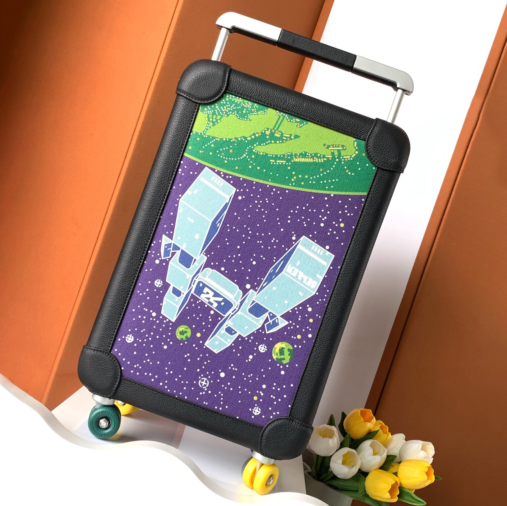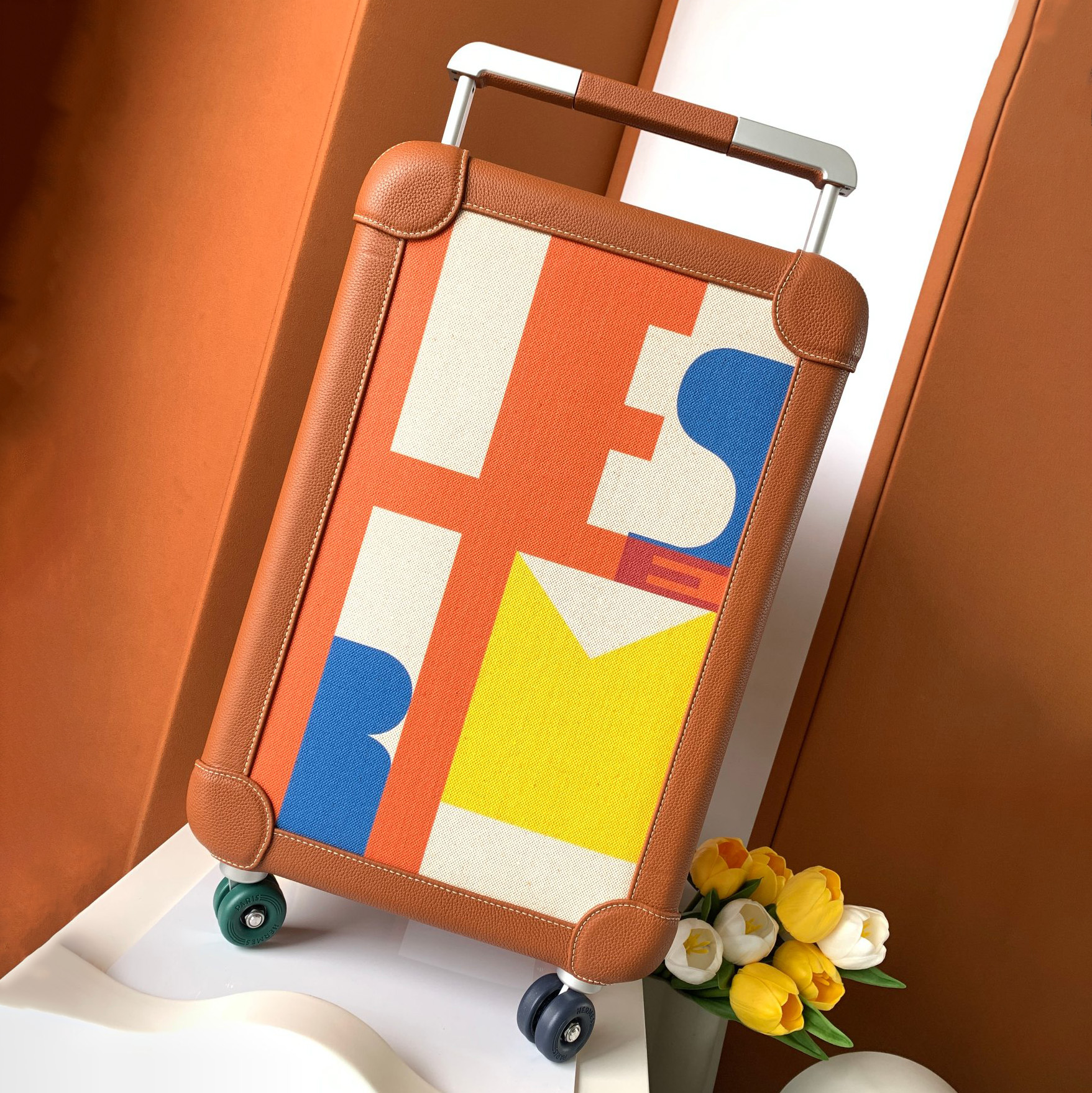 NIGO Hermes R.M.S Classic Fashion Pattern Printed Pull-along Canvas Cowhide Leather Luggage Bags #nigo78183