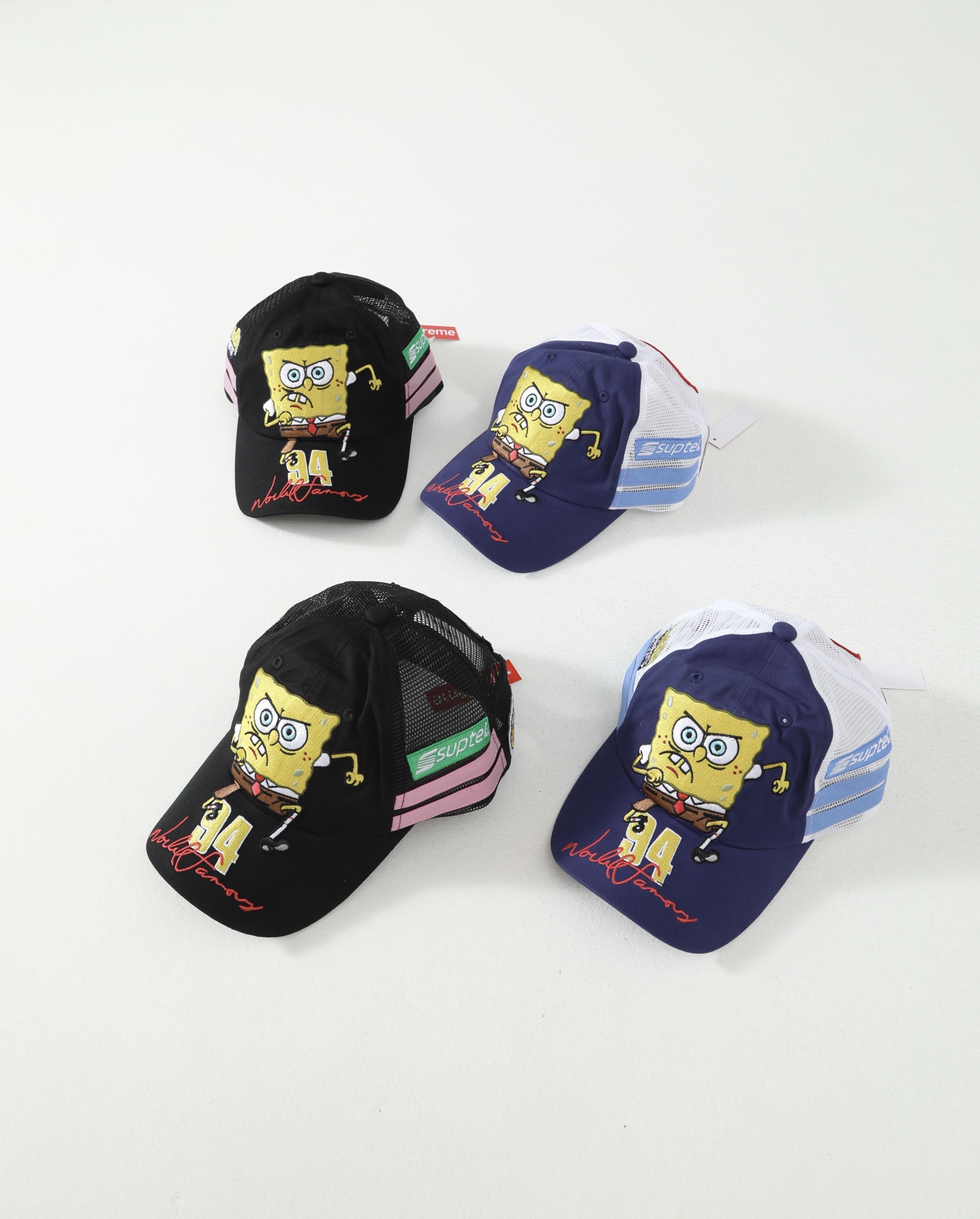 NIGO Supreme x SPONGEBOB SQUAREPANTS Men's And Women's Spring/Summer Spongebob Squarepants Co-branded Letter Embroidered Cartoon Hip Hop Duckbill Baseball Cap #nigo78232