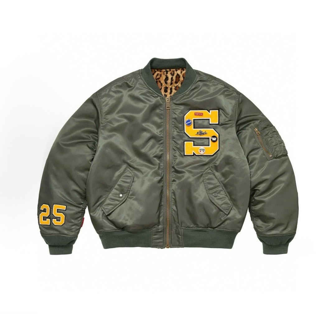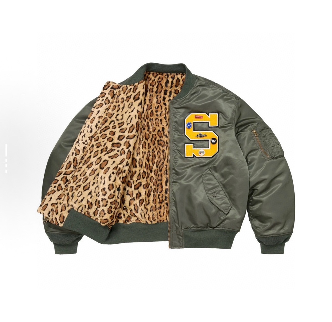 NIGO Supreme Men's Fall/Winter Fashion Casual High-Neck Zipper Leopard Print Faux Suede Nylon Fabric Air Force Jacket #nigo79527