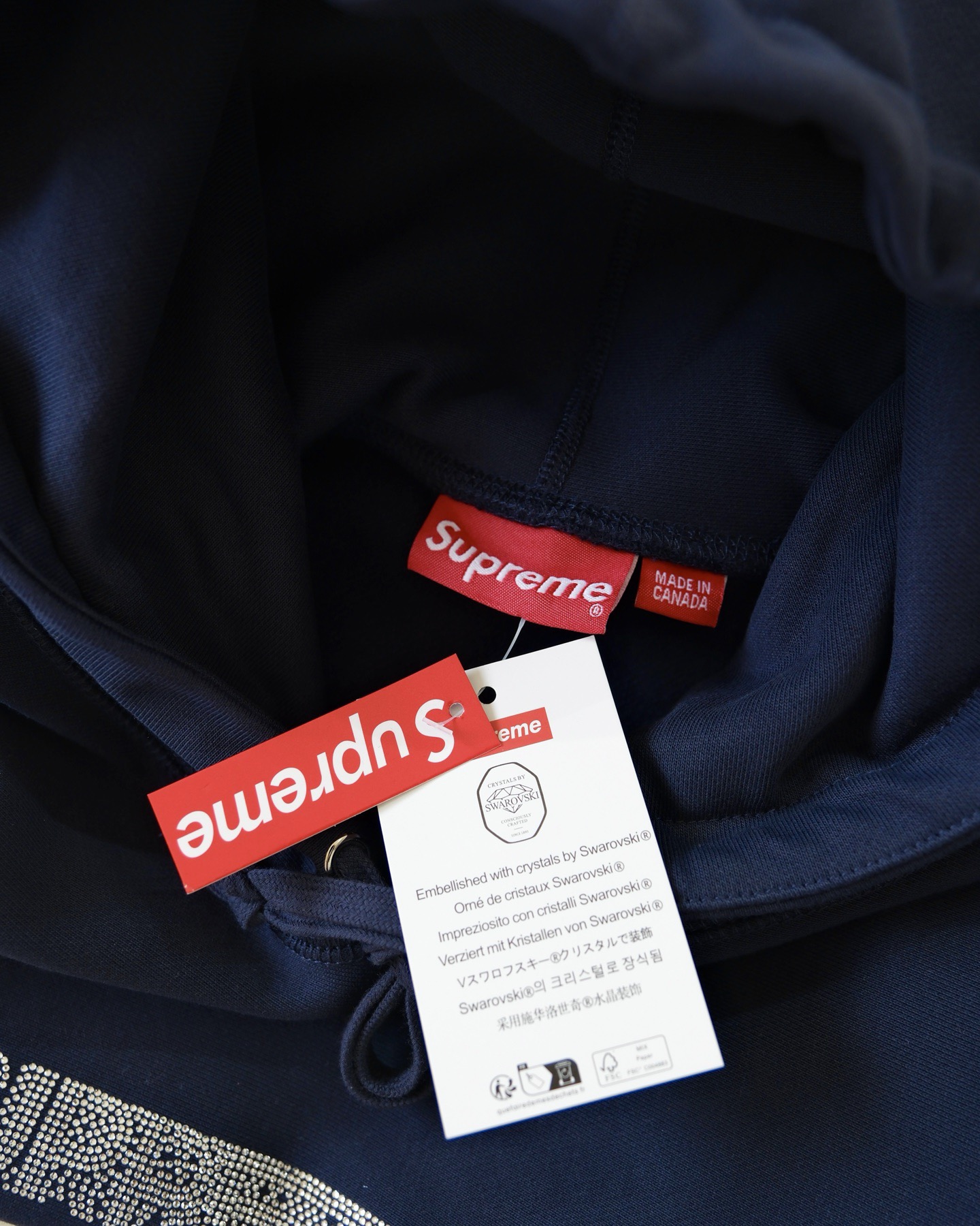 NIGO Supreme x Swarovski Men's and Women's FW25 WEEK4 Motion Logo Hooded Sweatshirt rhinestone dynamic logo kangaroo pocket hooded sweatshirt #nigo332326