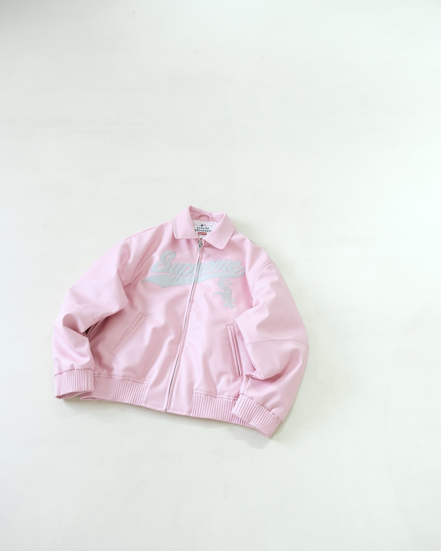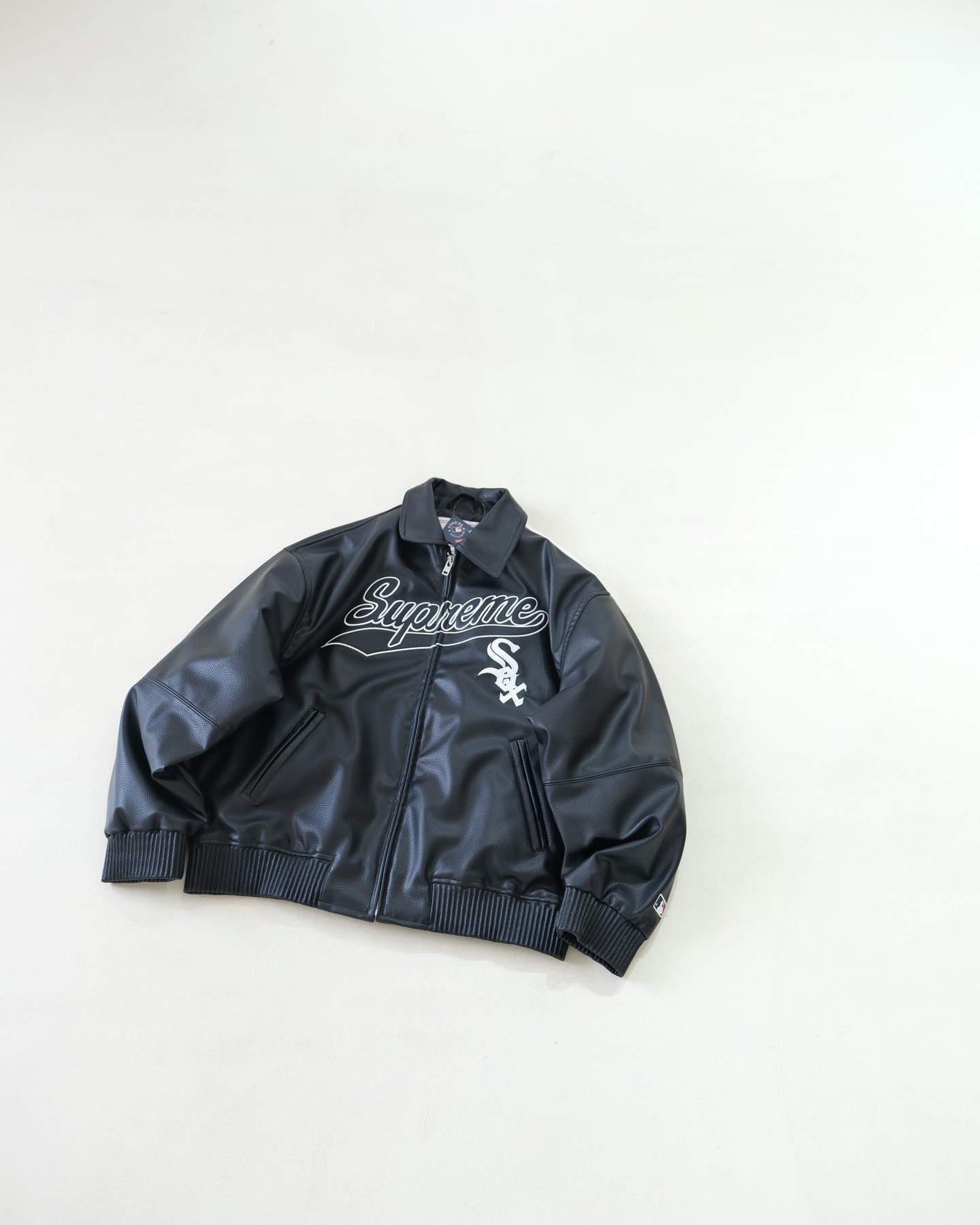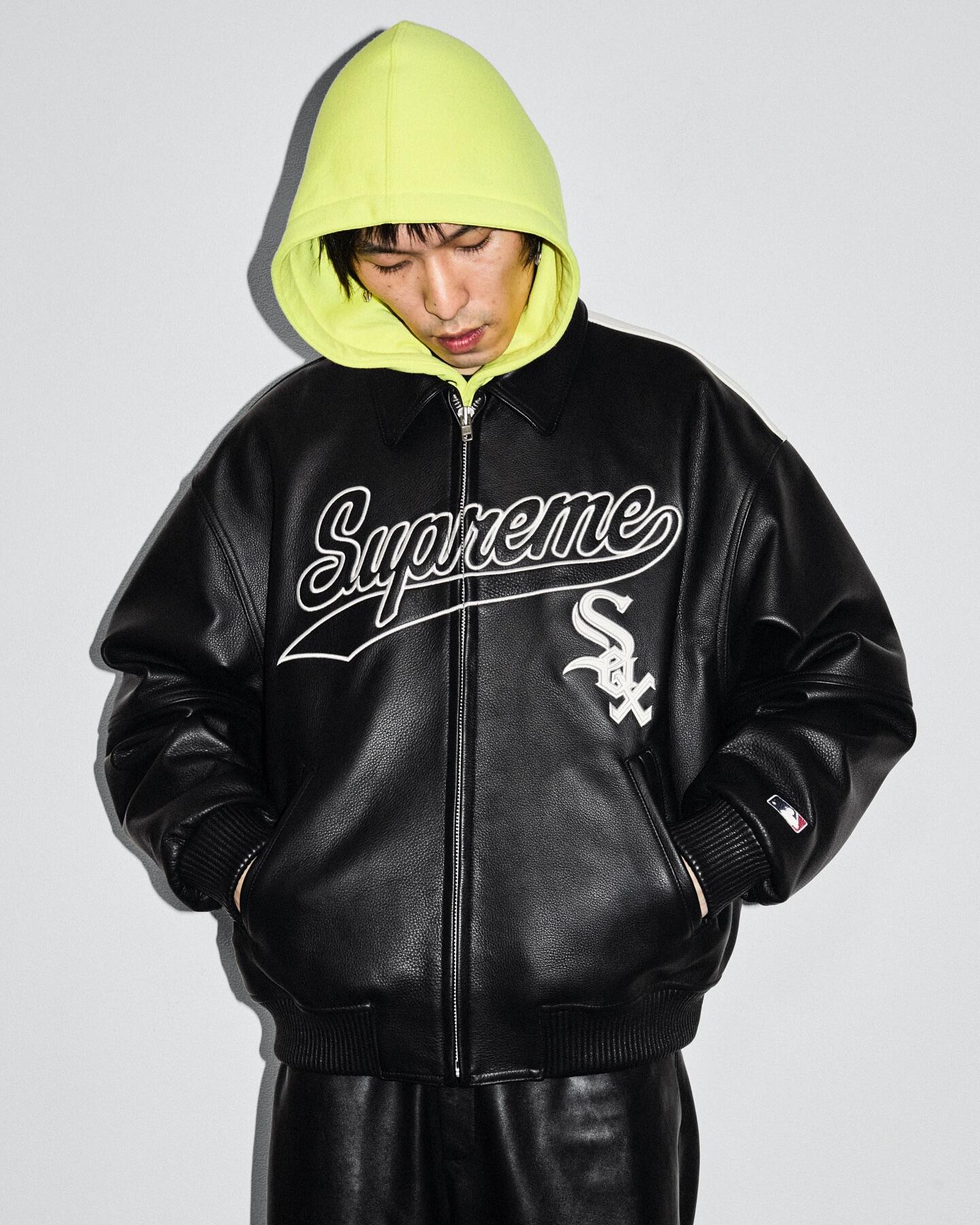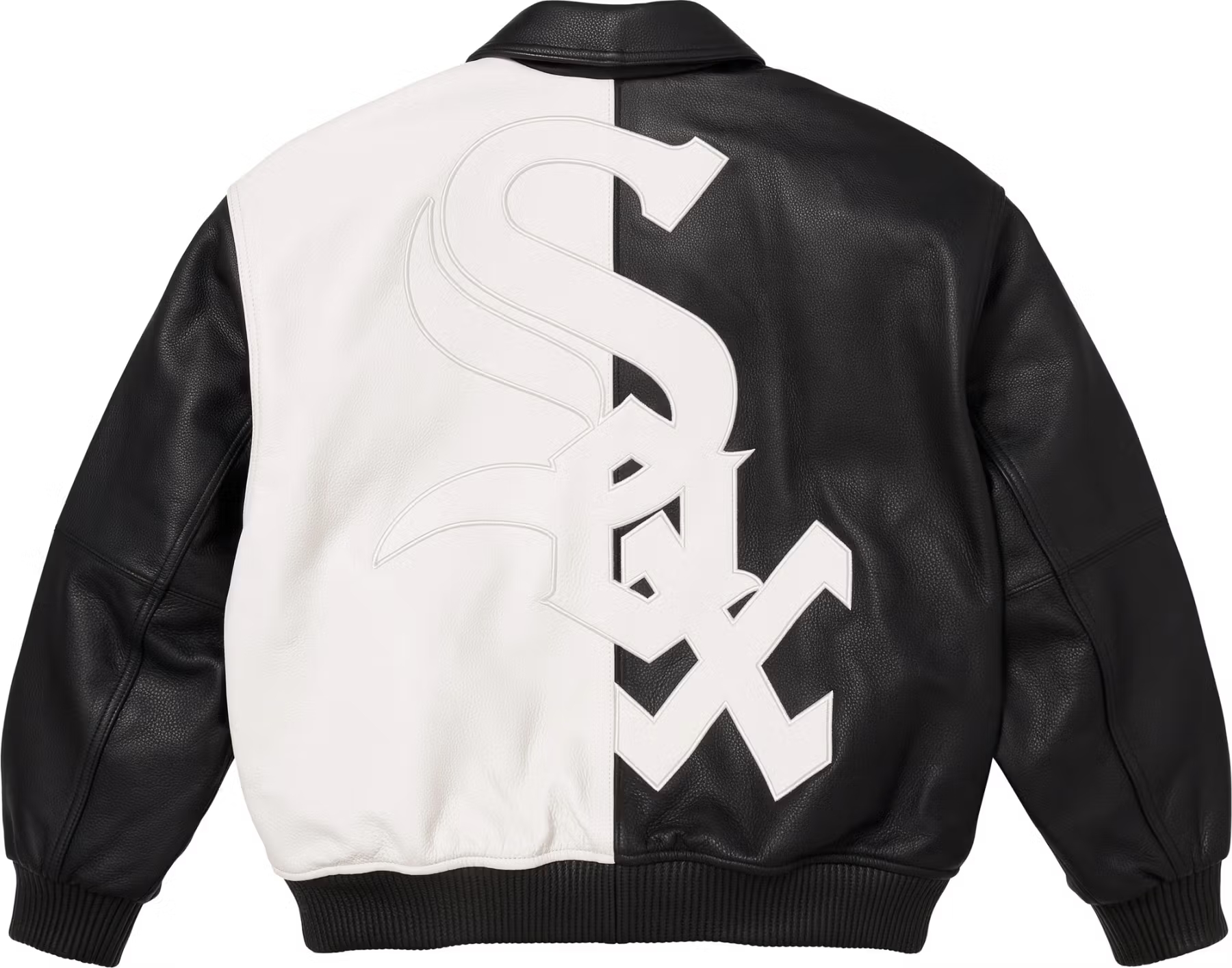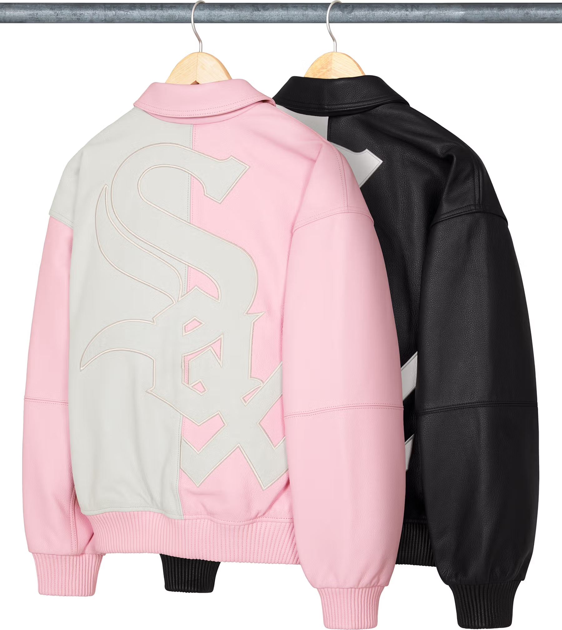 NIGO Supreme x Chicago White Sox FW25 WEEK5 Men's and Women's Leather Logo Patch Zipper Closure Varsity Jacket #nigo332978