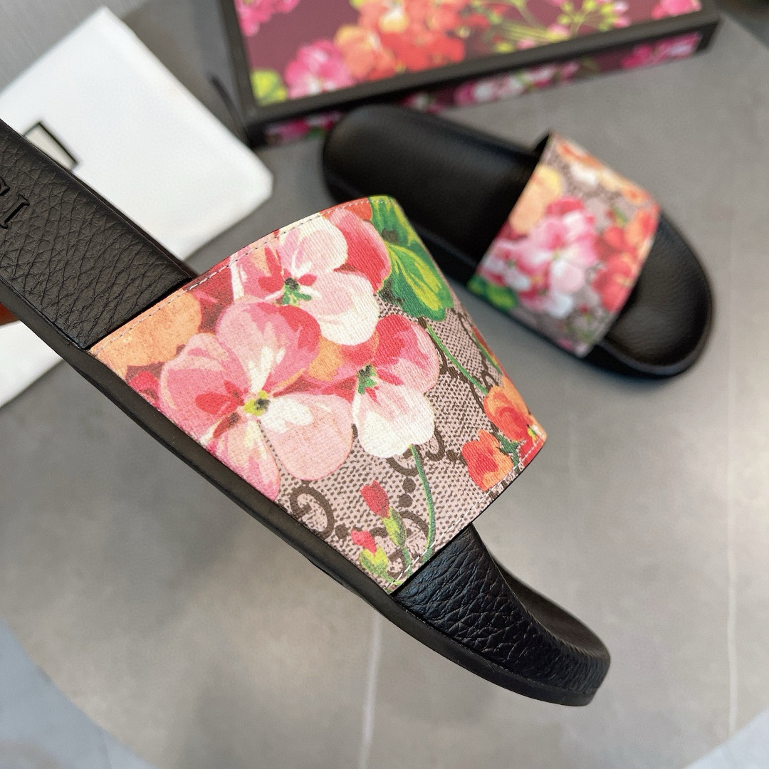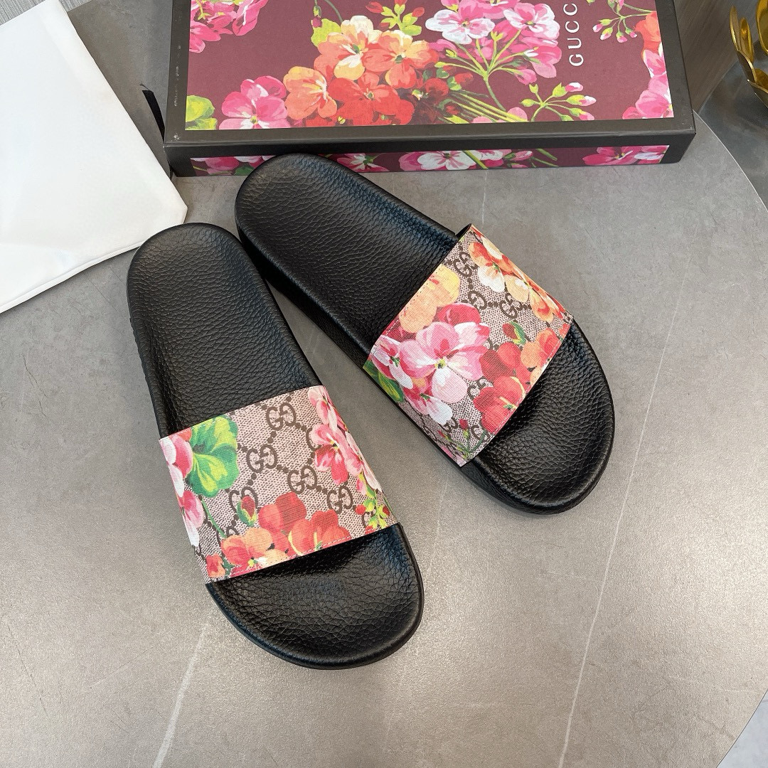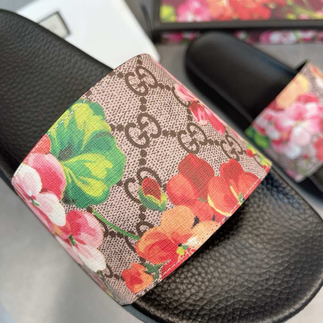 NIGO Gucci GG Blooms Supreme Floral Slide Women's Summer Floral Pattern Printed Leather Sandals Slippers Shoes #nigo97445