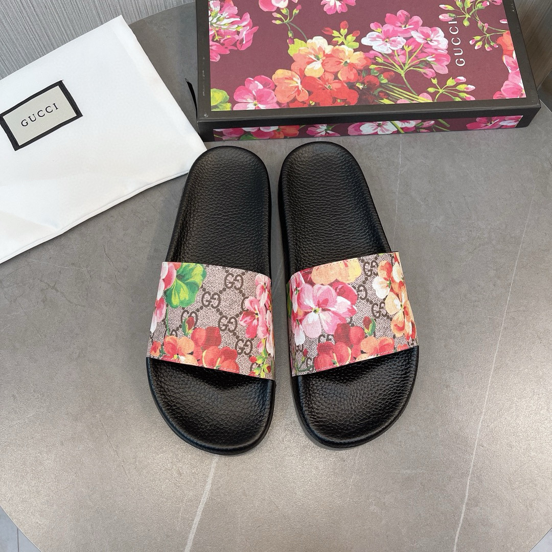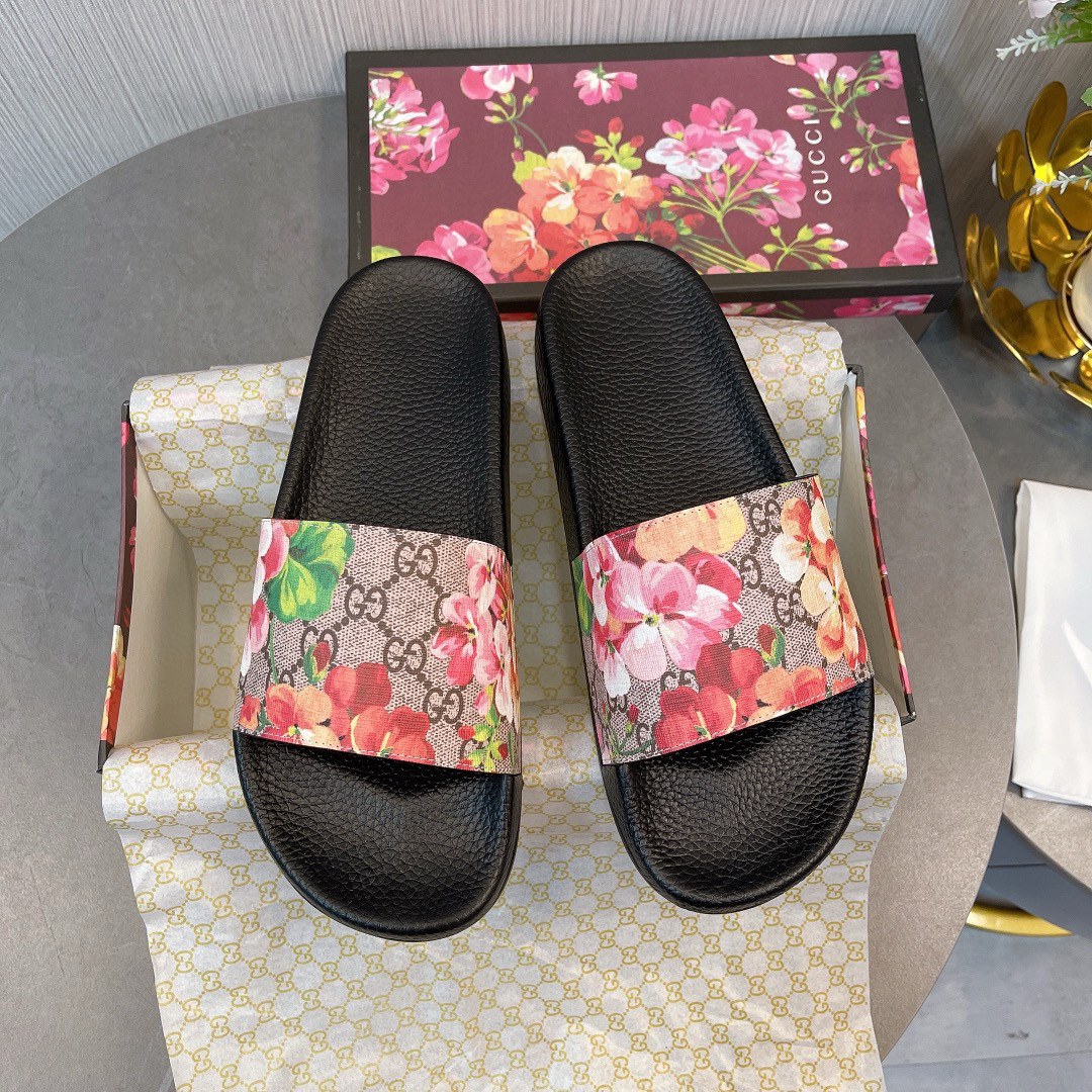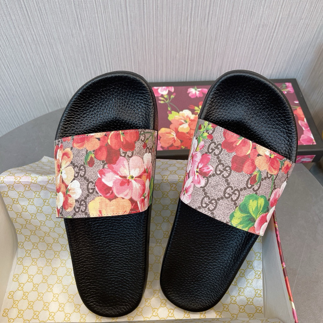 NIGO Gucci GG Blooms Supreme Floral Slide Women's Summer Floral Pattern Printed Leather Sandals Slippers Shoes #nigo97445