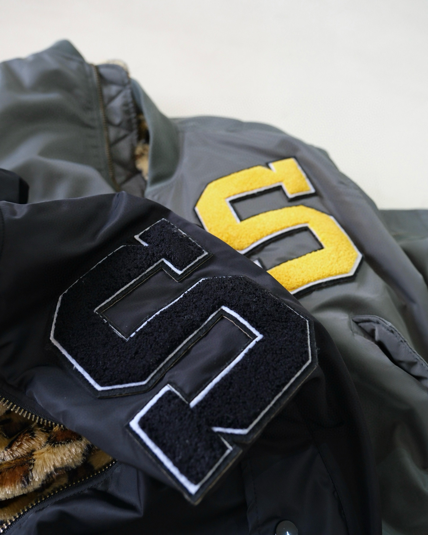 NIGO Supreme Men's Fall/Winter Fashion Casual High-Neck Zipper Leopard Print Faux Suede Nylon Fabric Air Force Jacket #nigo79527