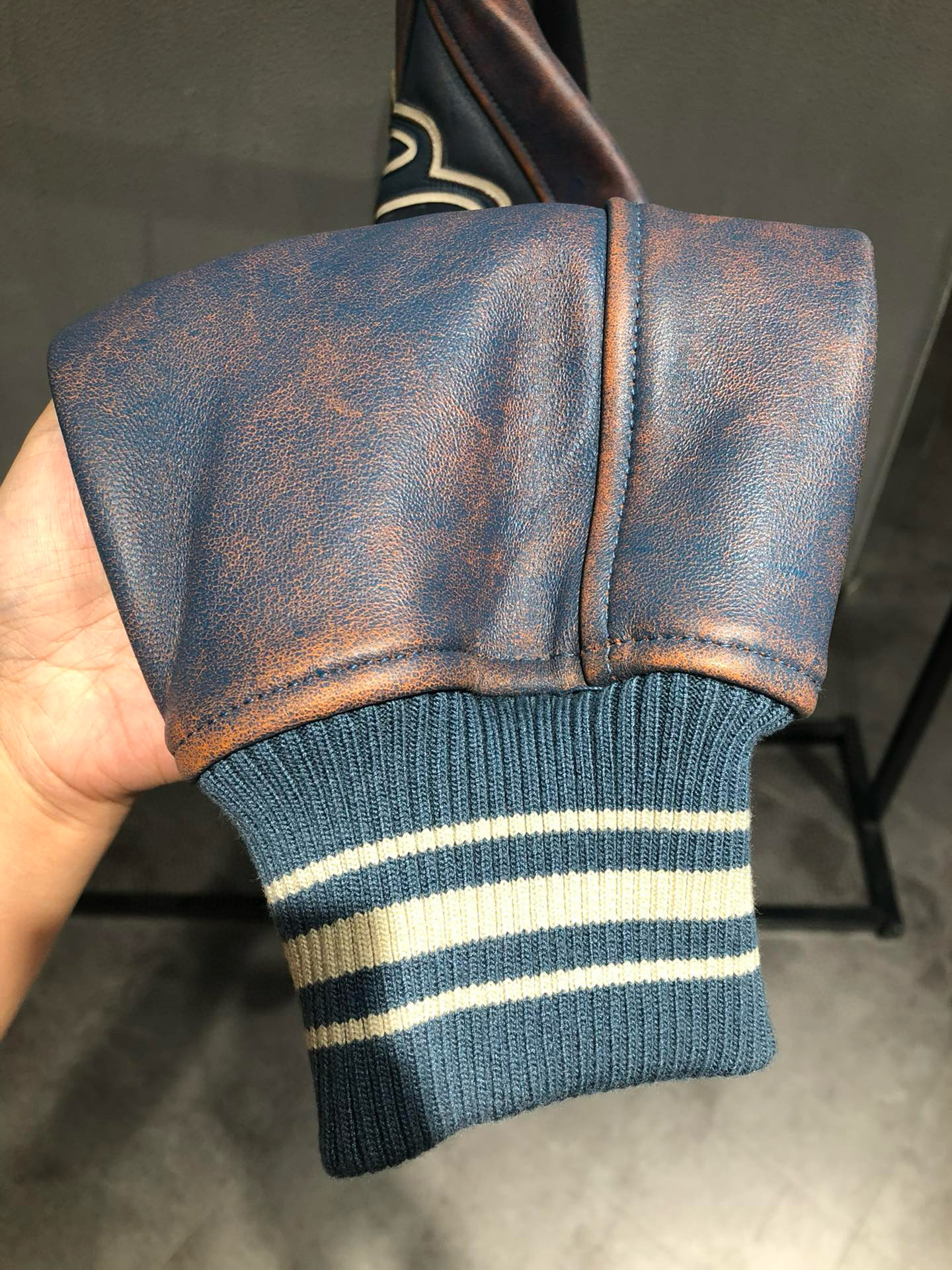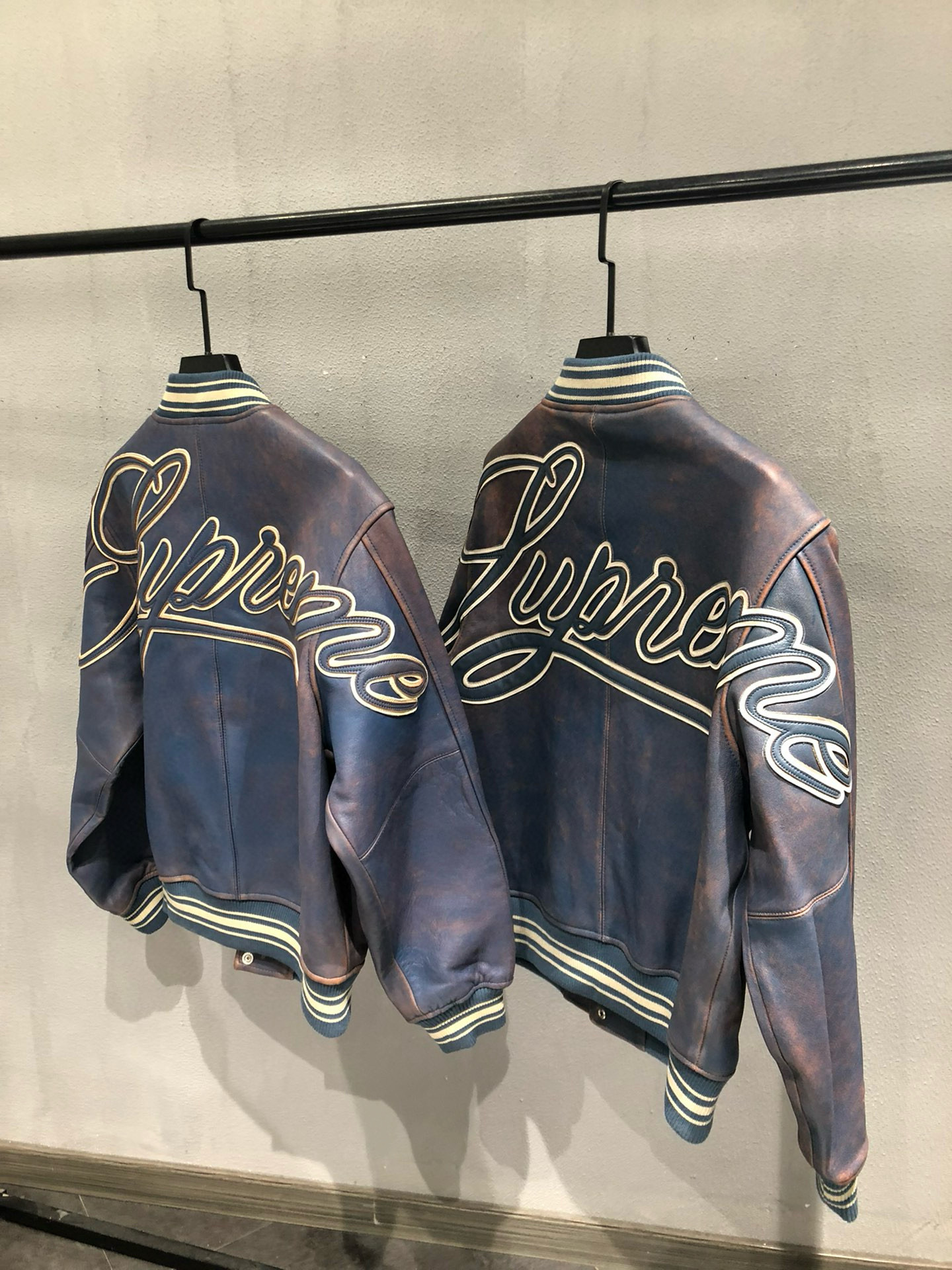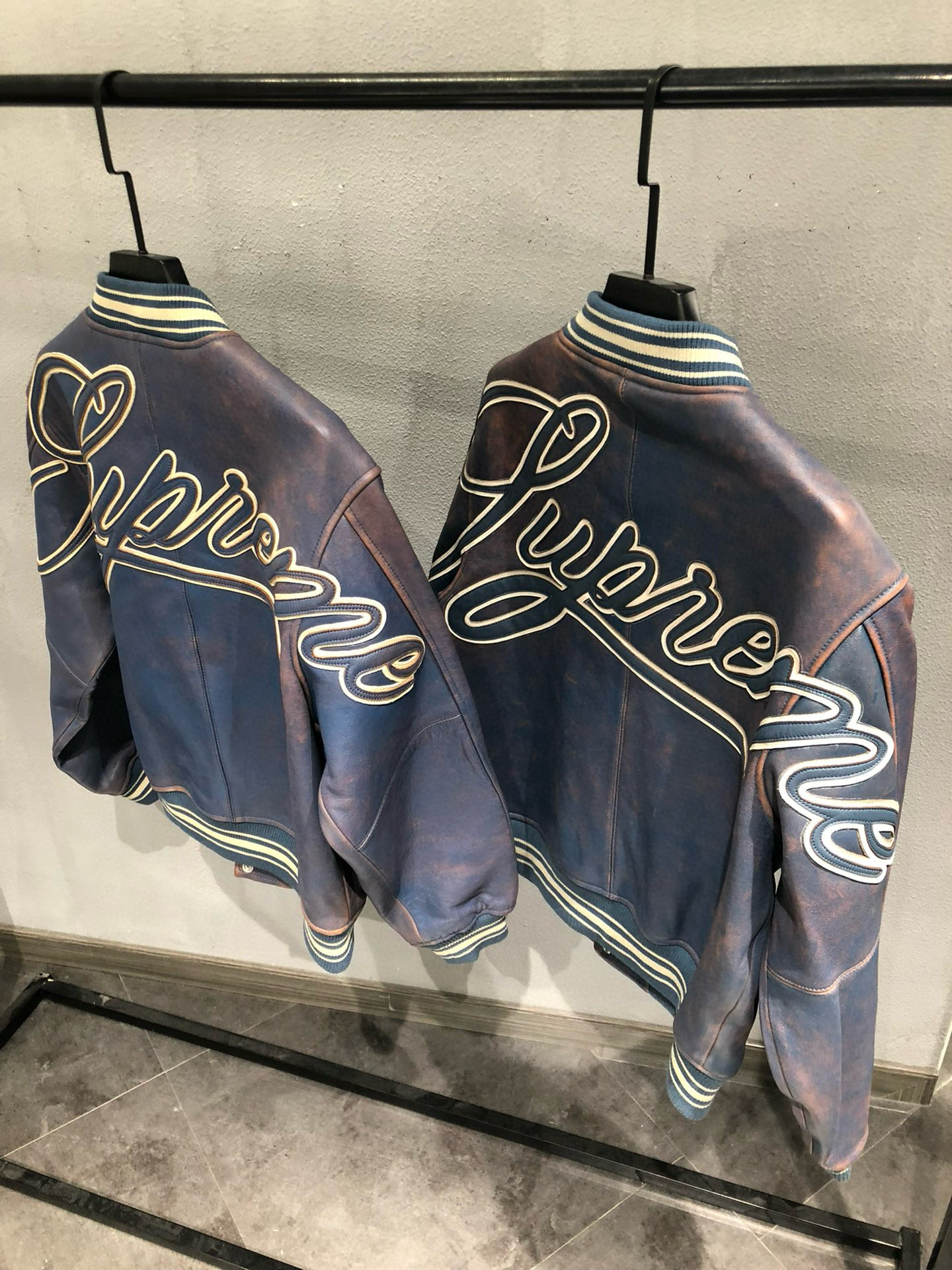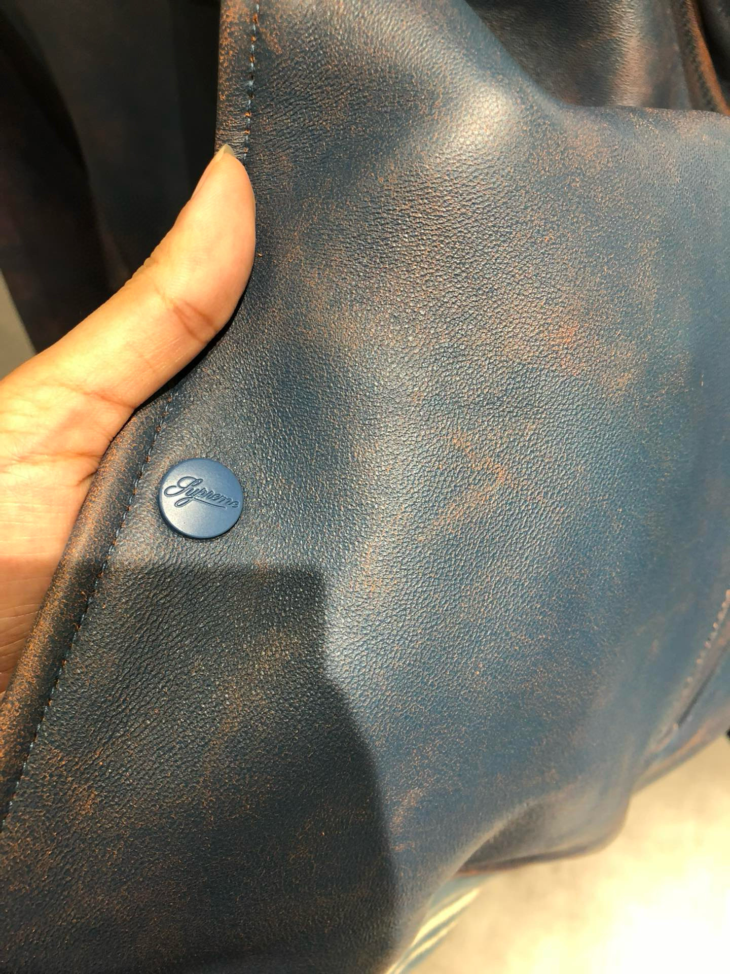 NIGO Supreme Men's Women's Spring And Autumn Blue Single Breasted Old Fashion Long Sleeve Loose Leather Jacket #nigo98716