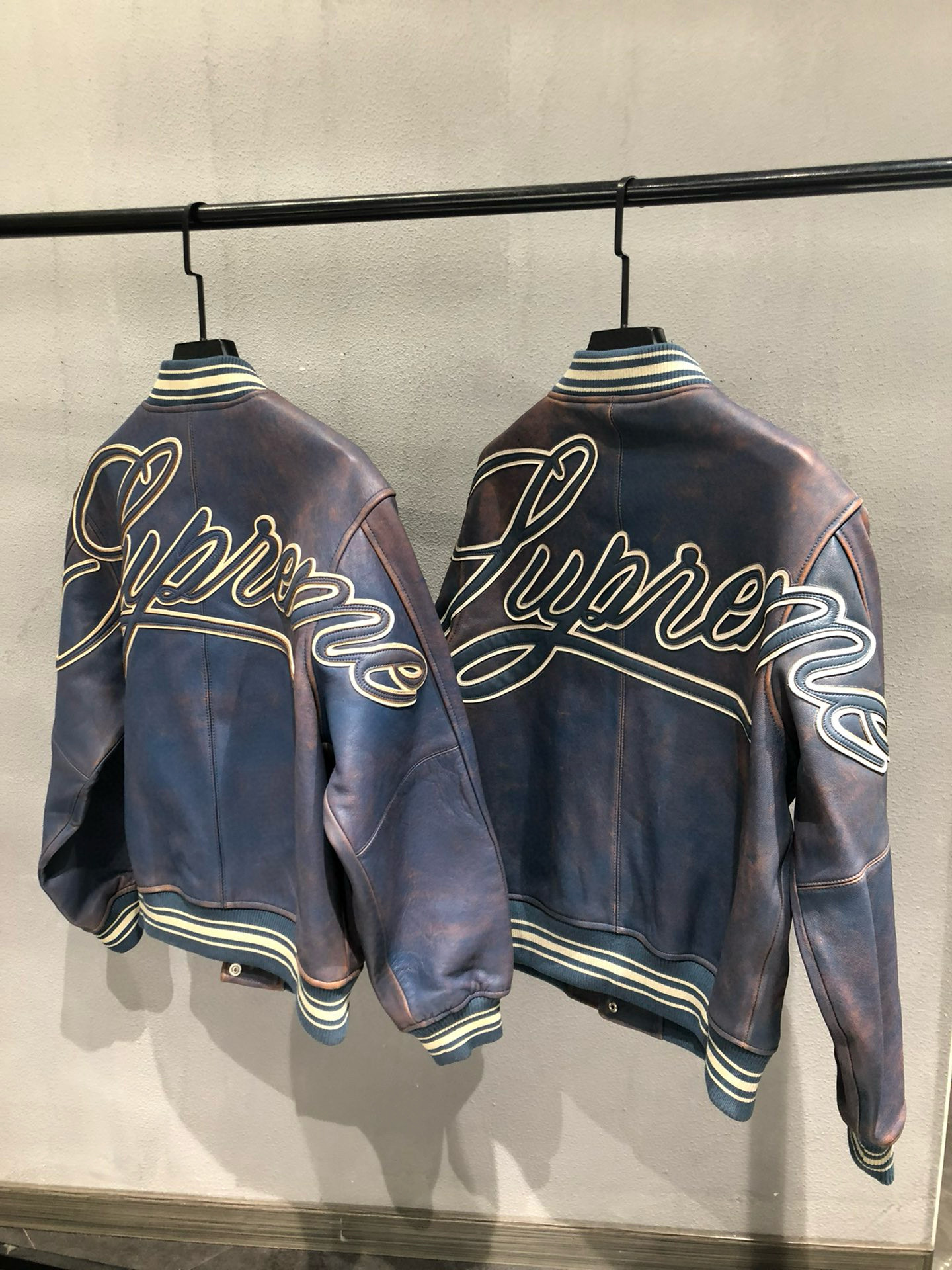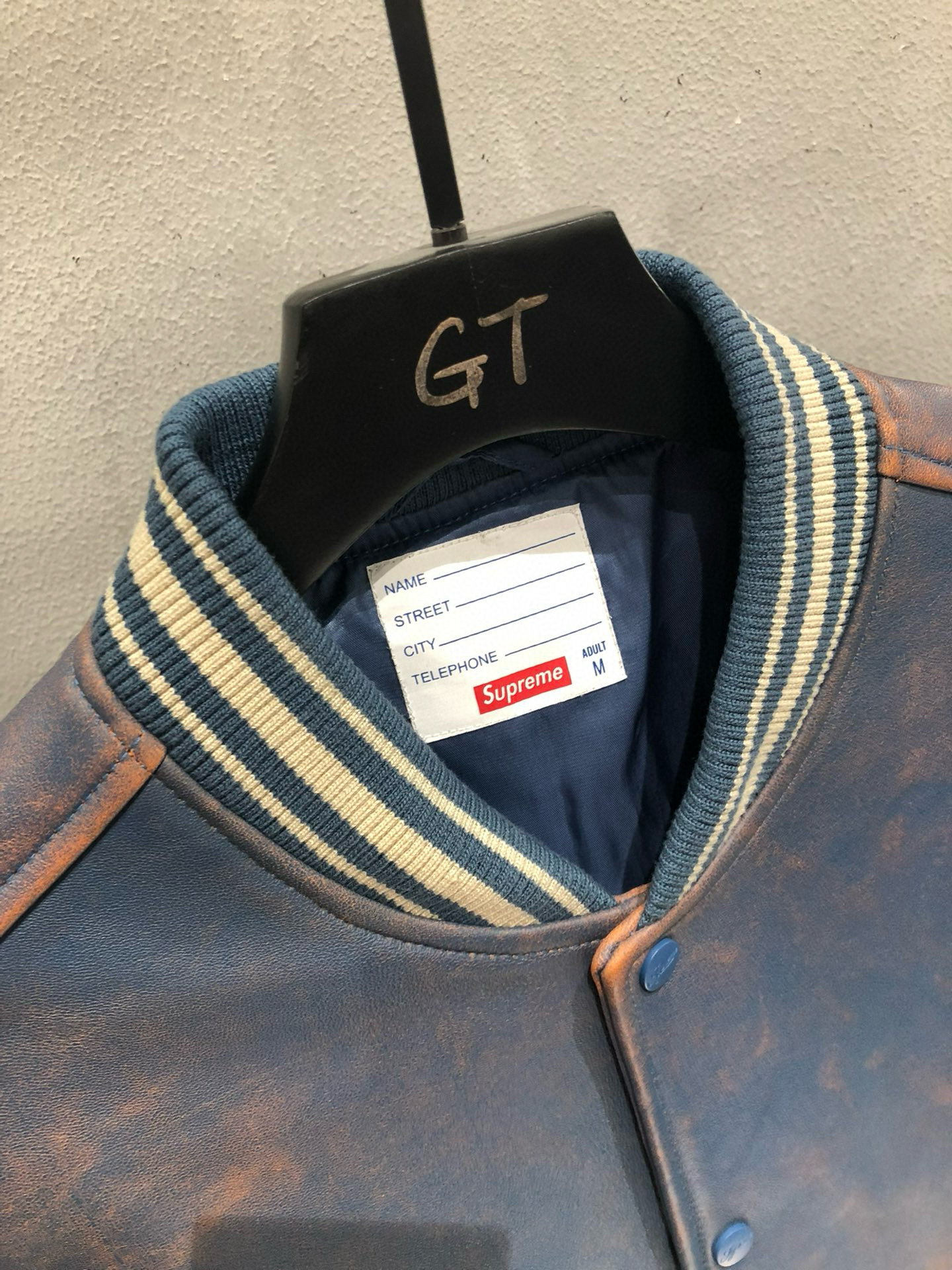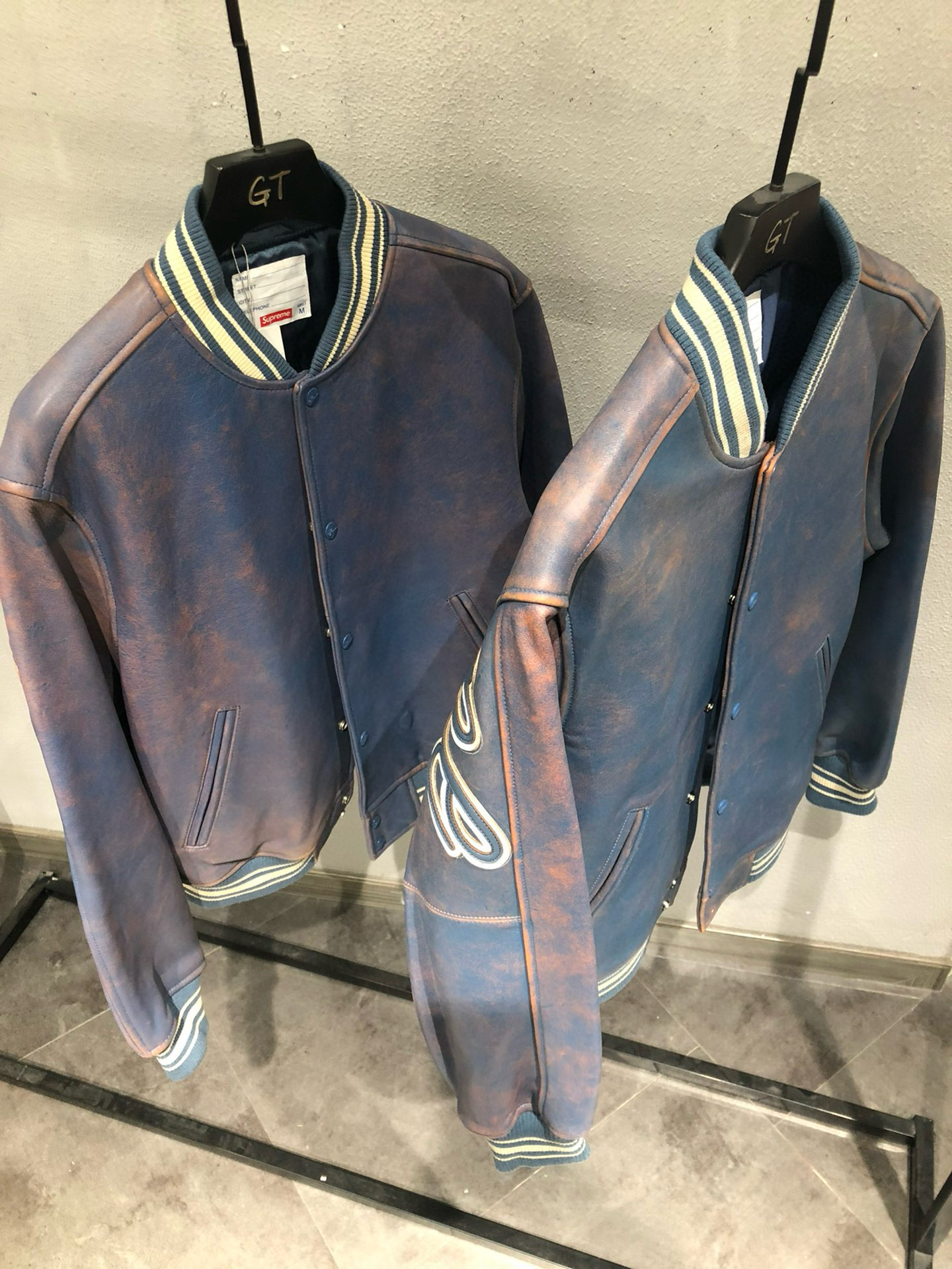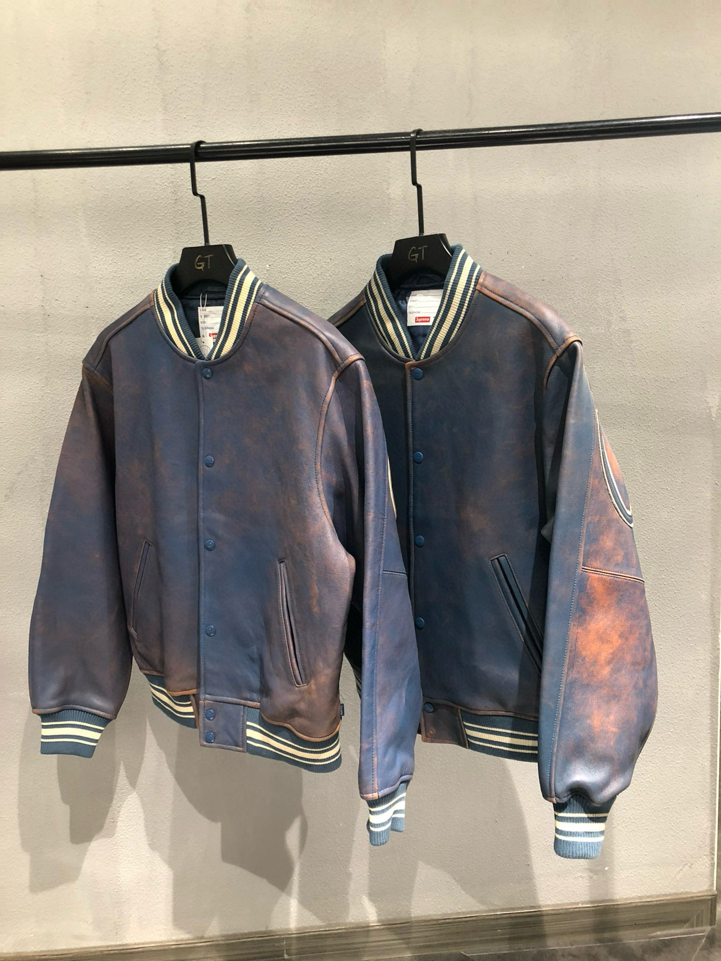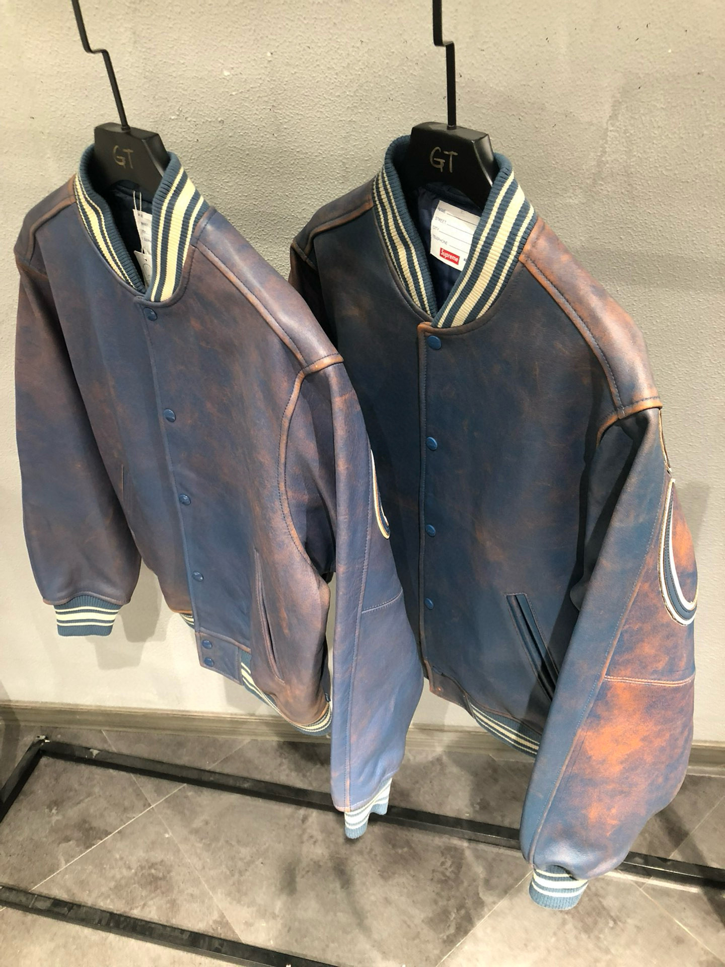 NIGO Supreme Men's Women's Spring And Autumn Blue Single Breasted Old Fashion Long Sleeve Loose Leather Jacket #nigo98716