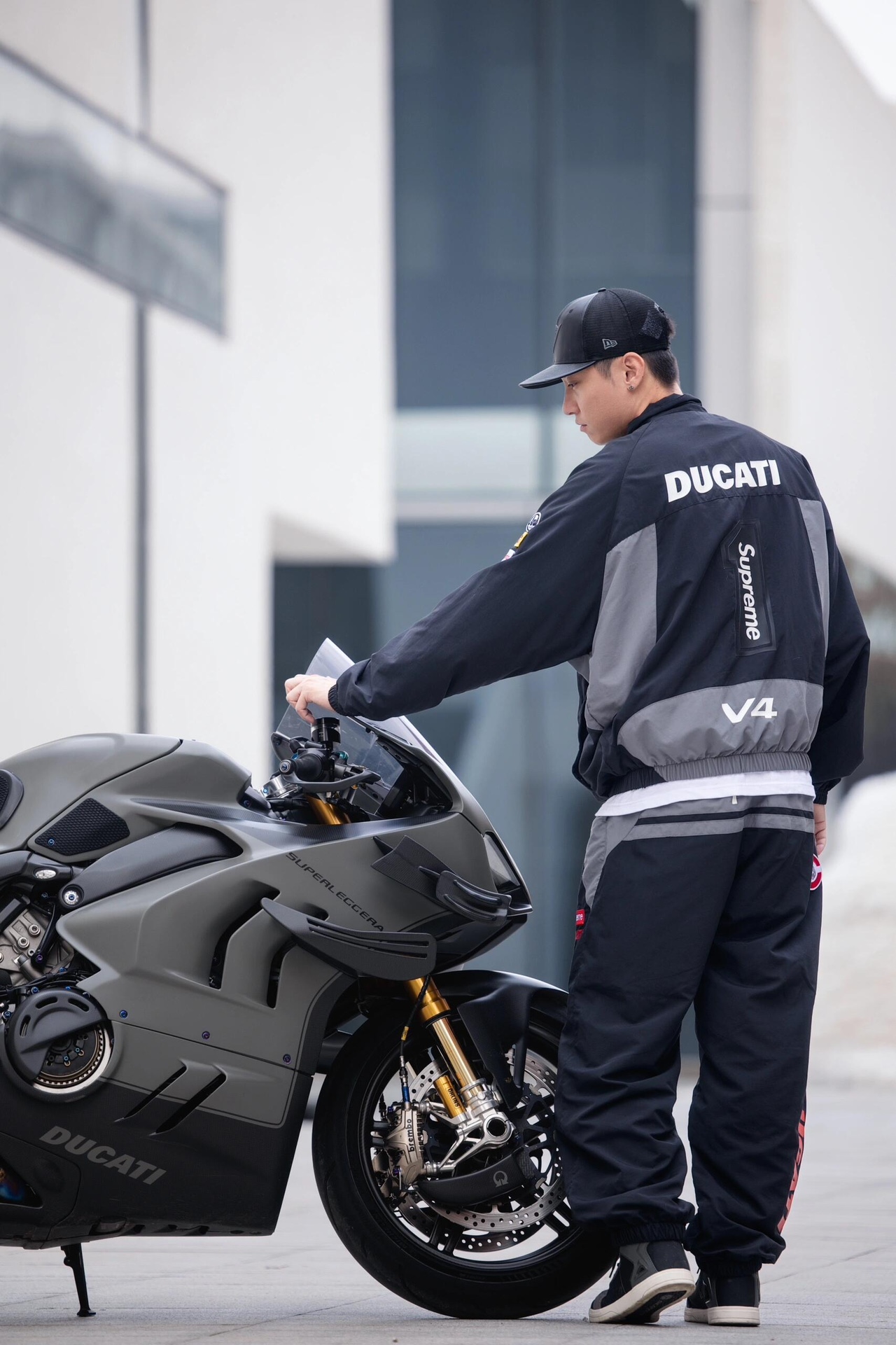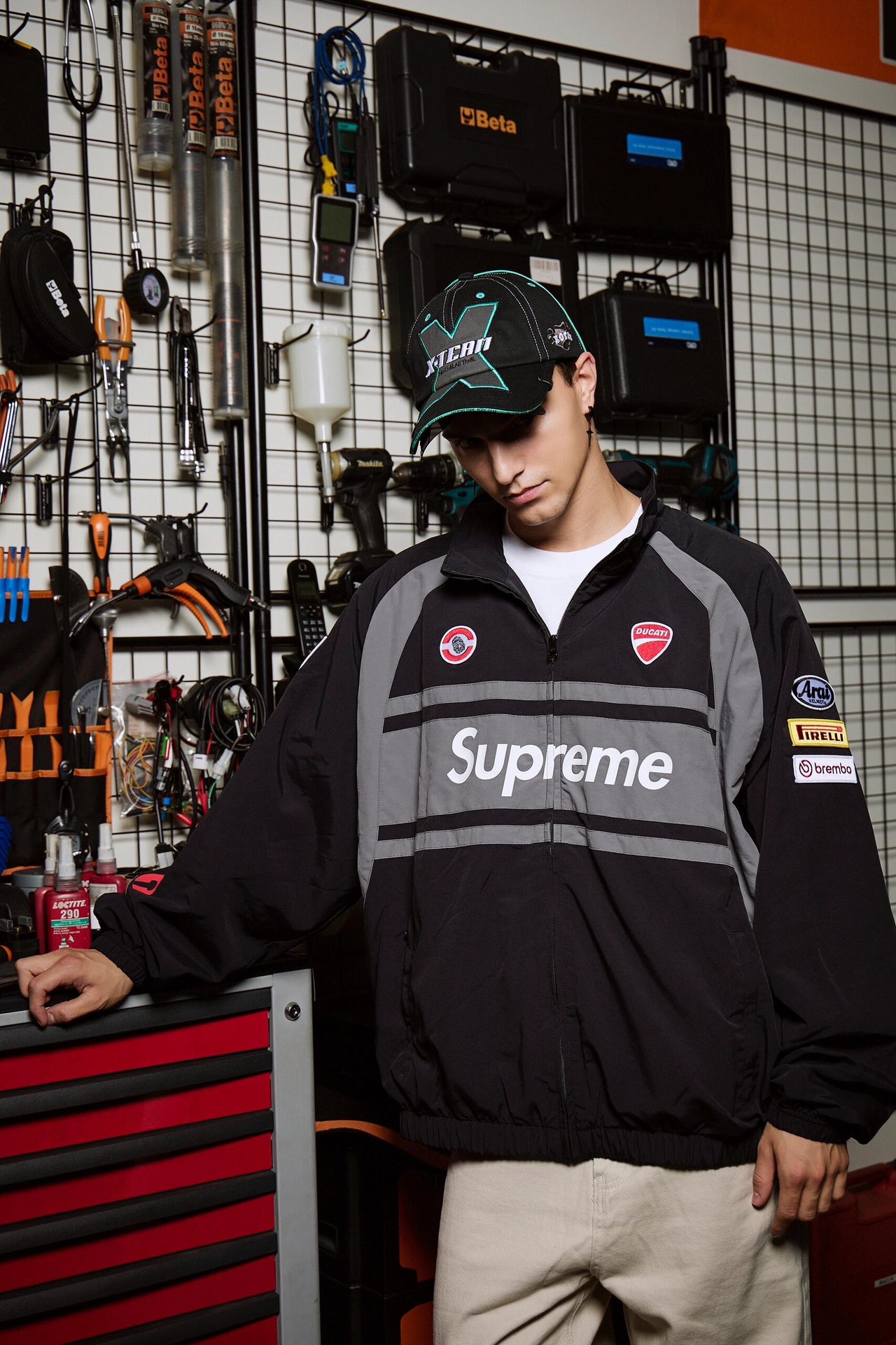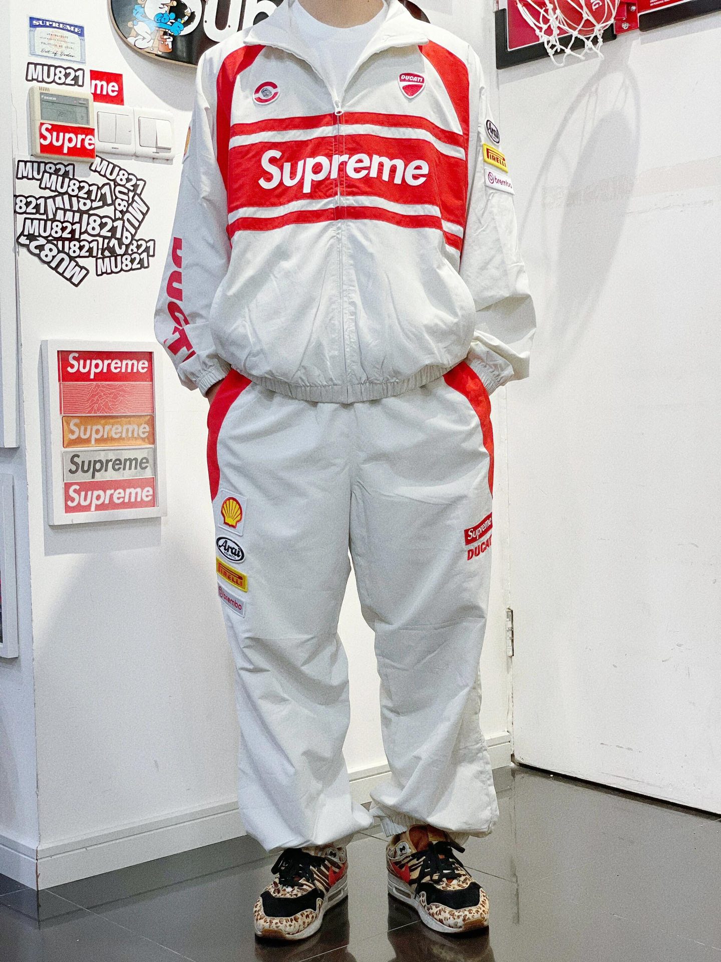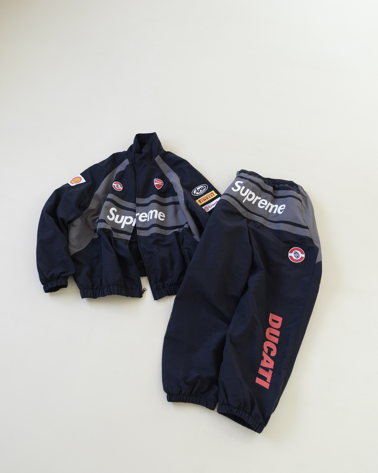 NIGO Supreme X Ducati Men's And Women's Elastic Hem Design Zipper Collar Long Sleeve Jacket Pants Set Suit #nigo73153