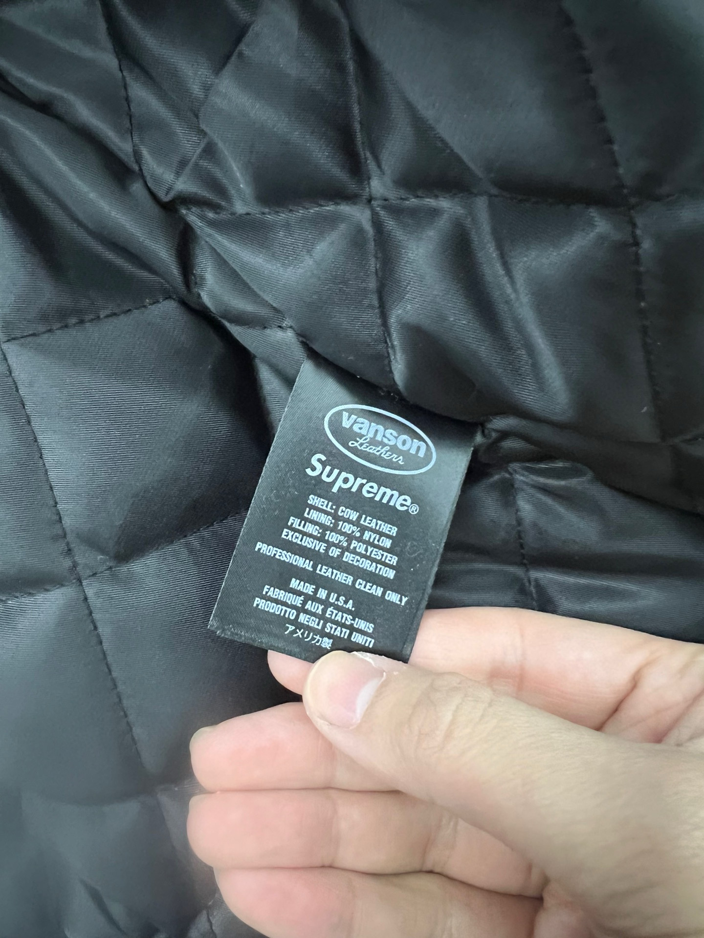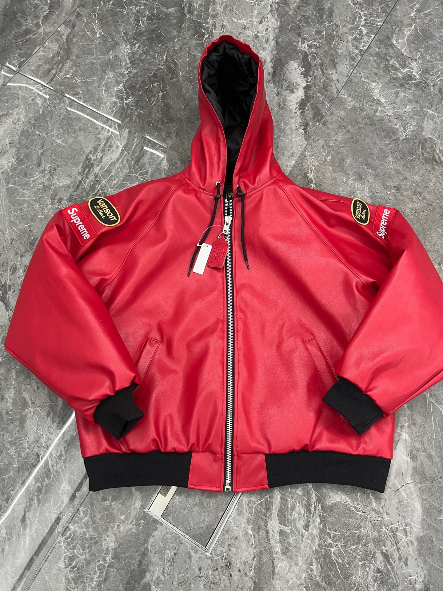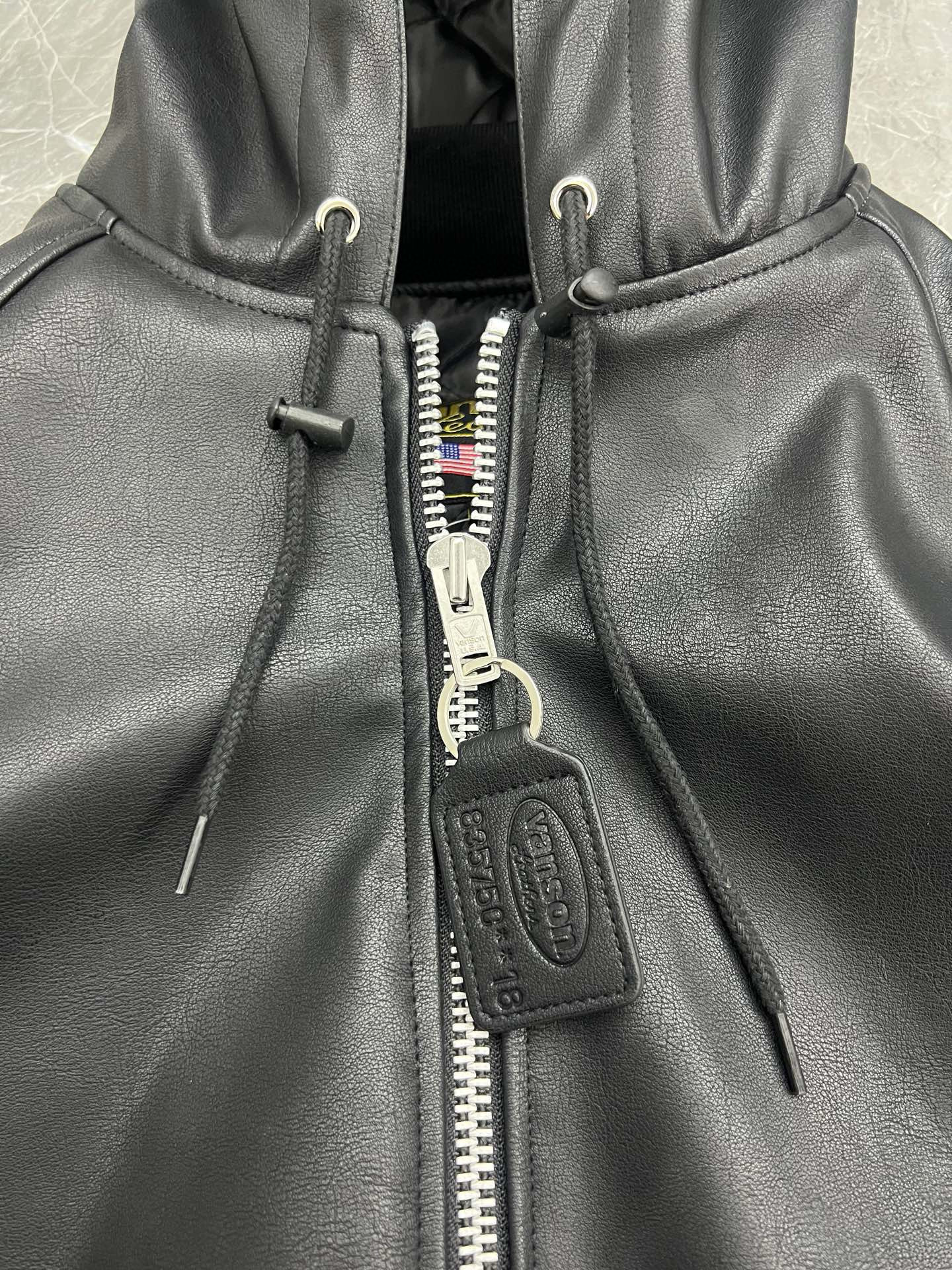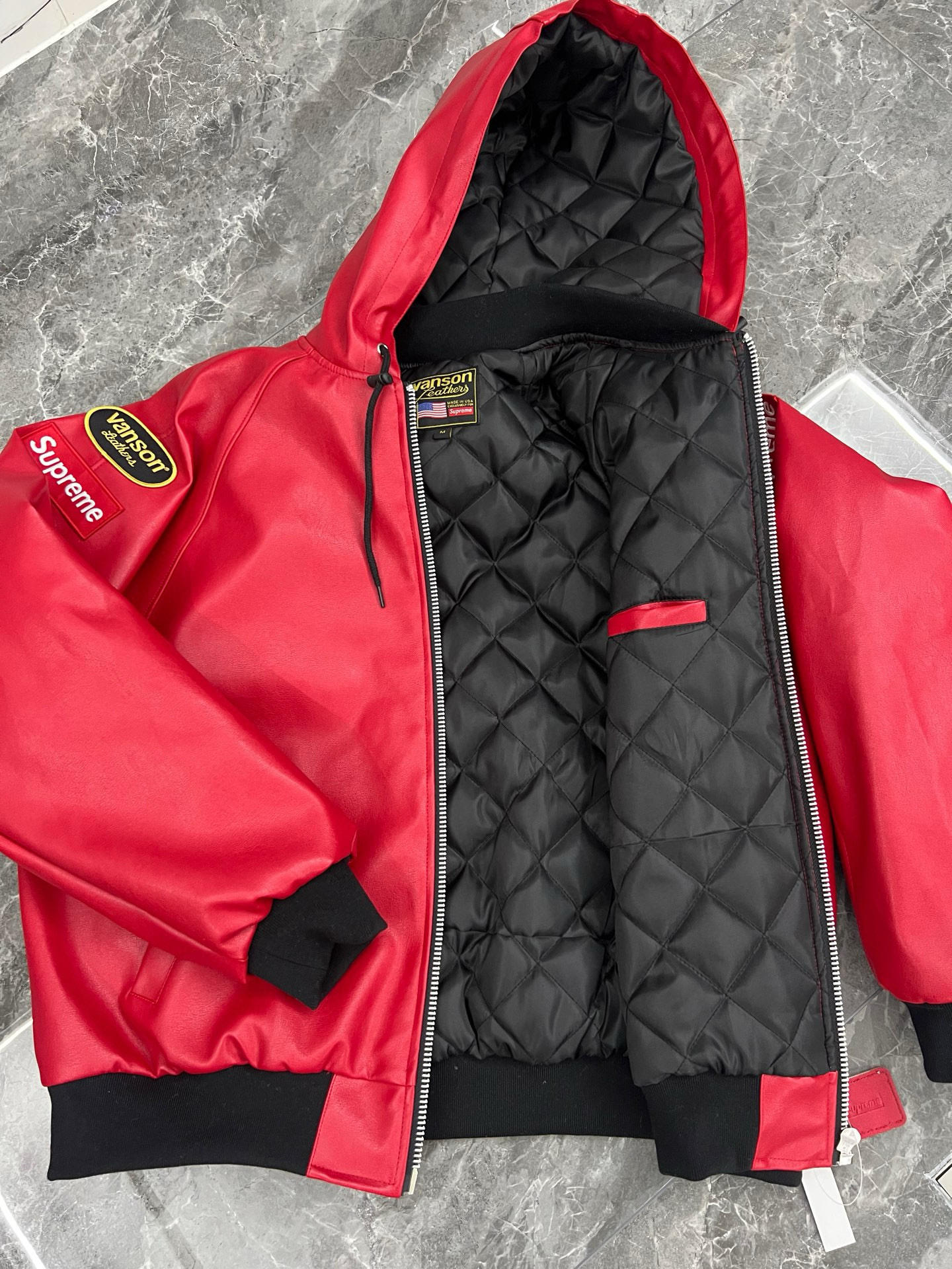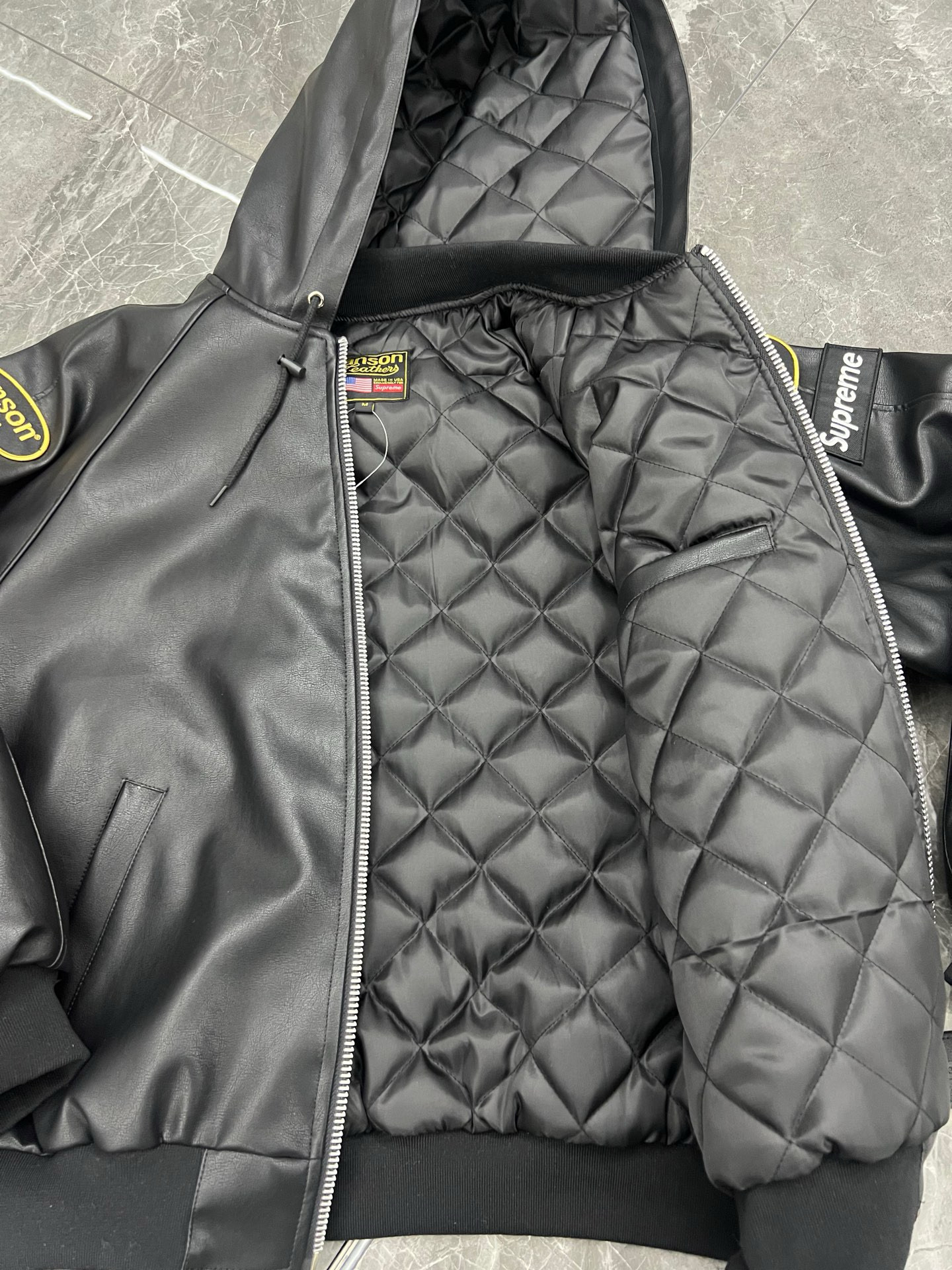 NIGO Supreme x Vanson Leathers Men's and Women's Spring and Fall Sleeve Logo Embroidered Patch Zipper Closure Hooded Leather Jacket #nigo75186