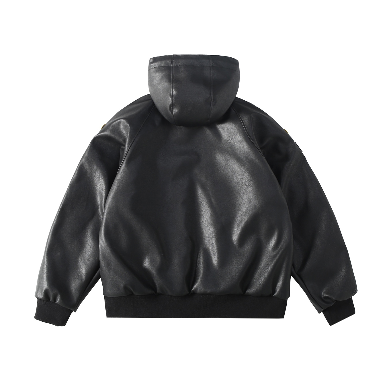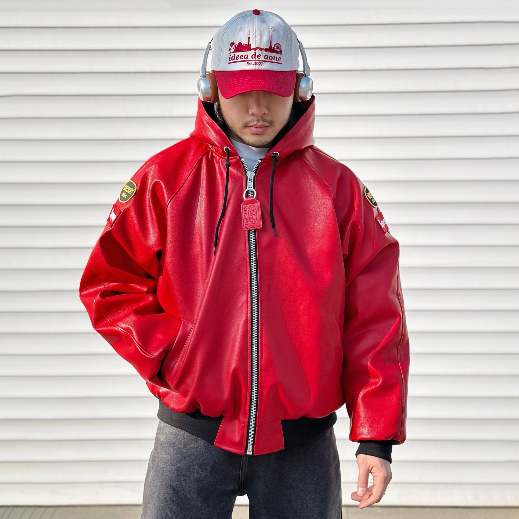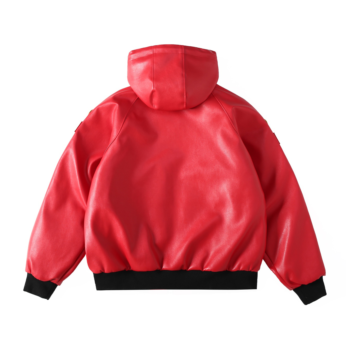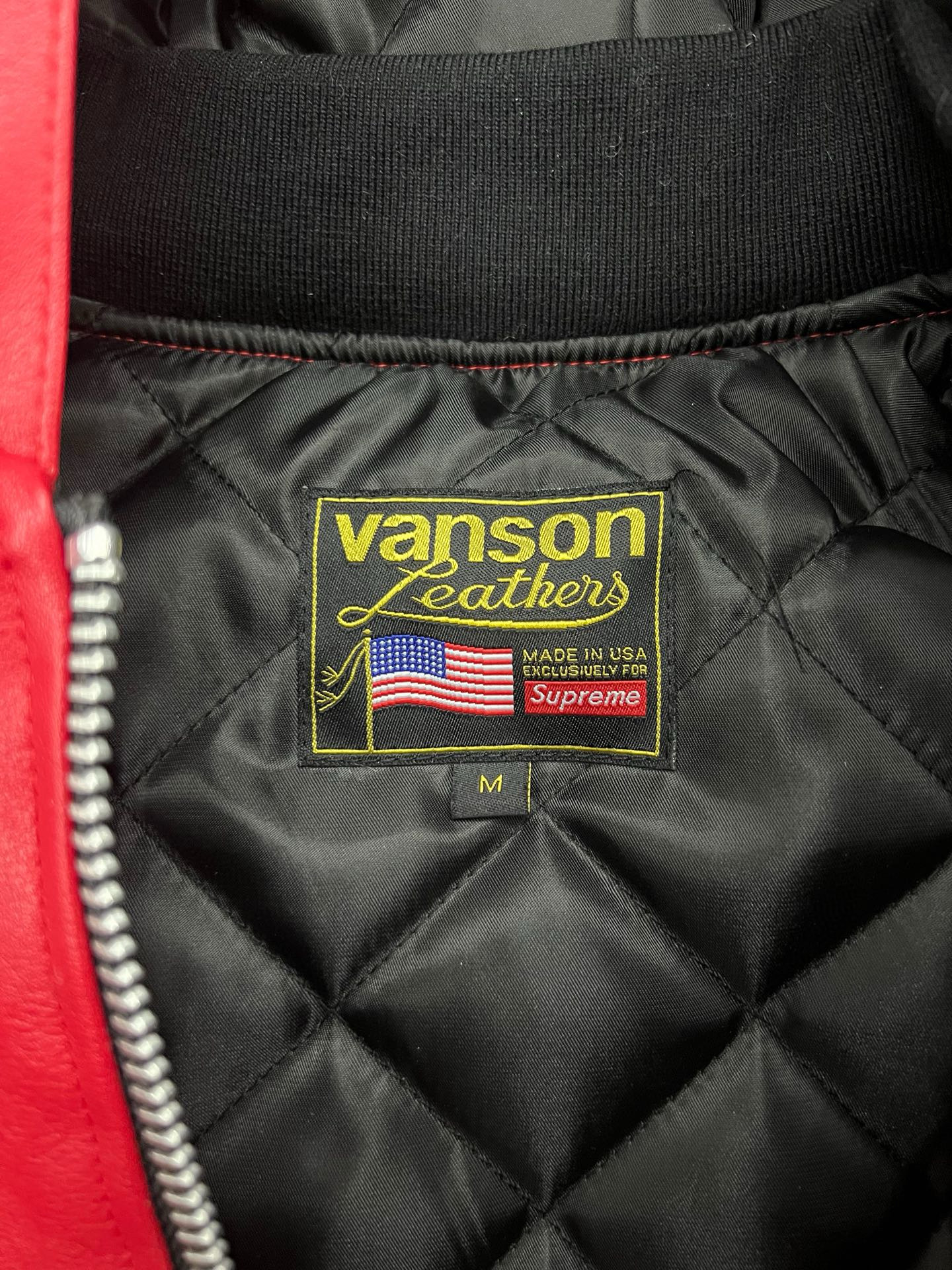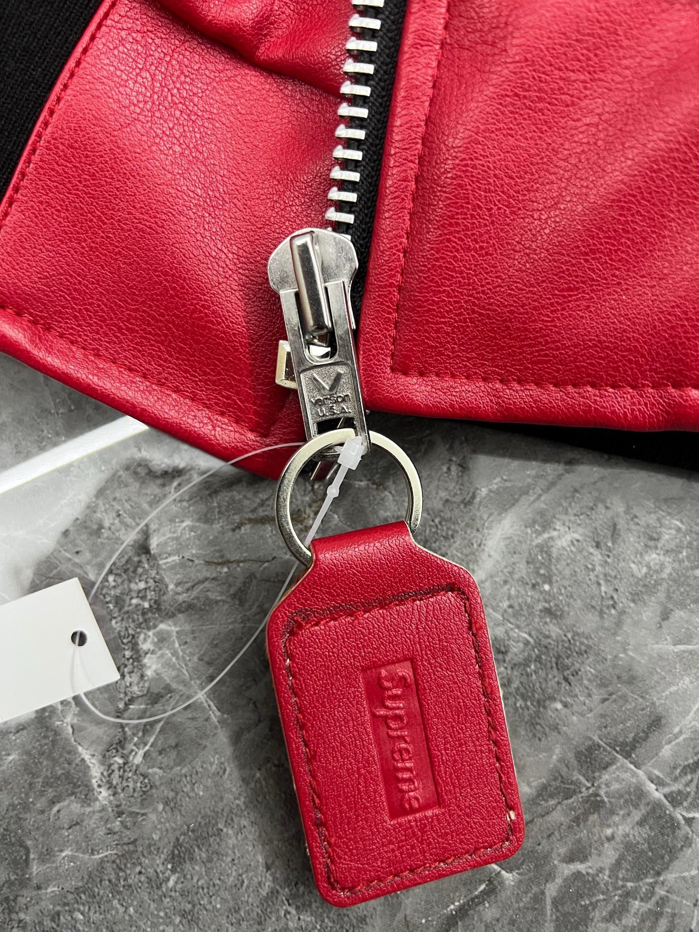 NIGO Supreme x Vanson Leathers Men's and Women's Spring and Fall Sleeve Logo Embroidered Patch Zipper Closure Hooded Leather Jacket #nigo75186