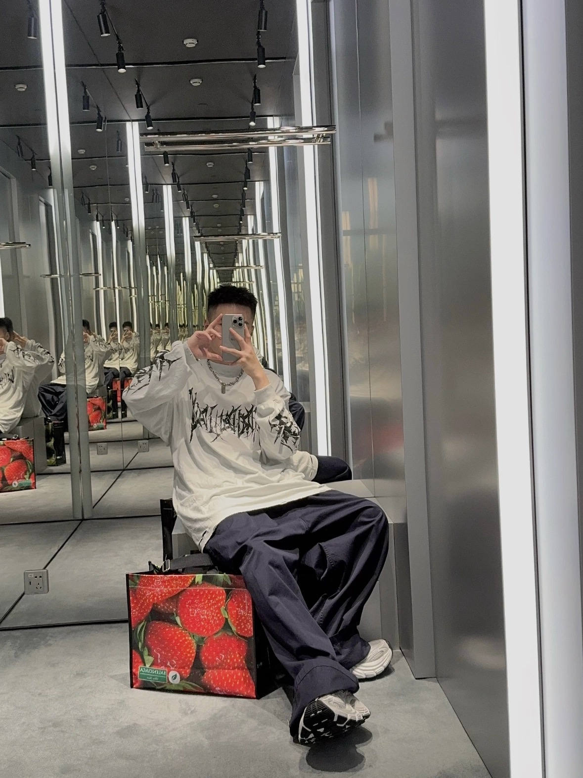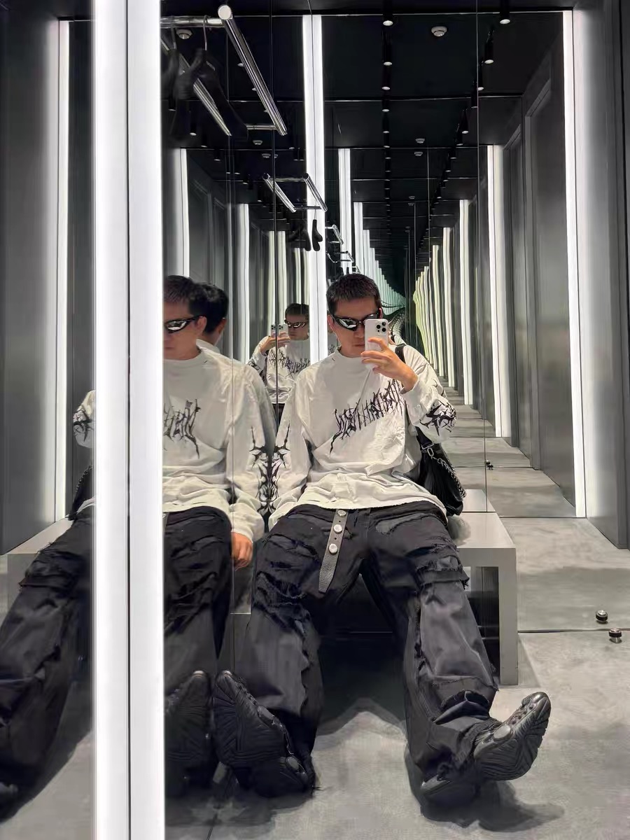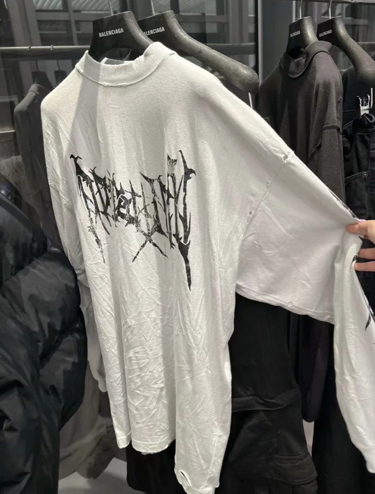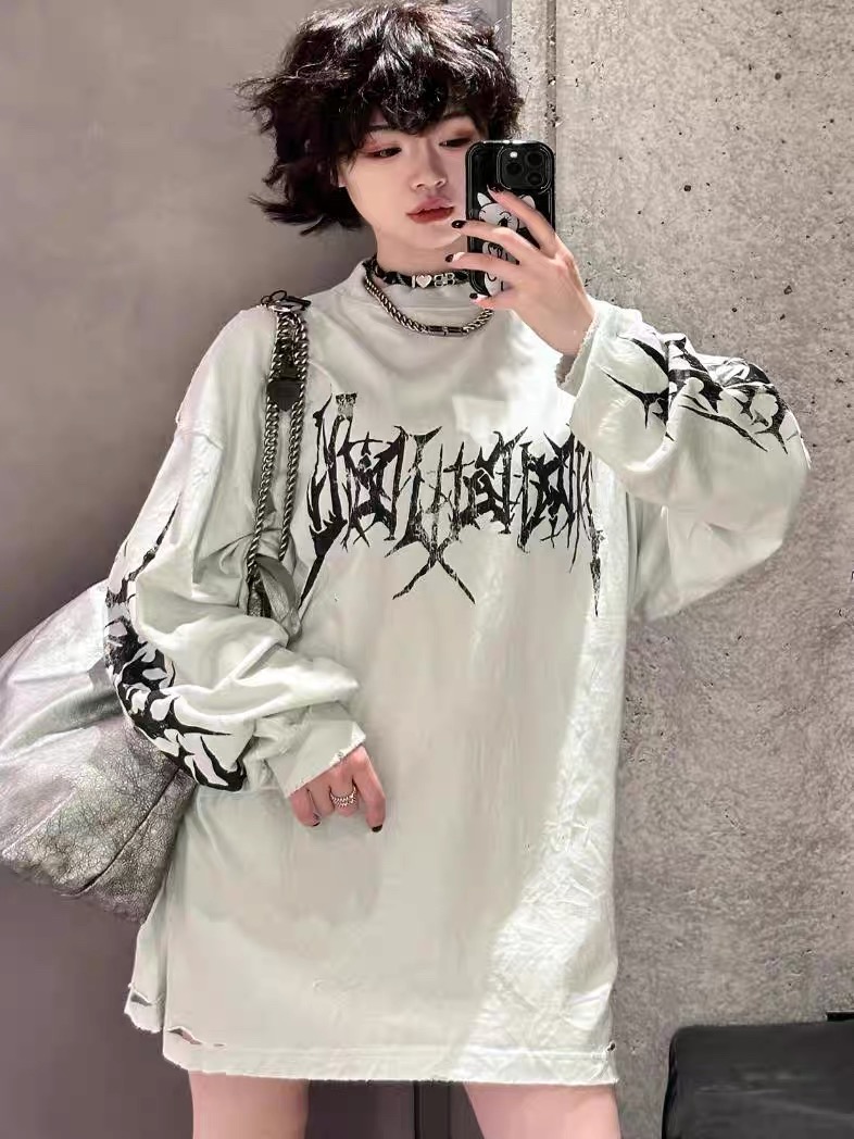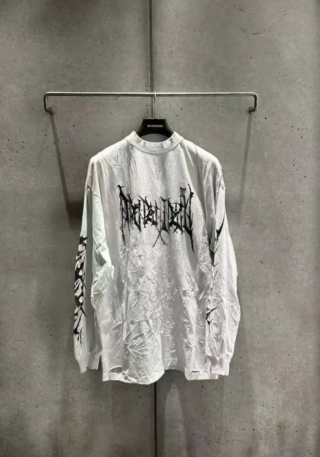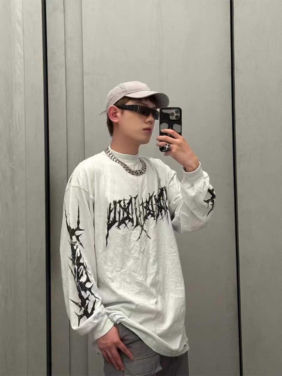 NIGO Balenciaga Men's Spring And Autumn Washed High Street Casual Pattern Printed White Loose Cotton Long Sleeve T-Shirt Ngvp #nigo9473