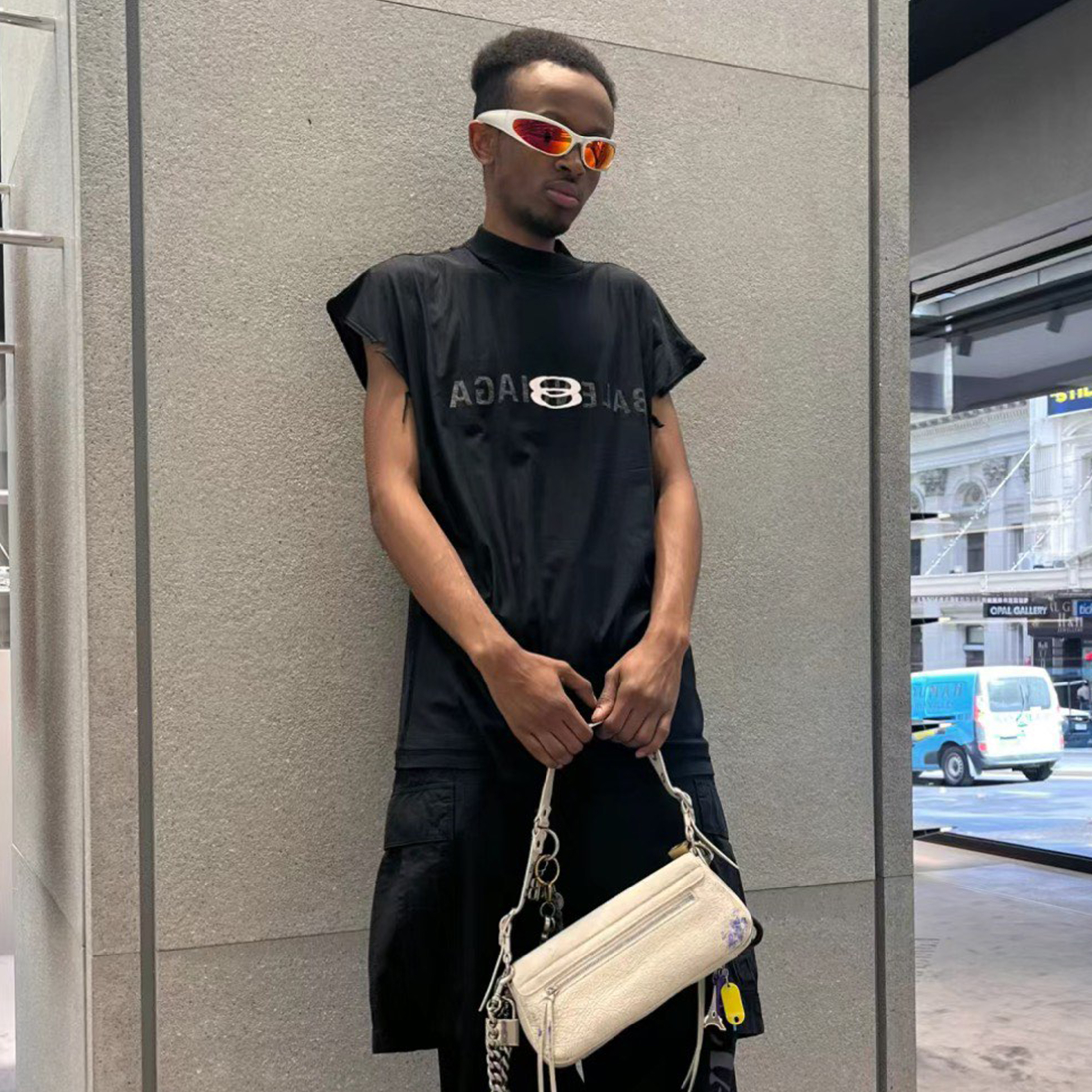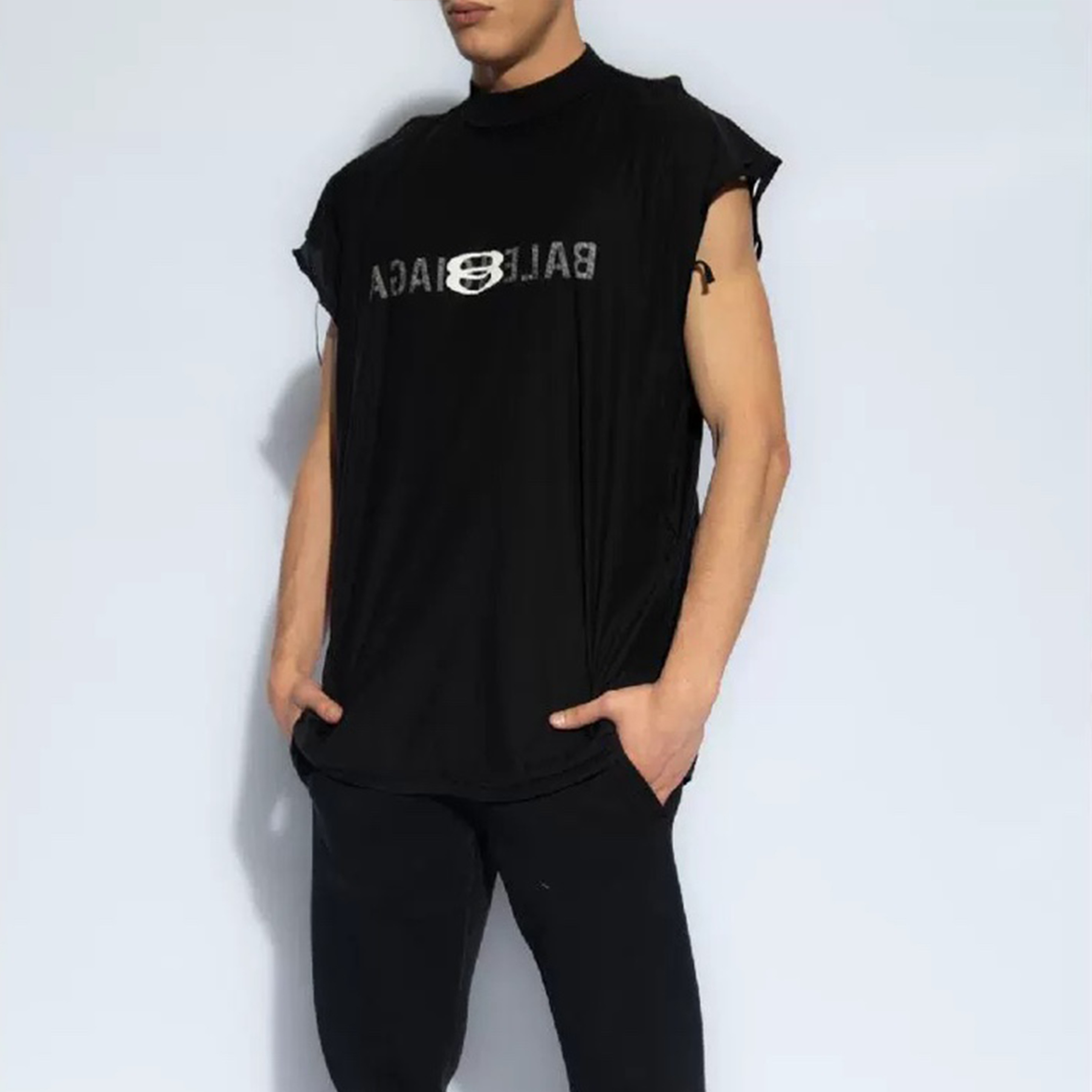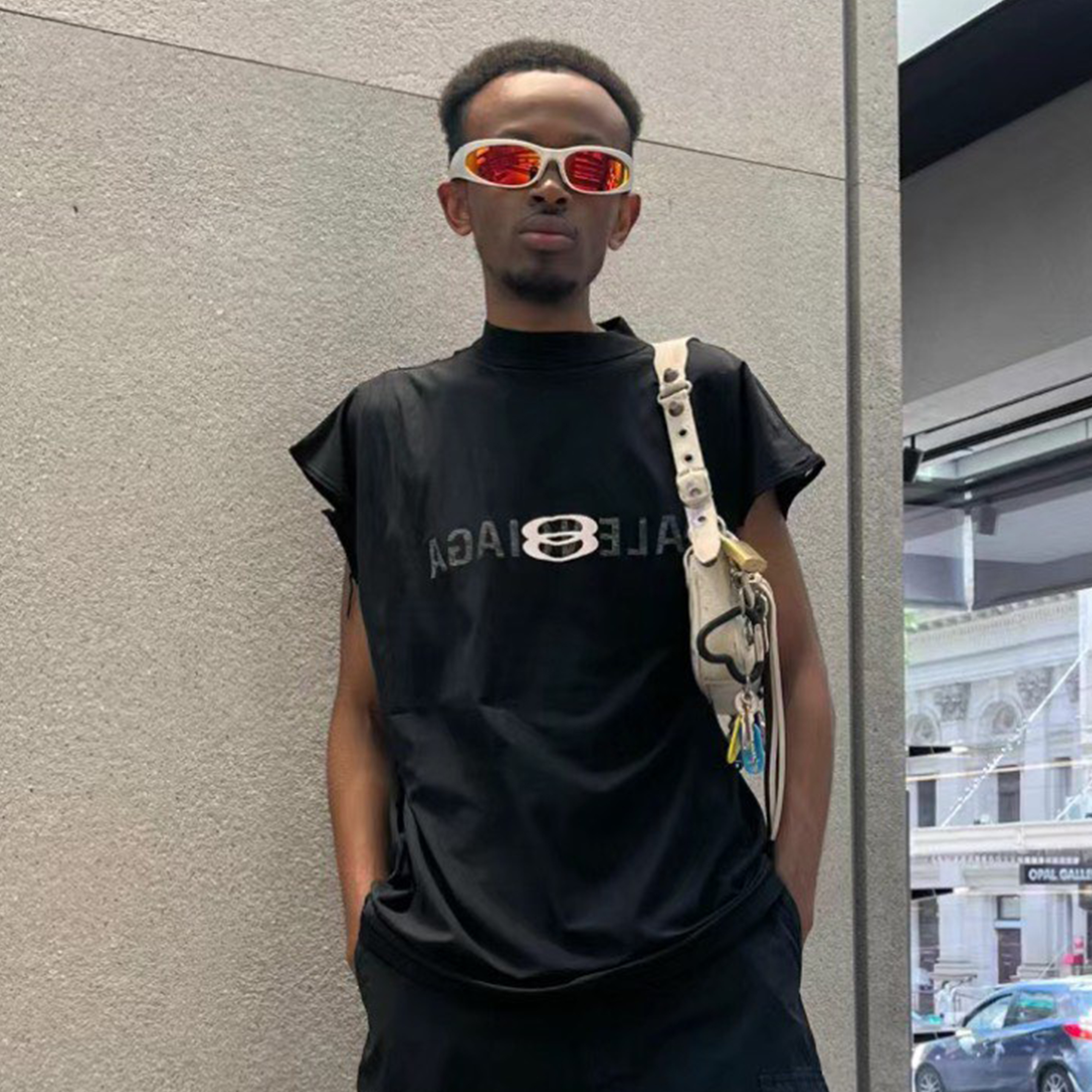 NIGO Balenciaga Men's Spring And Summer Fashion High Street Letters Logo Black Short-sleeved Top Retro Old Trend T-shirt #nigo71211