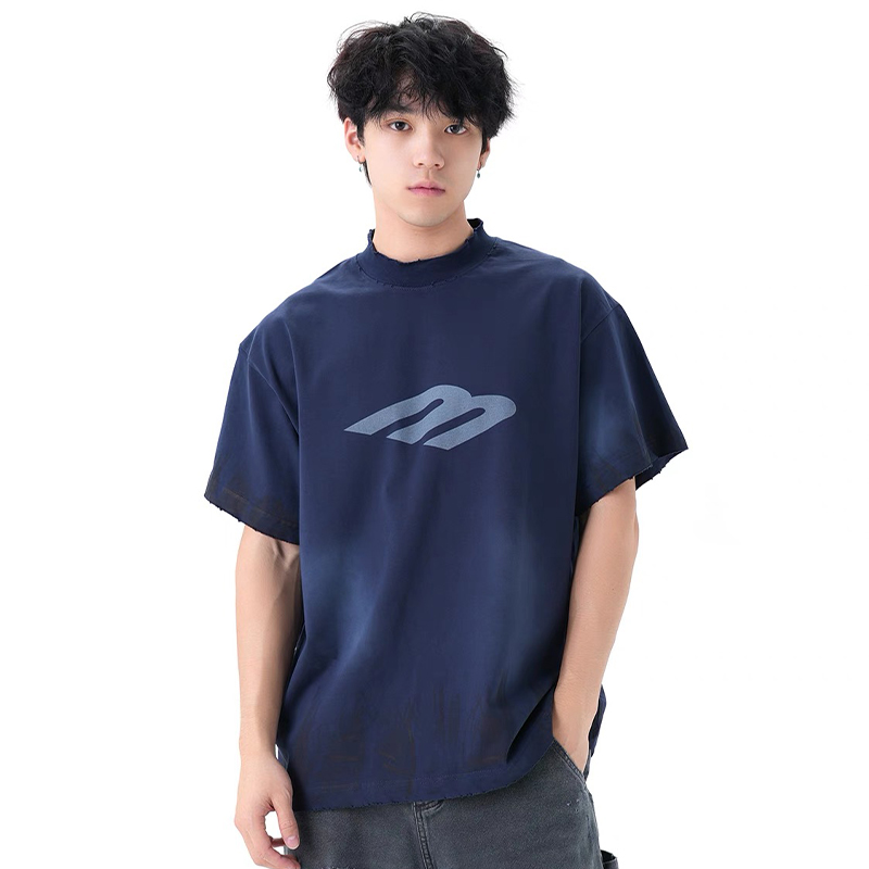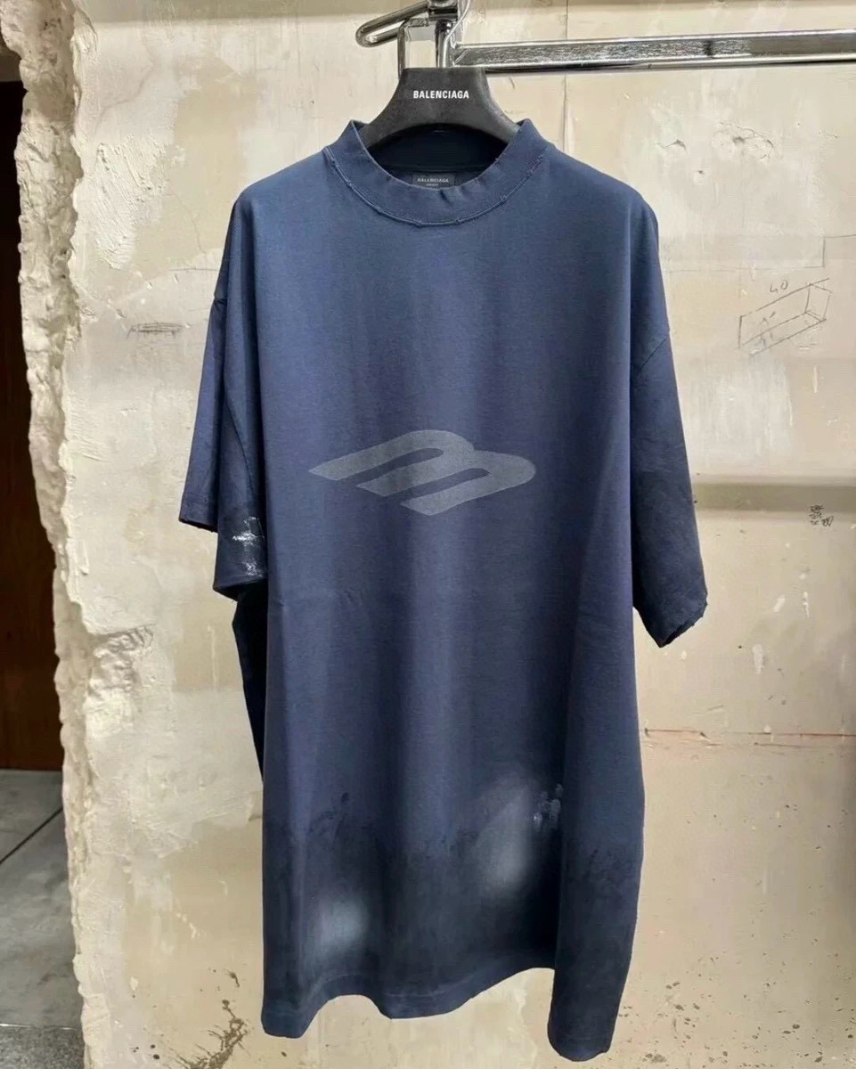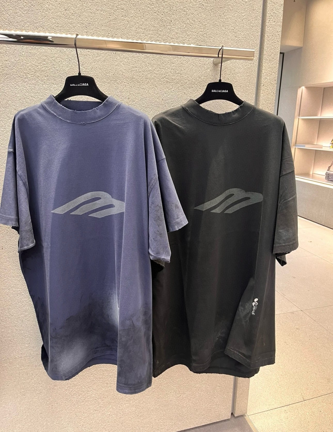 NIGO Balenciaga Men's Summer Cotton Faded Effect Logo Printed Round Neck Loose Short Sleeve T-Shirt Ngvp #nigo9212