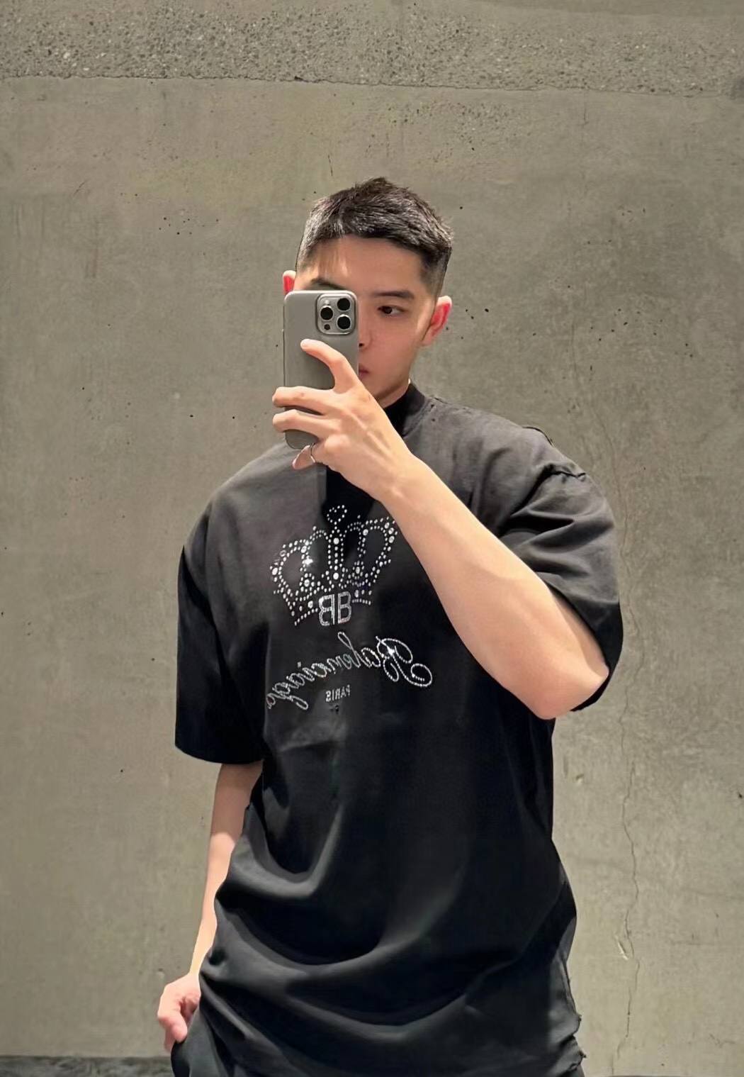 NIGO Balenciaga Men's Summer Monogrammed Logo Black Crew Neck Cotton T-Shirt #nigo99748