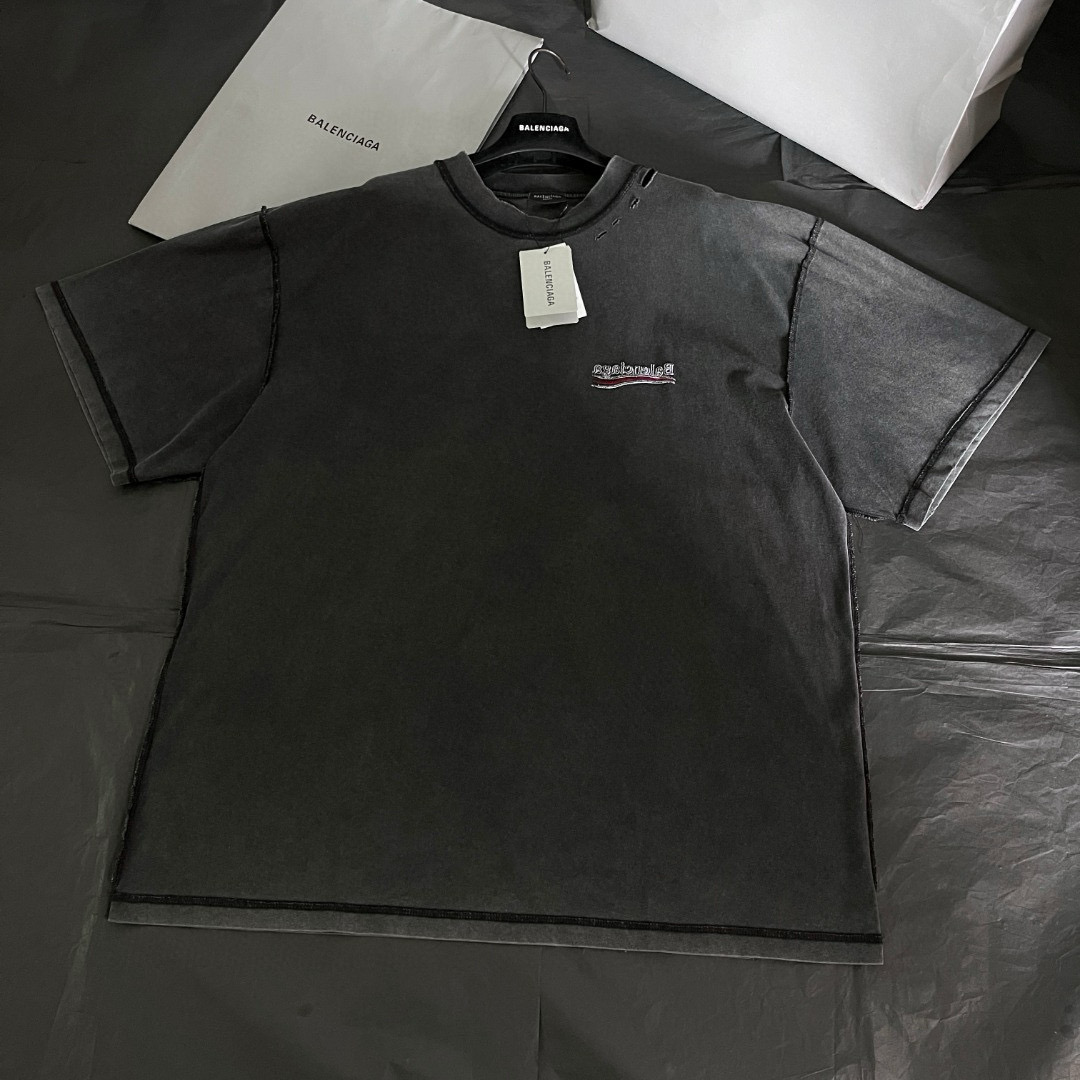 NIGO Balenciaga POLITICAL CAMPAIGN INSIDE-OUT Men's Summer Washed Colour Embroidered Letter Short Sleeve Fashionable Short Sleeve T-shirt #nigo78142