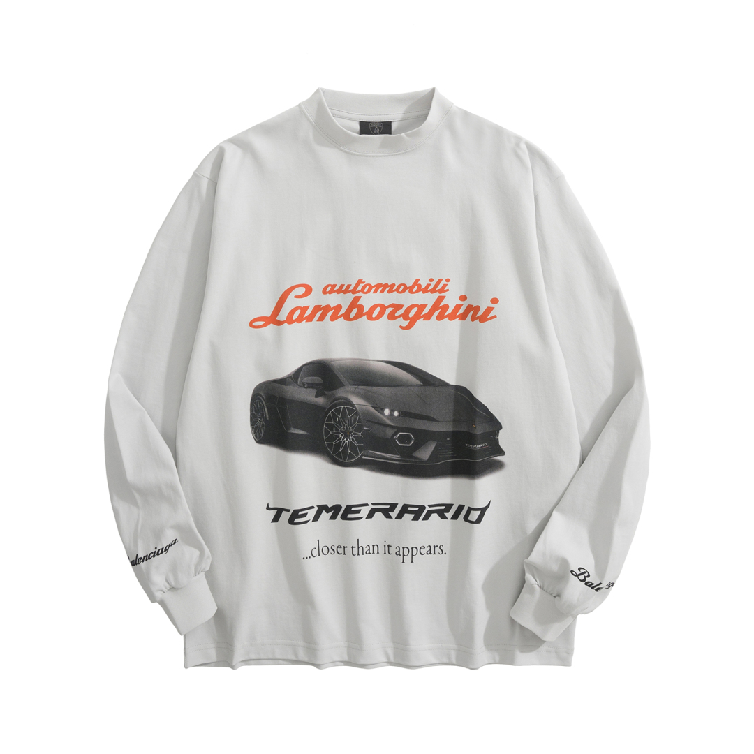 NIGO Balenciaga x Lamborghini Men's and Women's Summer Car Print Round Neck Pullover Drop Shoulder Regular Fit Cotton Long Sleeve T-Shirt #nigo74771