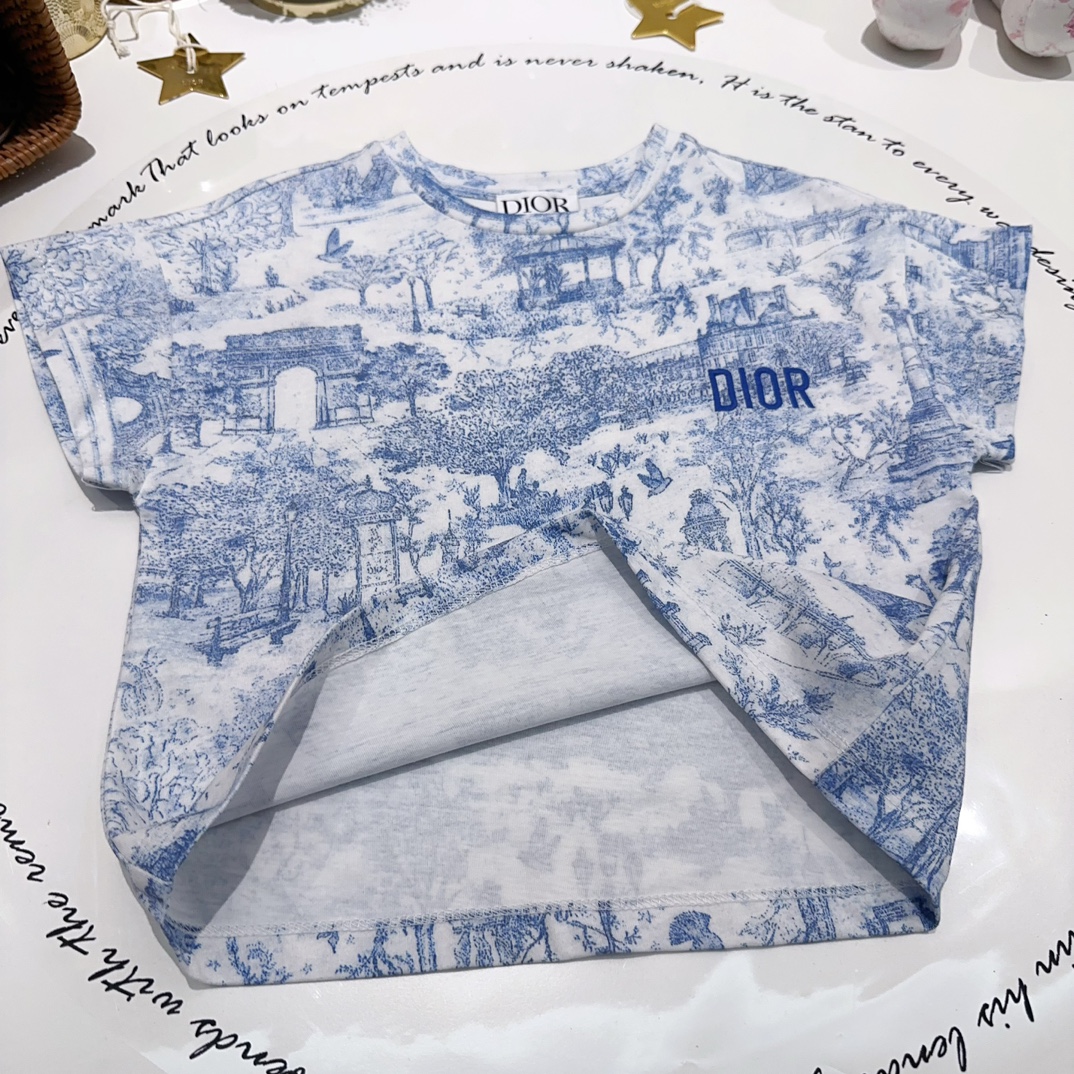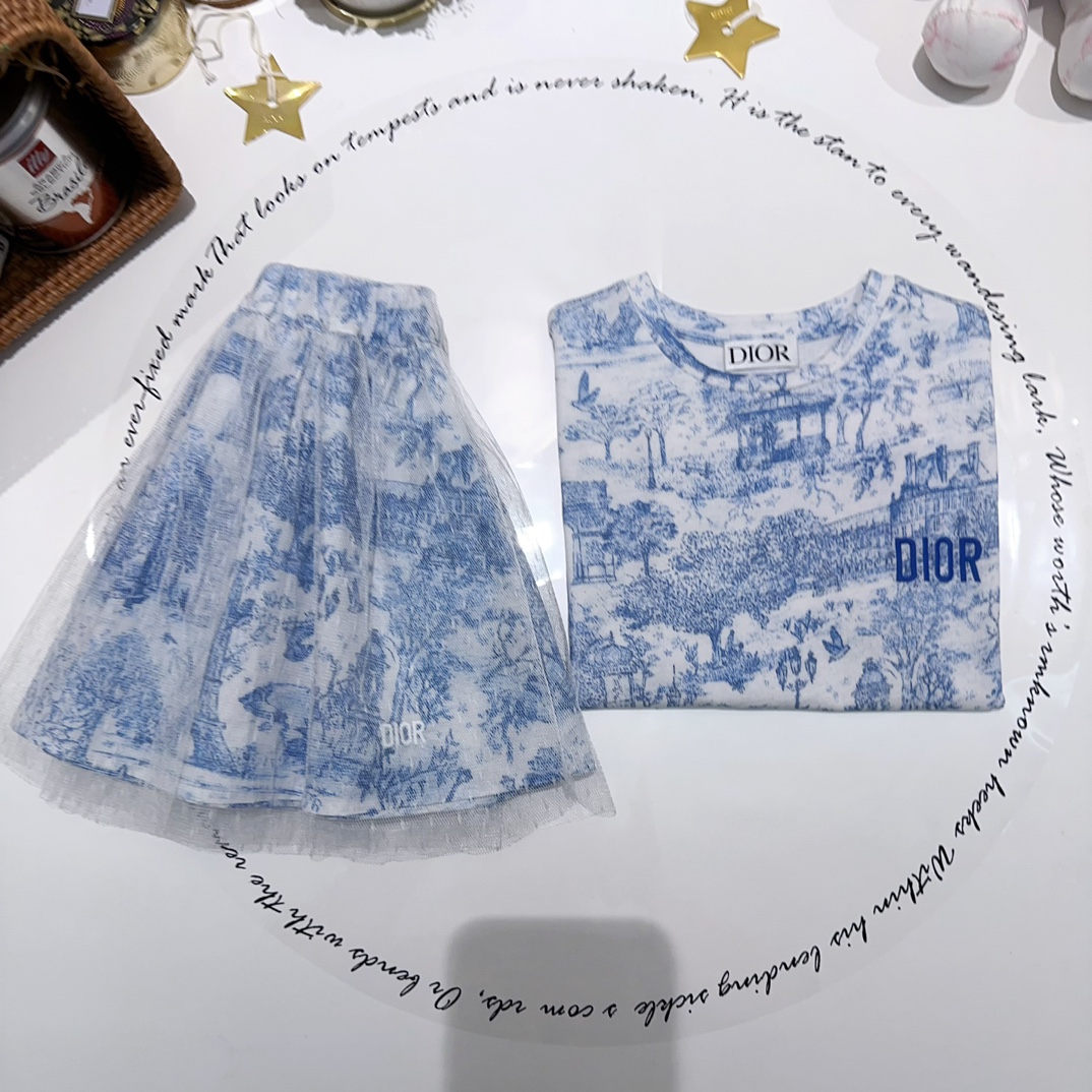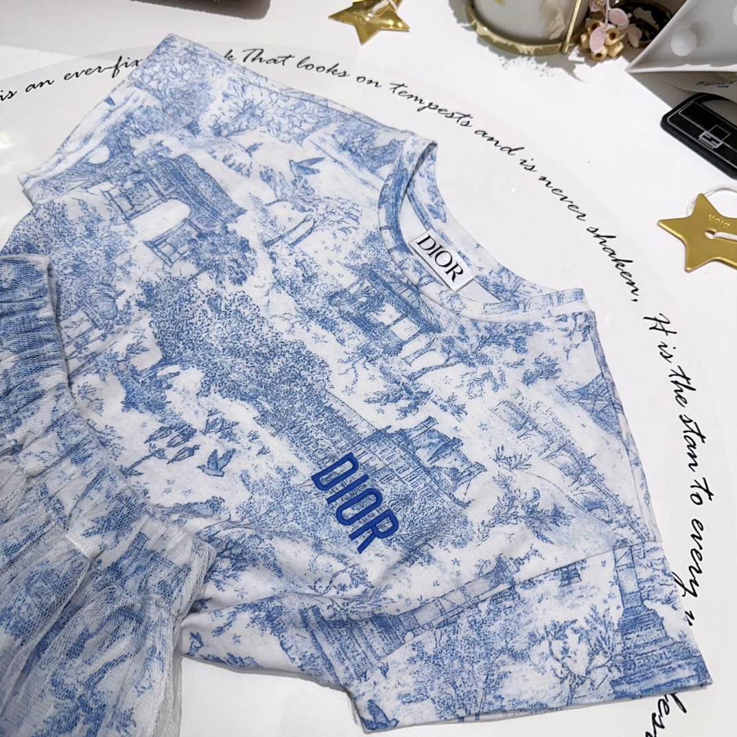 NIGO Dior Kid's Summer Logo Letter Embroidery Round Neck T-shirt Floral Printed Elastic Flared Short Half Skirt #nigo31268