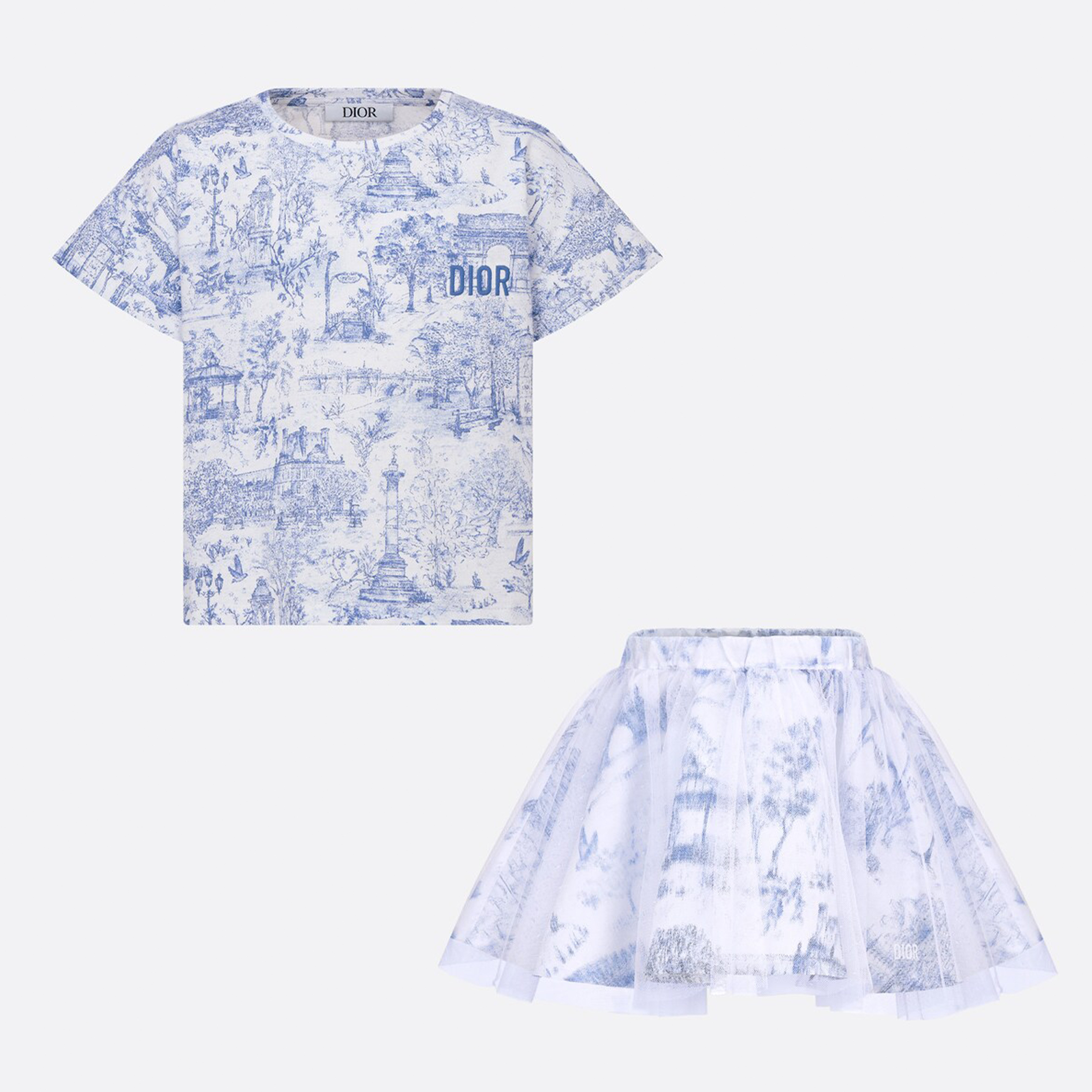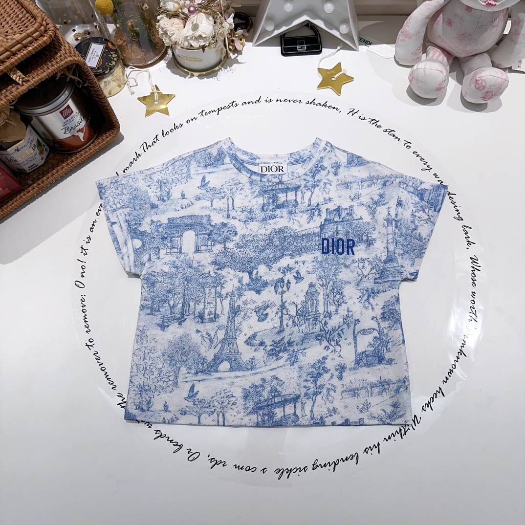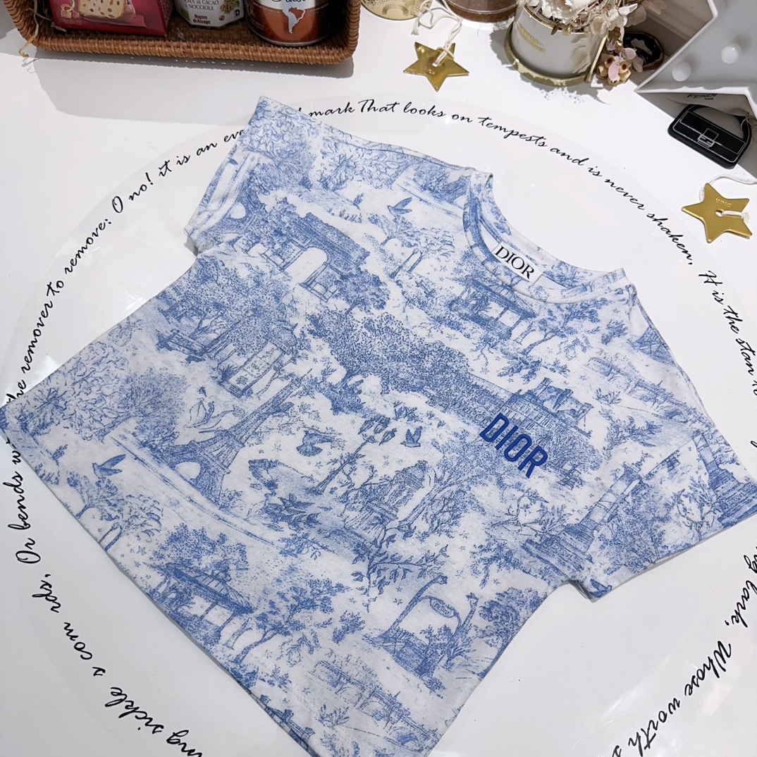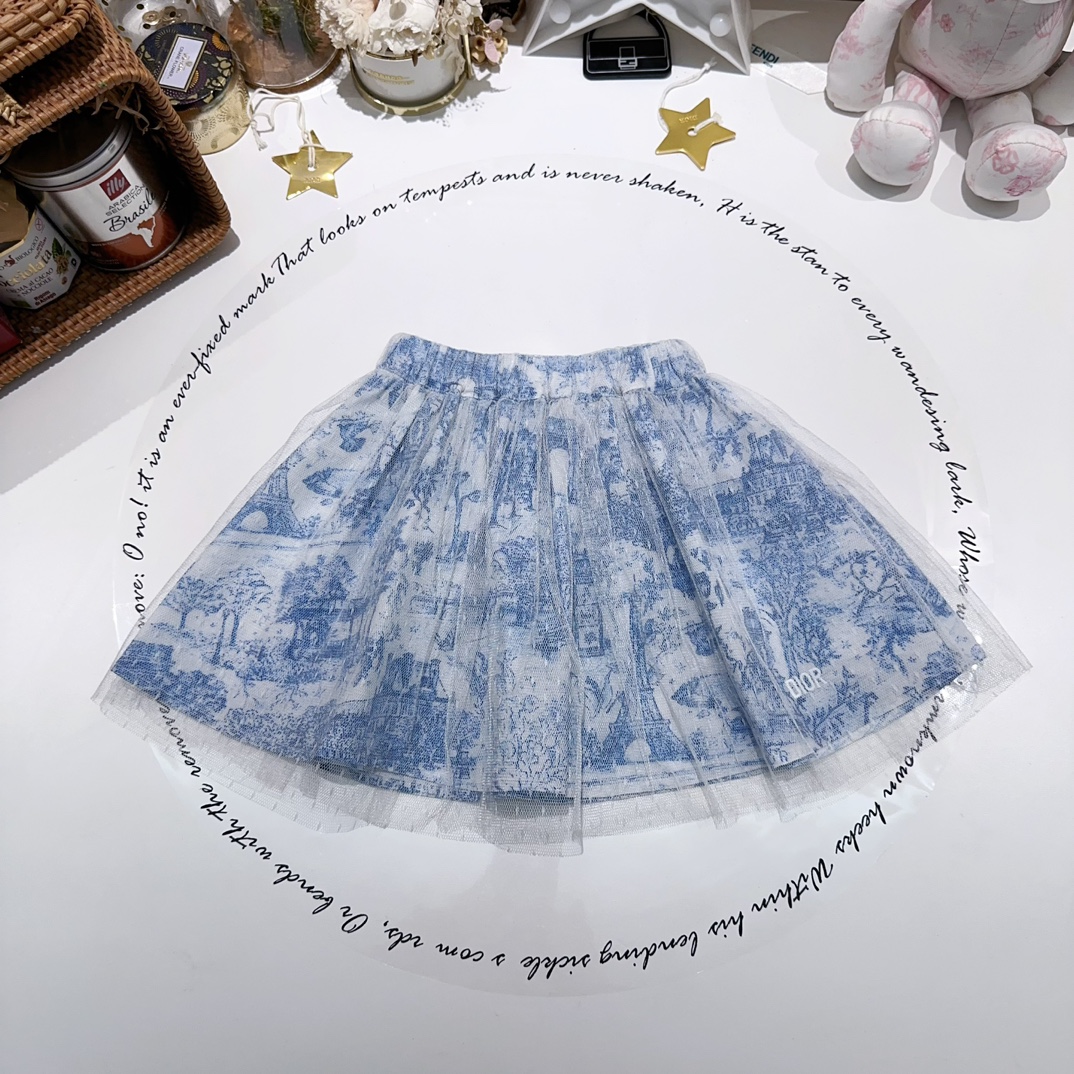 NIGO Dior Kid's Summer Logo Letter Embroidery Round Neck T-shirt Floral Printed Elastic Flared Short Half Skirt #nigo31268