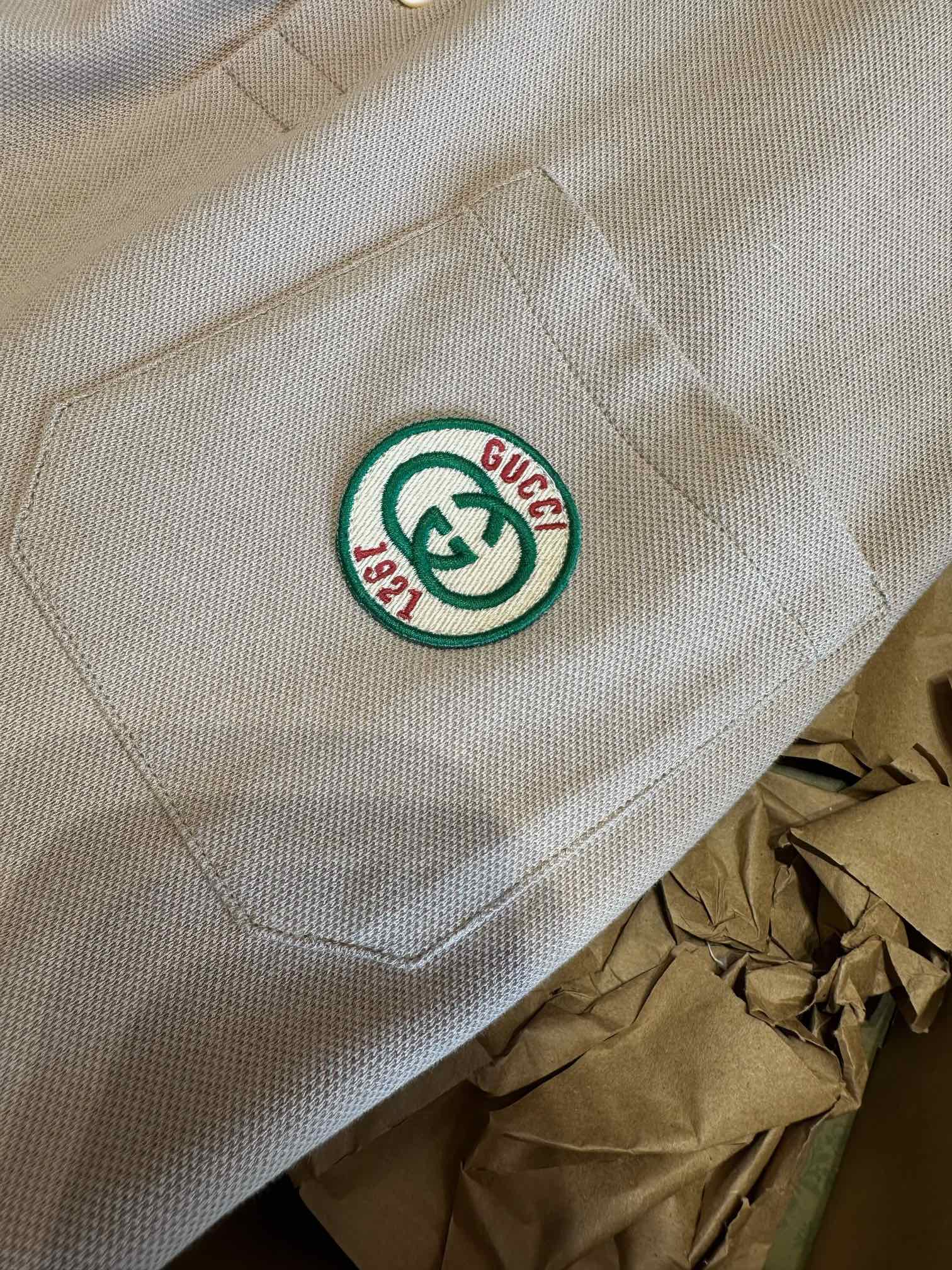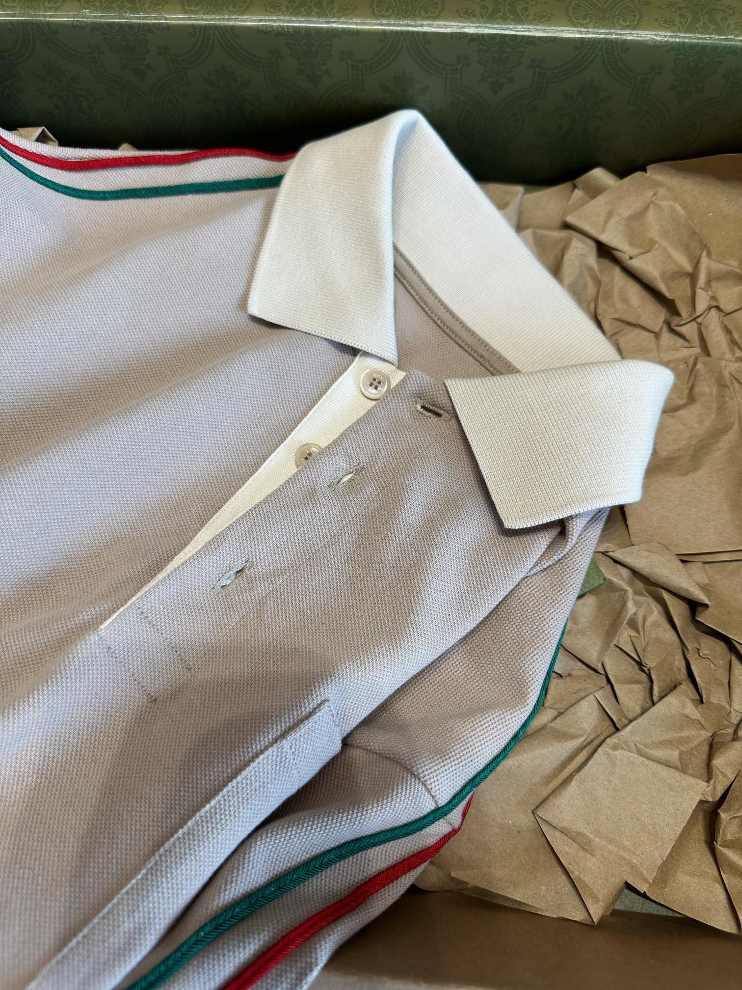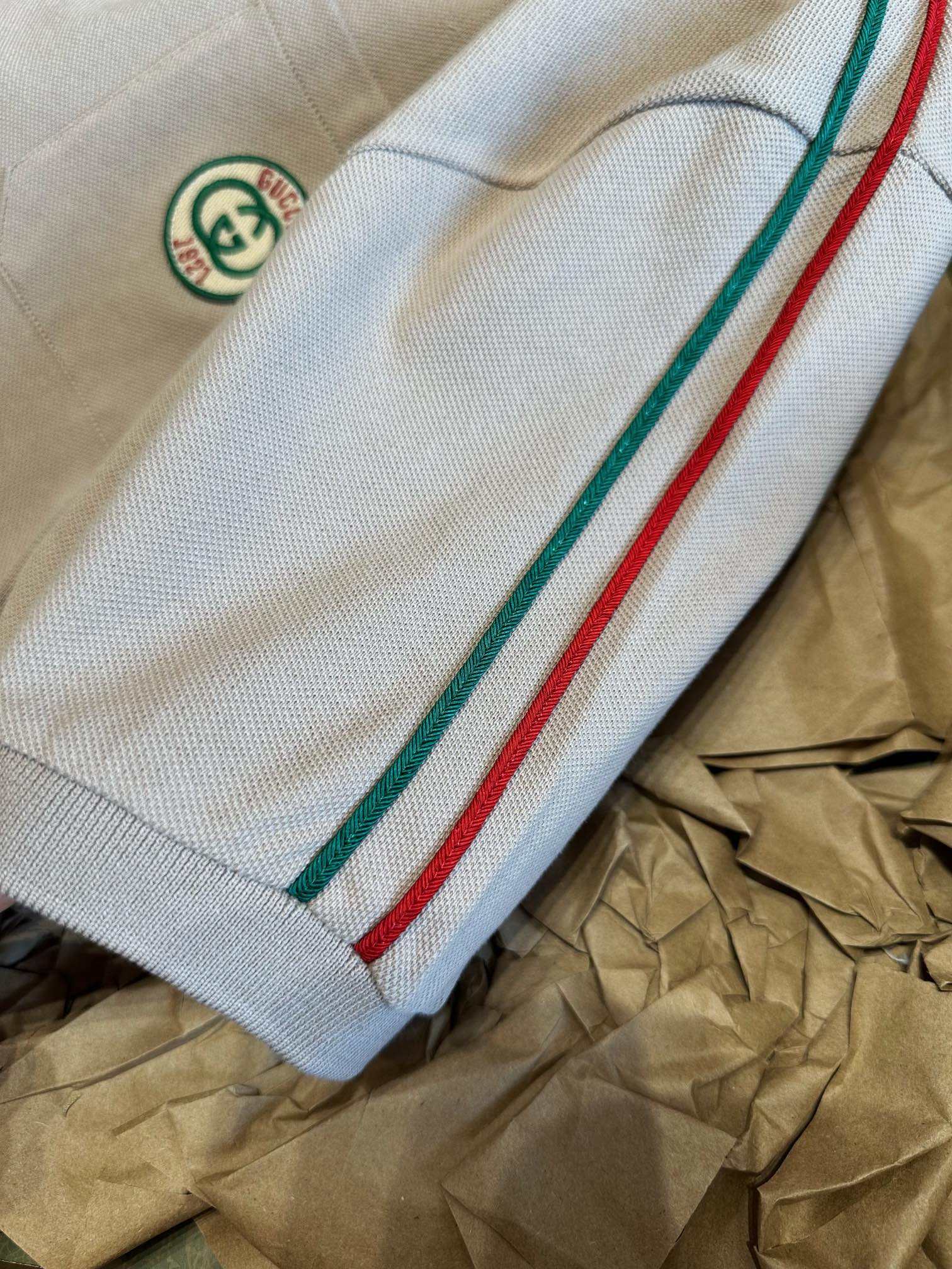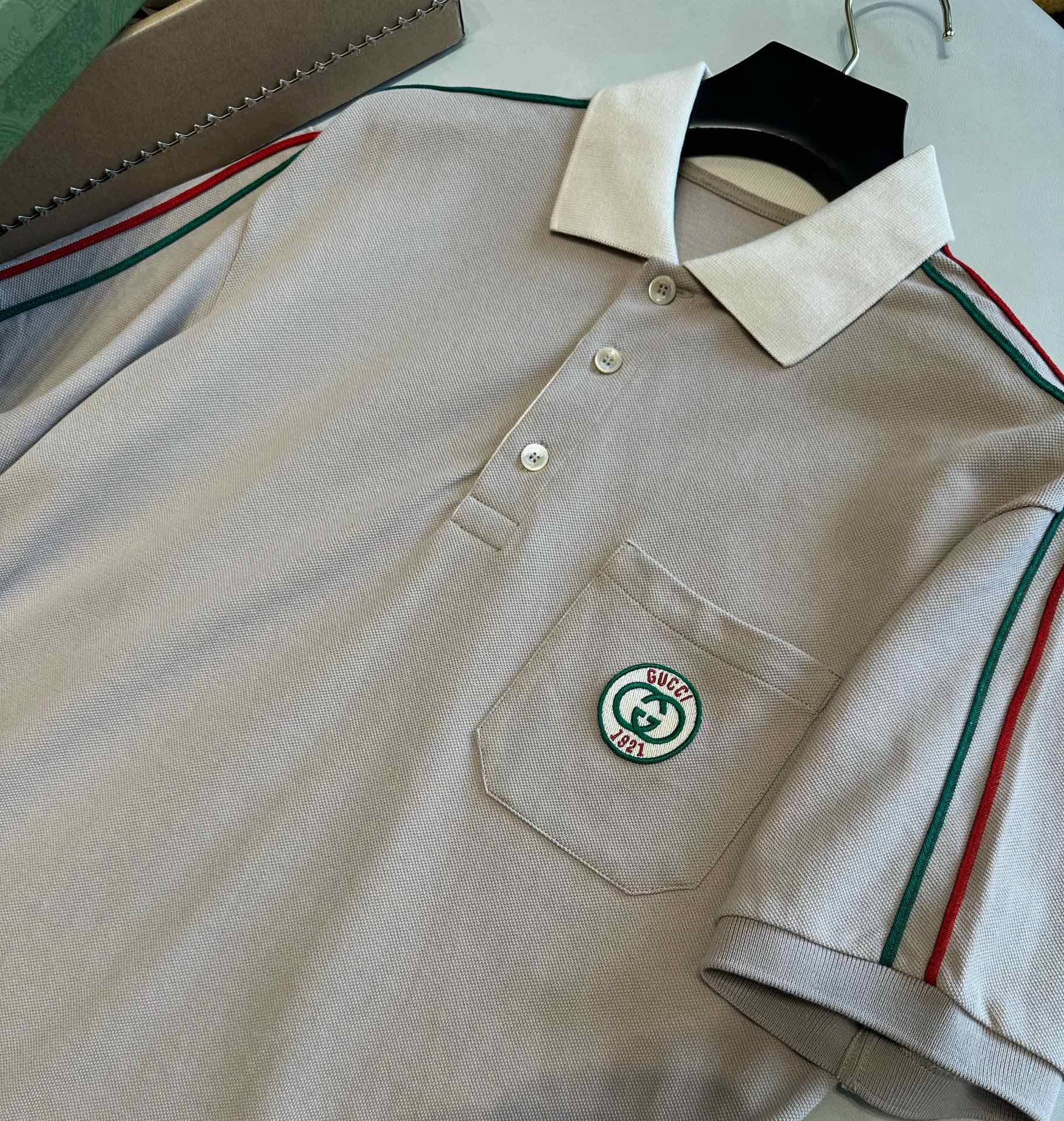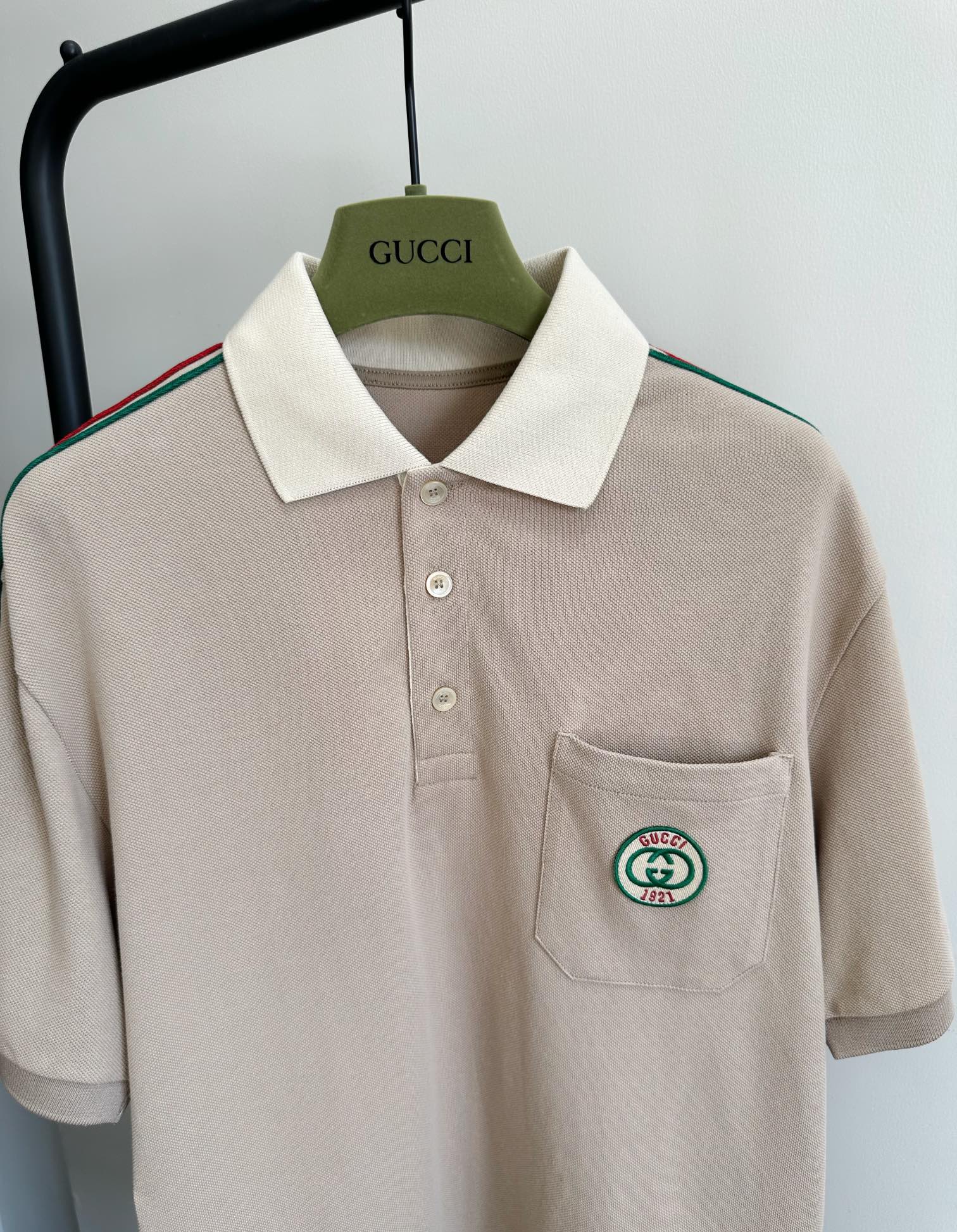 NIGO Gucci Men's Summer Khaki Striped Trim Cotton Polo Neck Short Sleeve T-Shirt #nigo98683