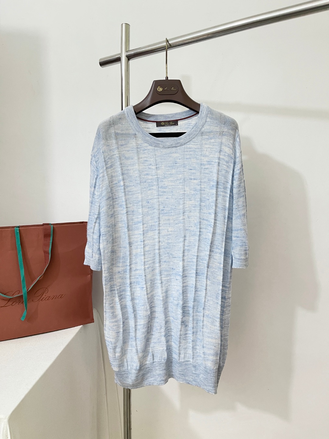 NIGO Loro Piana Men's Spring And Autumn Tori Round Neck Casual Linen Silk Knit Short Sleeve Top T-Shirt Ngvp #nigo1774
